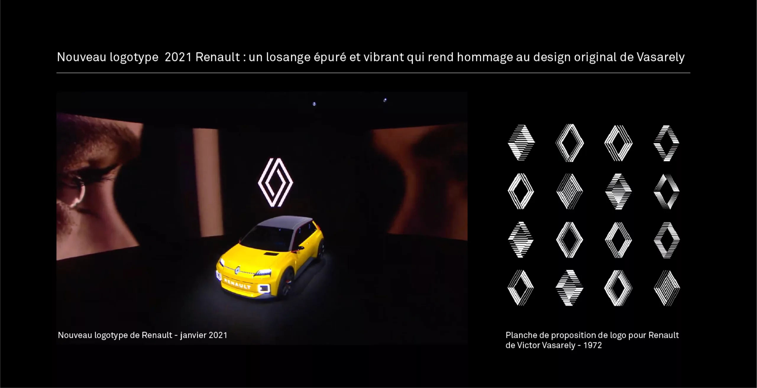 Note that in the new car logo topic, Renault has recently distinguished itself brilliantly by paying tribute to its graphic heritage with a vibrant emblem that revives the stripes of Vasarelian optical art, for a resolutely modern, simple and iconic result.