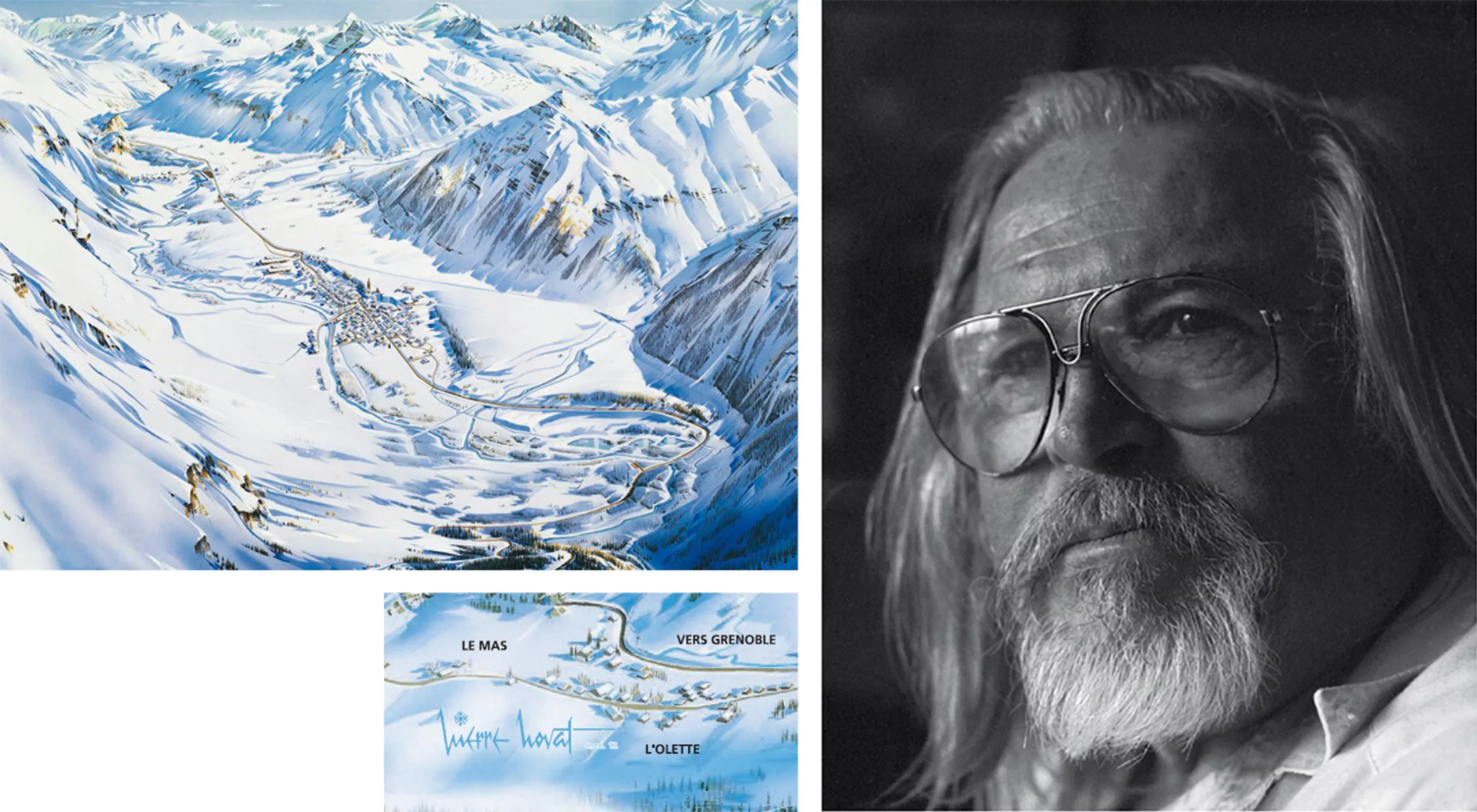 For years and without noticing it -if you practice winter sports- you’ve had Pierre Novat’s artworks under your eyes. More than 35 years of career, a peaky signature with a flake by way of dot on the i and thousands of fir trees to his name: Pierre Novat is the designer of French ski trail maps. I say “the” because he is the only one. A high altitude job!