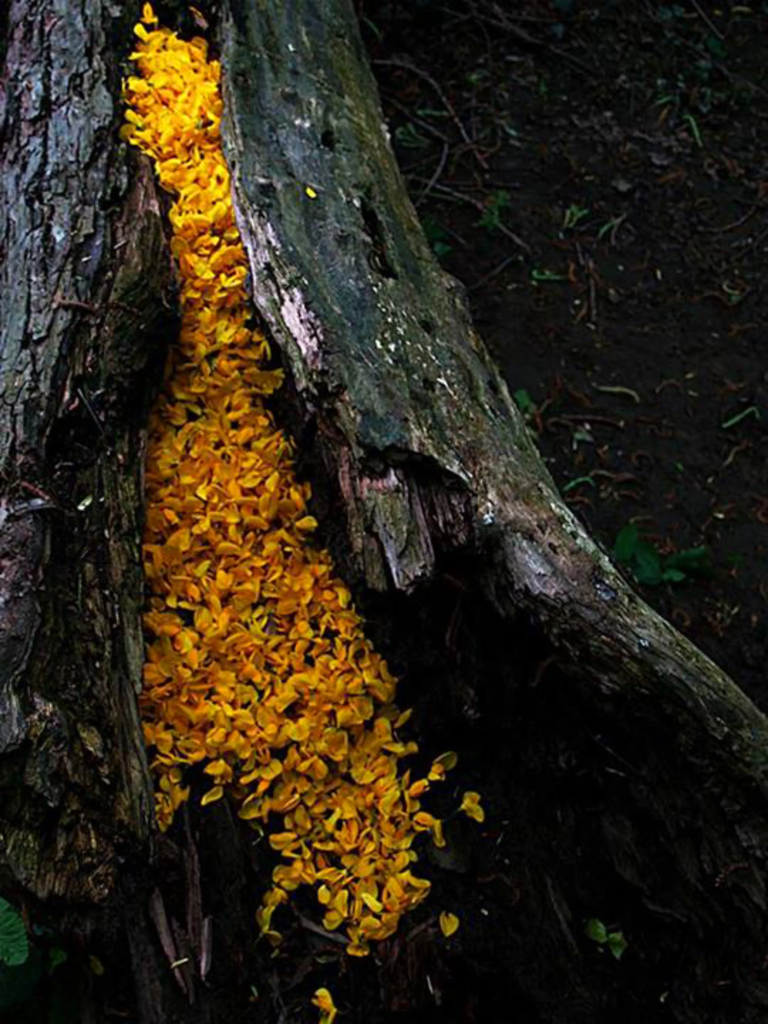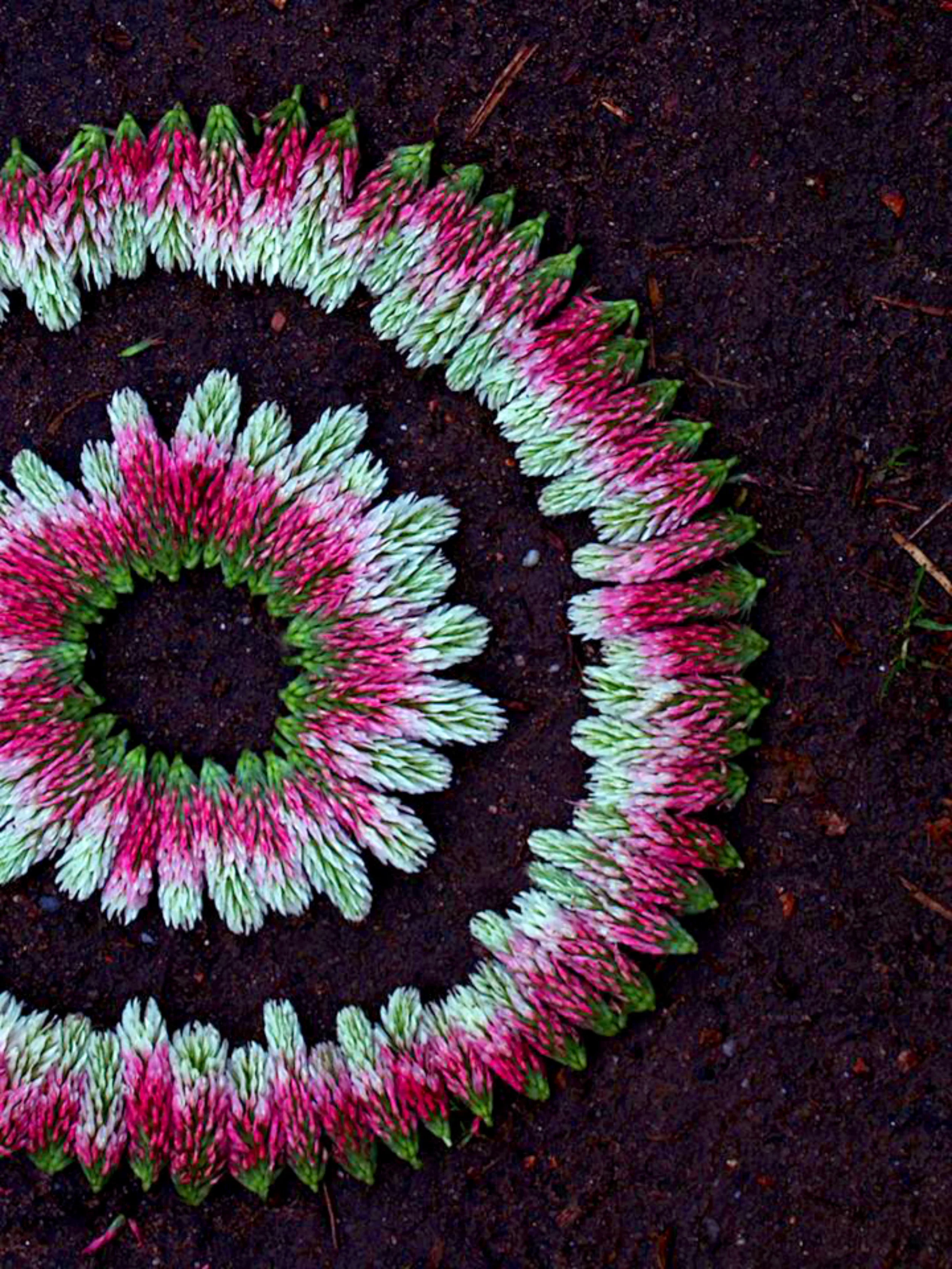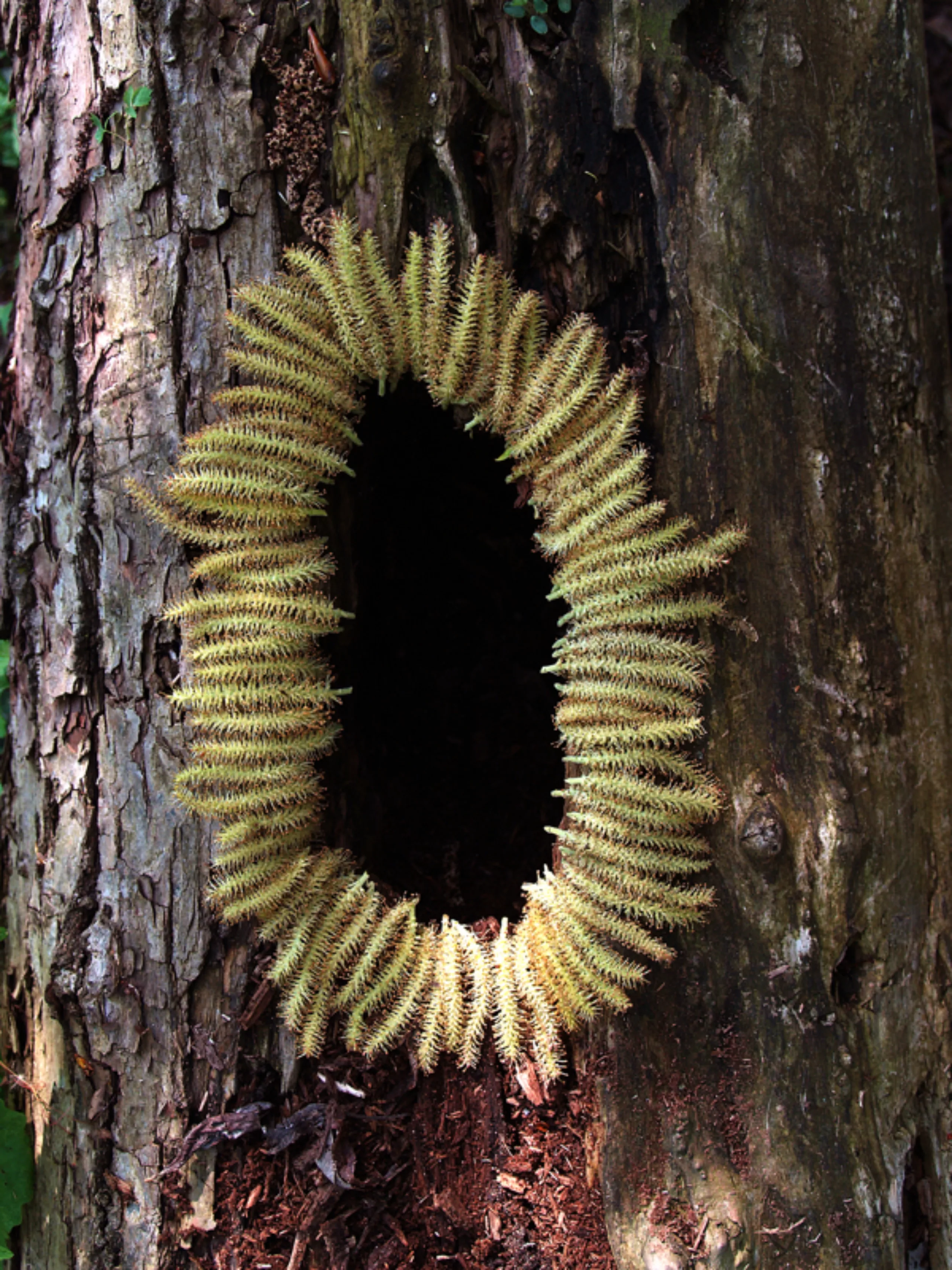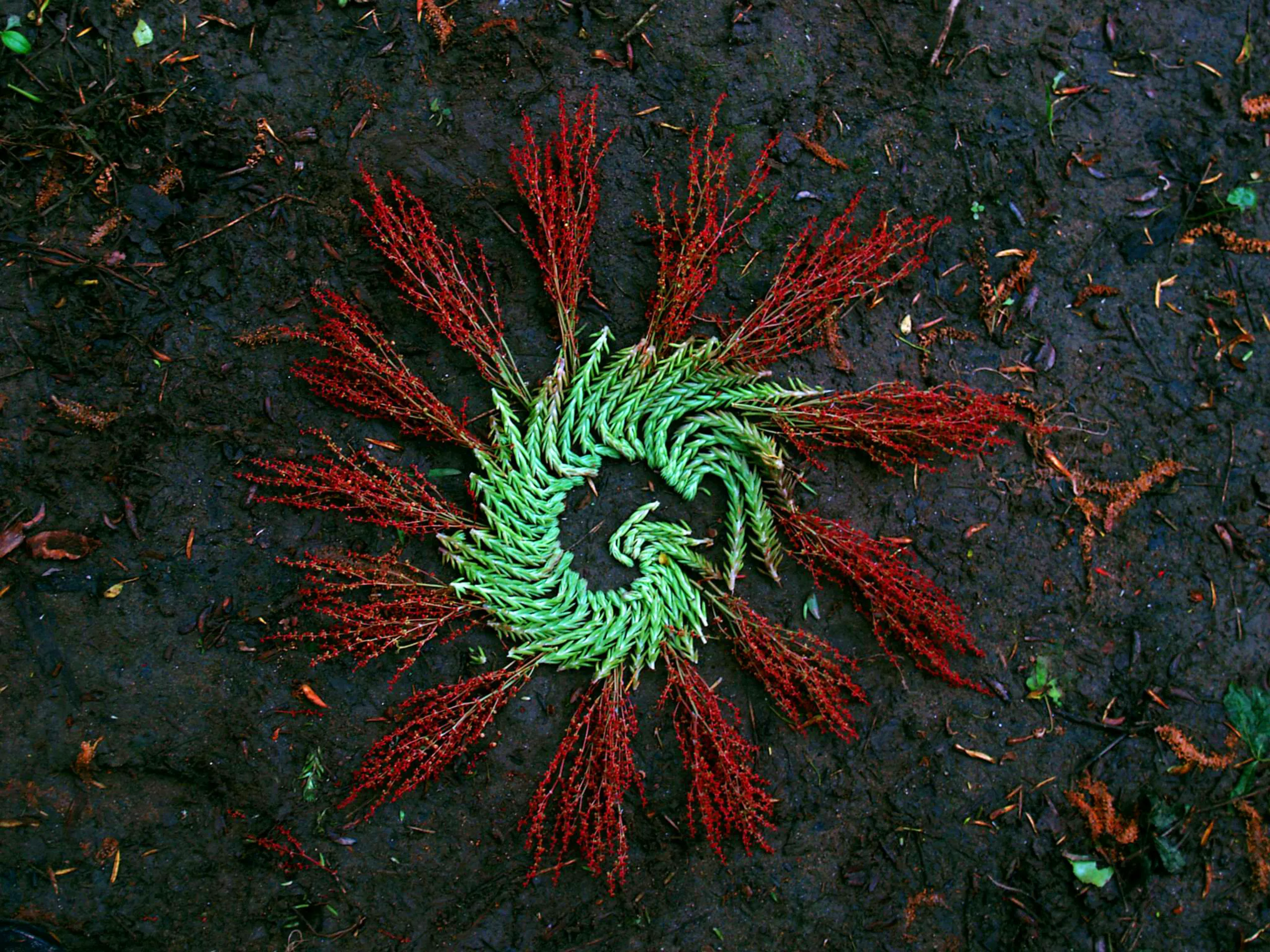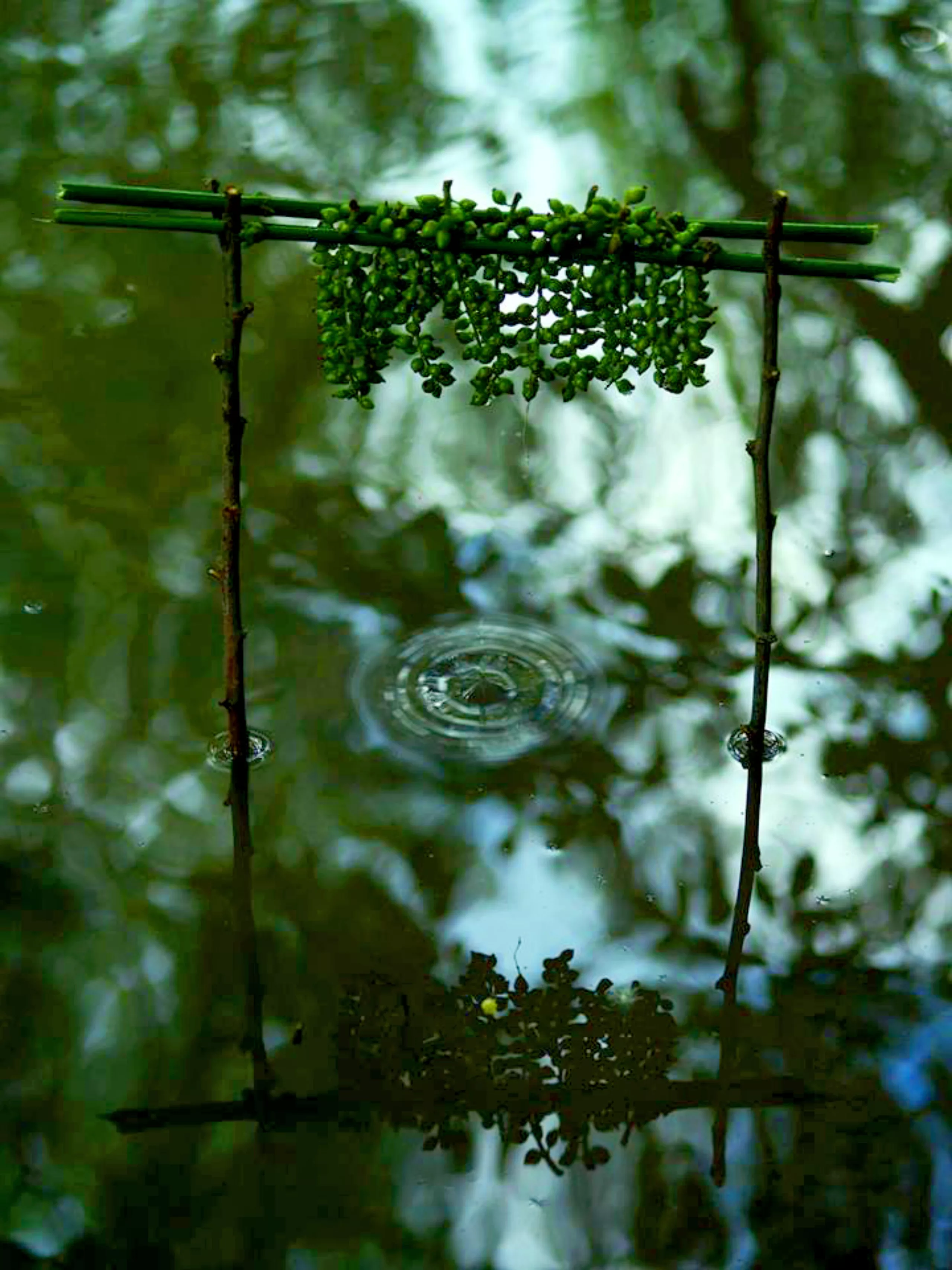 Bewitching sculptures and plant geometries created in the heart of nature. “Woodwork”, “Mirror of water” and “abyss/hell” are ephemeral goldsmithery immortalized in photographs.