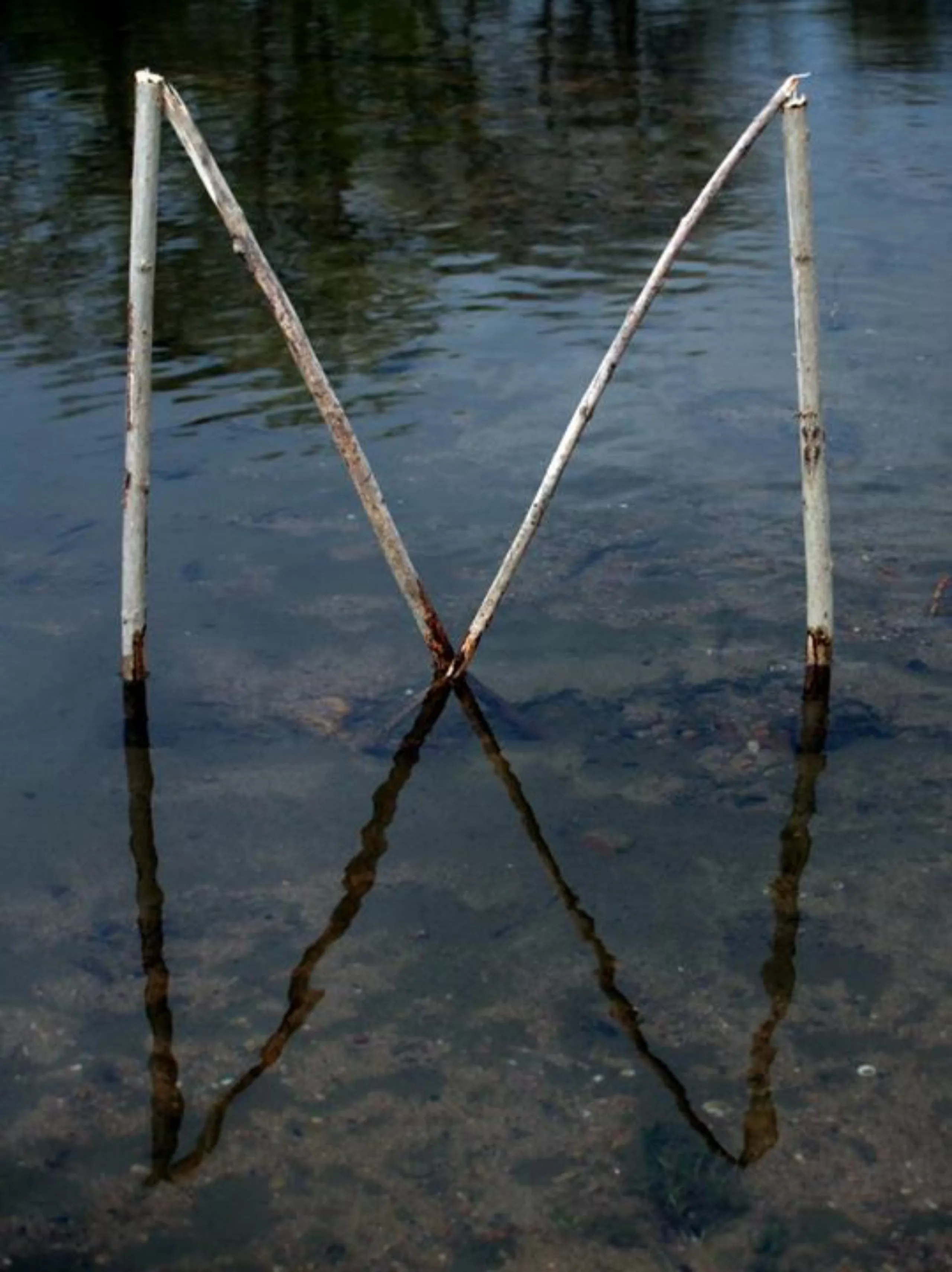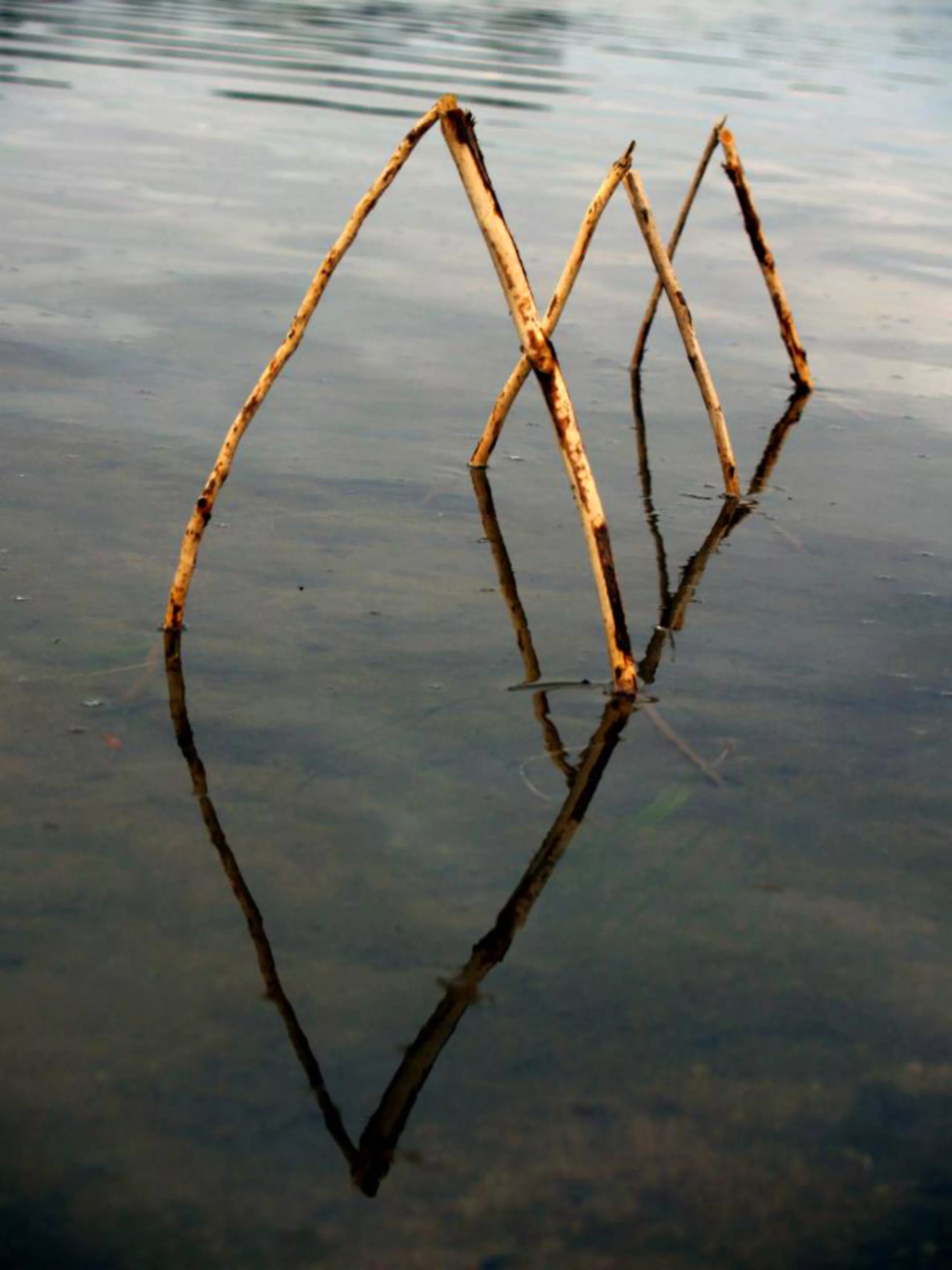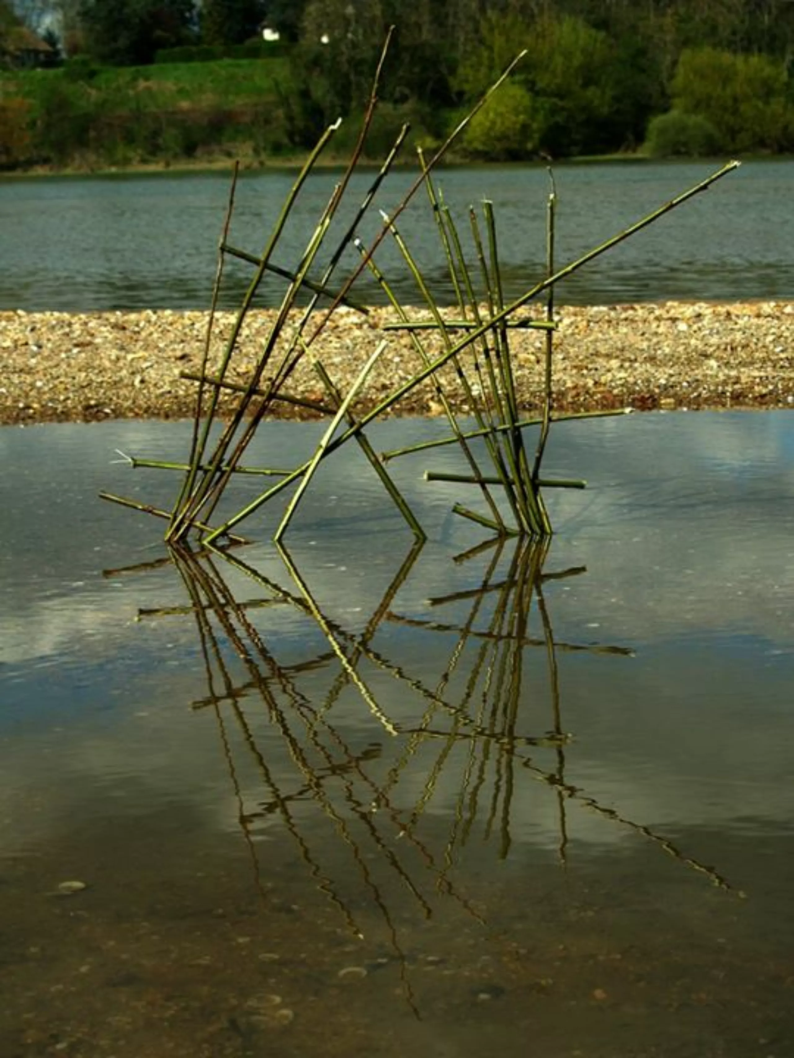 From the banks of the Loire, water becomes a mirror, transforming his ephemeral works into surreal compositions. His pencil is a penknife, a blade in place of graphite. Nature seems to come alive again. Dead branches take on new form. Rushes become coloring. Foliage becomes color. What poetry in these images