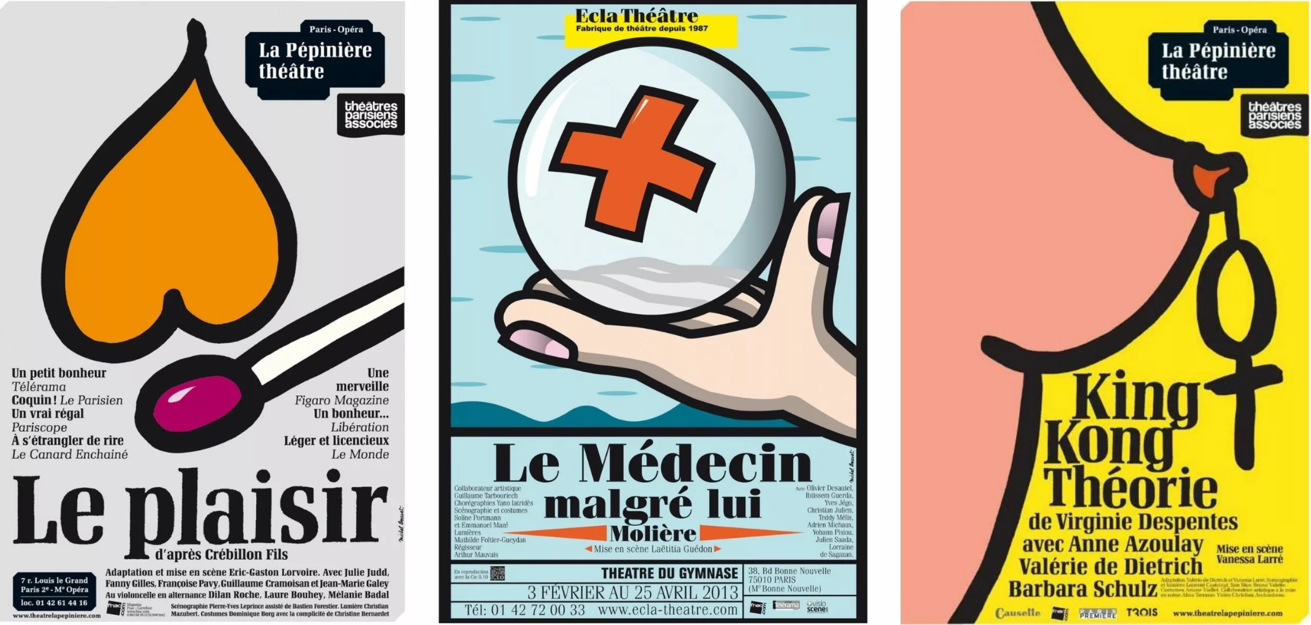 Avec l’Opéra de Massy, en collaboration depuis 1993, il imagine en 2006, un nouveau langage graphique s’appuyant sur une métaphore visuelle plus stylisée et plus accessible, pour un public qui ne fréquentent pas le théâtre. Avec la Pépinière théâtre, il réalise ses premières affiches en 2008.