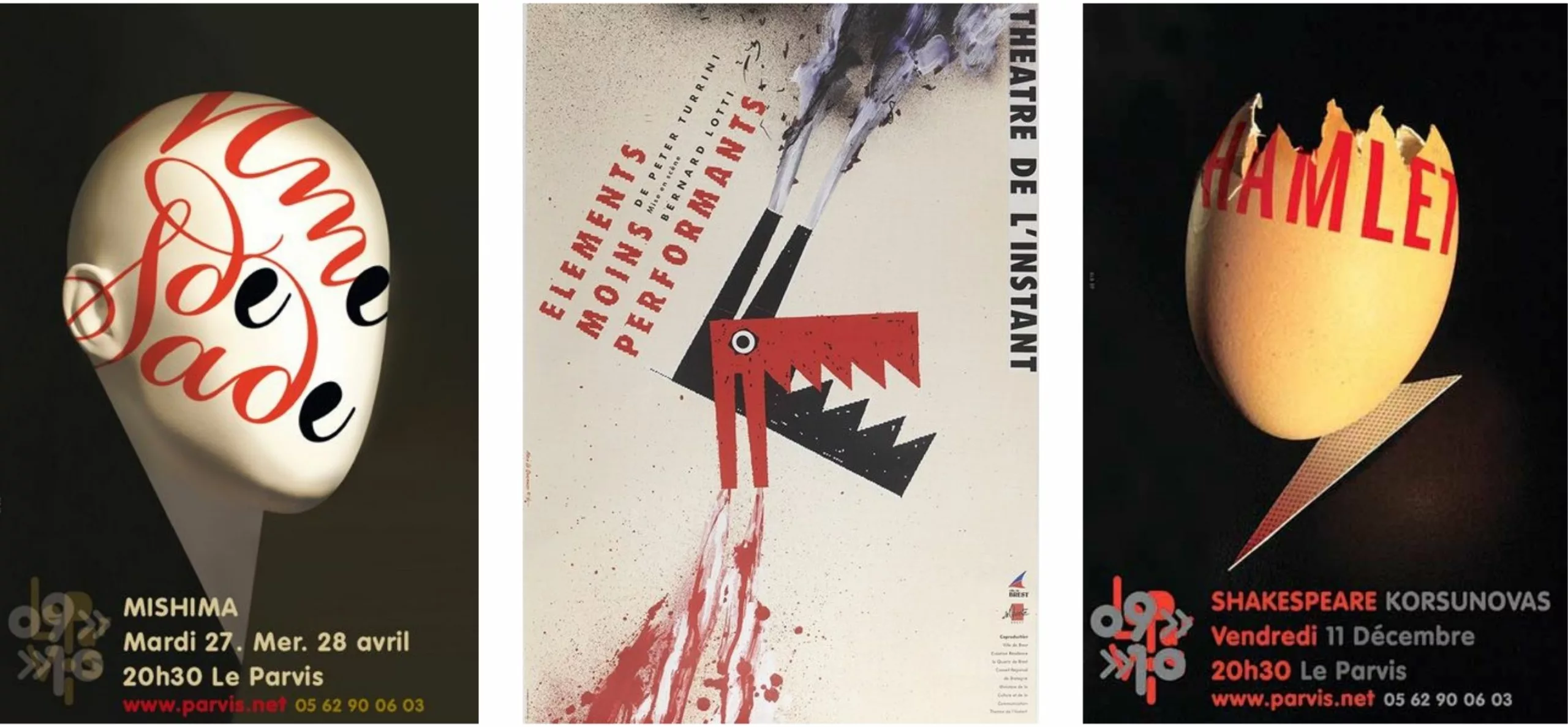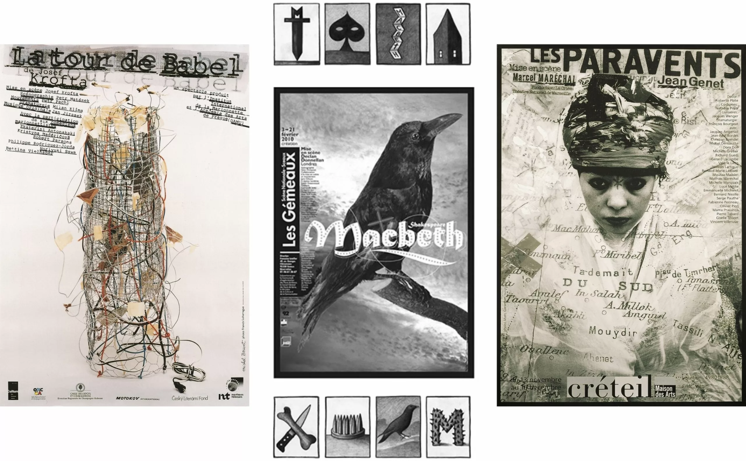 C’est Bernard Lotti, le directeur du Théâtre de l’Instant à Brest, qui lui offre l’opportunité de travailler l’affiche de théâtre en 1981. Une collaboration qui va durer plusieurs années. Puis ce sera le Théâtre du Parvis, scène nationale de Tarbes, l’Opéra de Rennes. Le Théâtre de Cornouaille à Quimper. Ou le Théâtre de Morlaix, plus typographique.