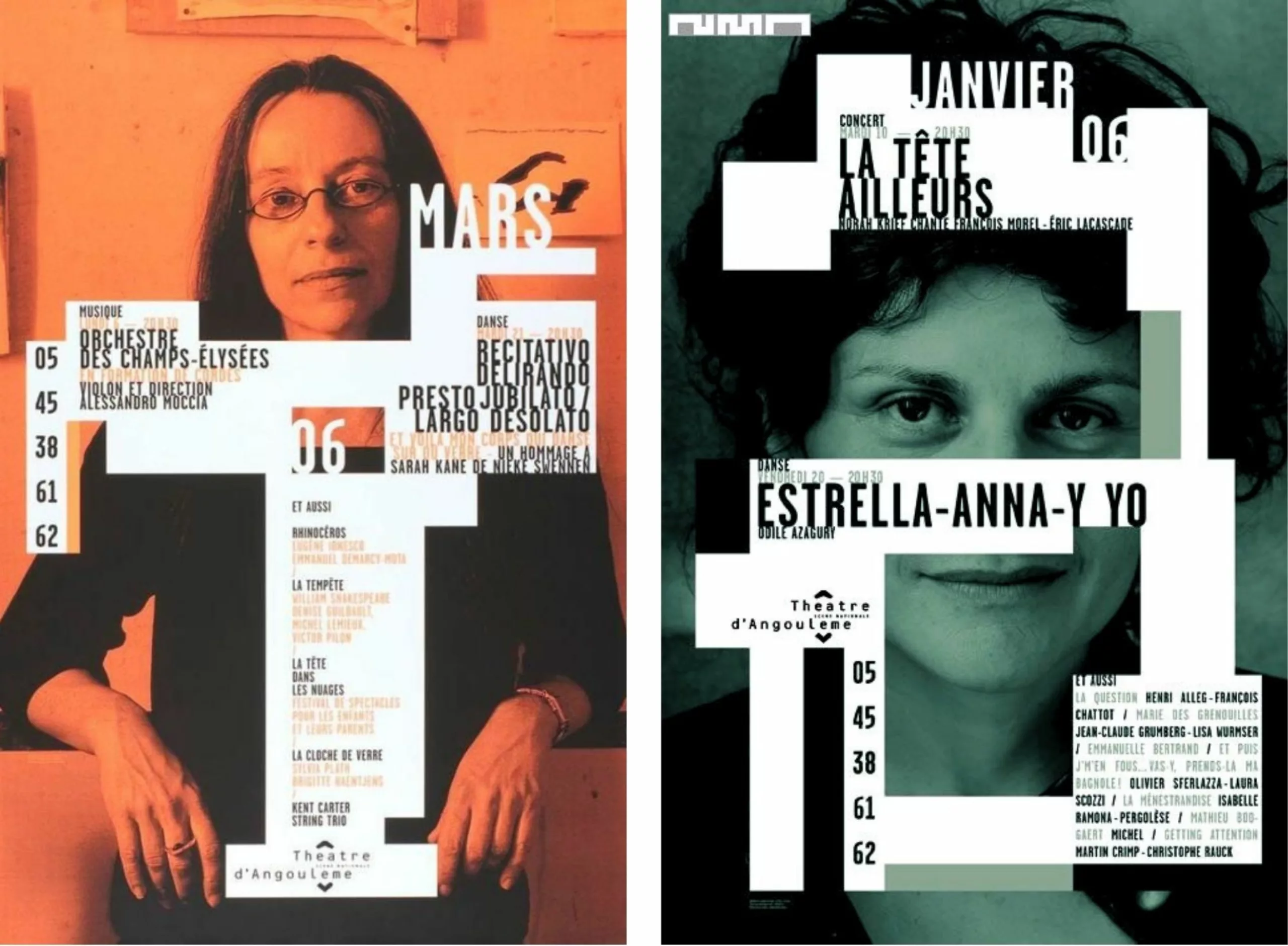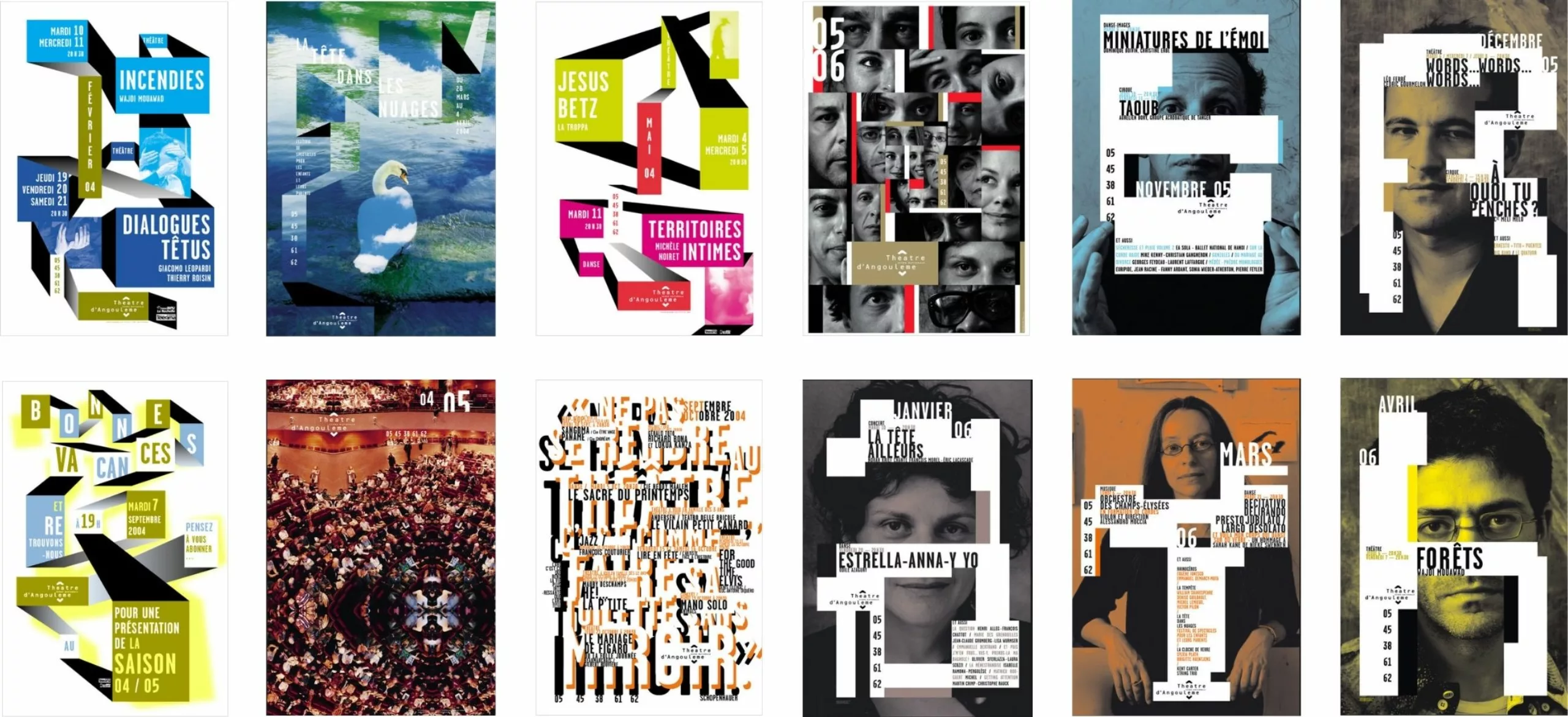 Autre approche singulière qui, elle aussi pose la question des missions du théâtre public au début du XXIe siècle, celle d’Anette Lenz et de Vincent Perrottet. Leur collaboration étroite avec Joël Gunzburger, l’ancien directeur du théâtre d’Angoulême, de la Filature de Mulhouse et de L’Onde aujourd’hui, est un exemple de la richesse et de la diversité que le monde du théâtre peut entretenir avec le design graphique et son environnement.