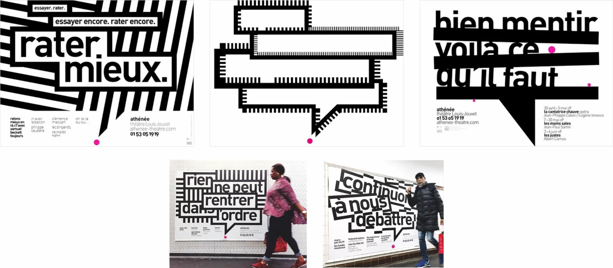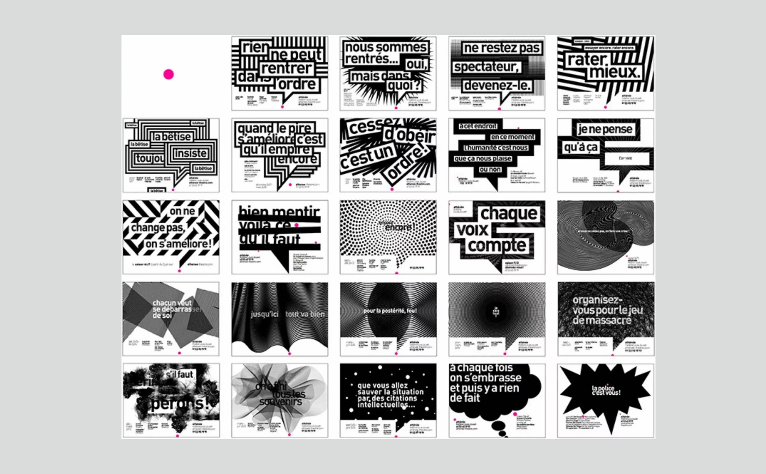 Au-delà d’un public traditionnel de connaisseurs et d’abonnés du théâtre, le pari qui a été fait à l’Athénée et qui le distinguait des autres, était de dire “On veut indiquer par nos affiches que le théâtre n’est pas ce lieu qui parle d’une matière scolaire pour les BAC+5 ou qui raconte des histoires d’anciens rois et d’allégories grecs pour un public savant. Mais que le théâtre a un point de vue sur le monde d’aujourd’hui !” L’idée des citations littéraires et des slogans utilisés permettra de rebondir sur le débat public et ce, dans un couloir de métro.