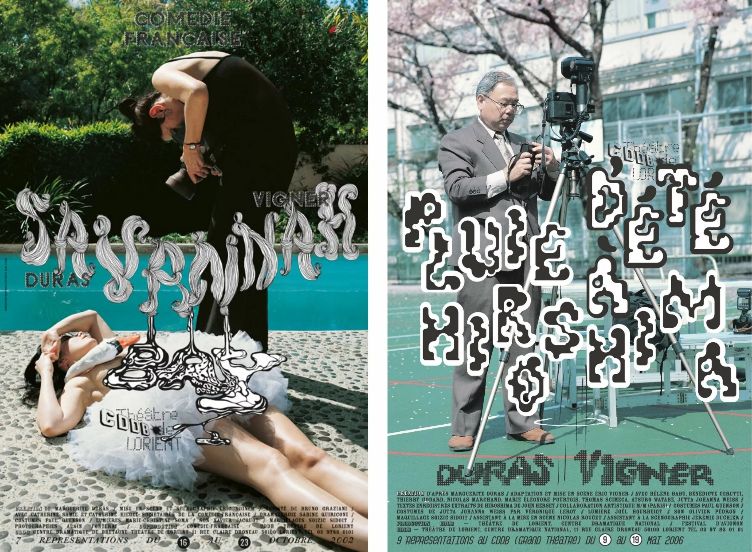 Au départ, les affiches pour le théâtre de Lorient vont largement déconcerter le public, car elles brisent les repères habituels. « Les affiches ont été violemment critiquées, car peu lisibles, peu compréhensibles », explique Éric Vigner. « Aujourd’hui, les spectateurs savent comment déchiffrer l’information… Au-delà de parler de la pièce, des images ou du texte, c’est une œuvre en soi qui porte une idée. »