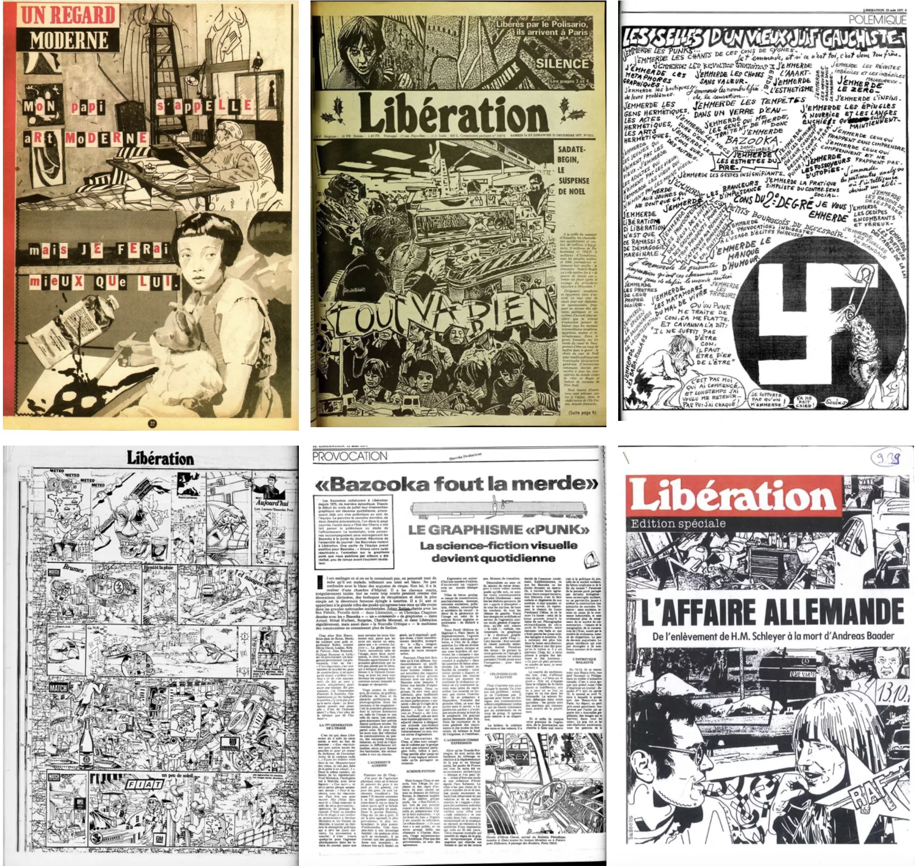 En pleine naissance de la contre-culture, dans la veine des mouvements punks, subversifs, ils intègrent pourtant la rédaction de Libération en 1977. «On est restés six mois. On voulait remplacer toutes les photos par du graphisme, revisiter les maquettes. On revisitait les images, qu’on photocopiait, on cherchait des astuces de dessin. C’était de la peinture d’actualité. Au bout de six mois, Serge July nous a proposé un supplément mensuel, “Un regard moderne”. On en a vendu 8.000, il en aurait fallu 12.000. On a arrêté au bout de six numéros…».