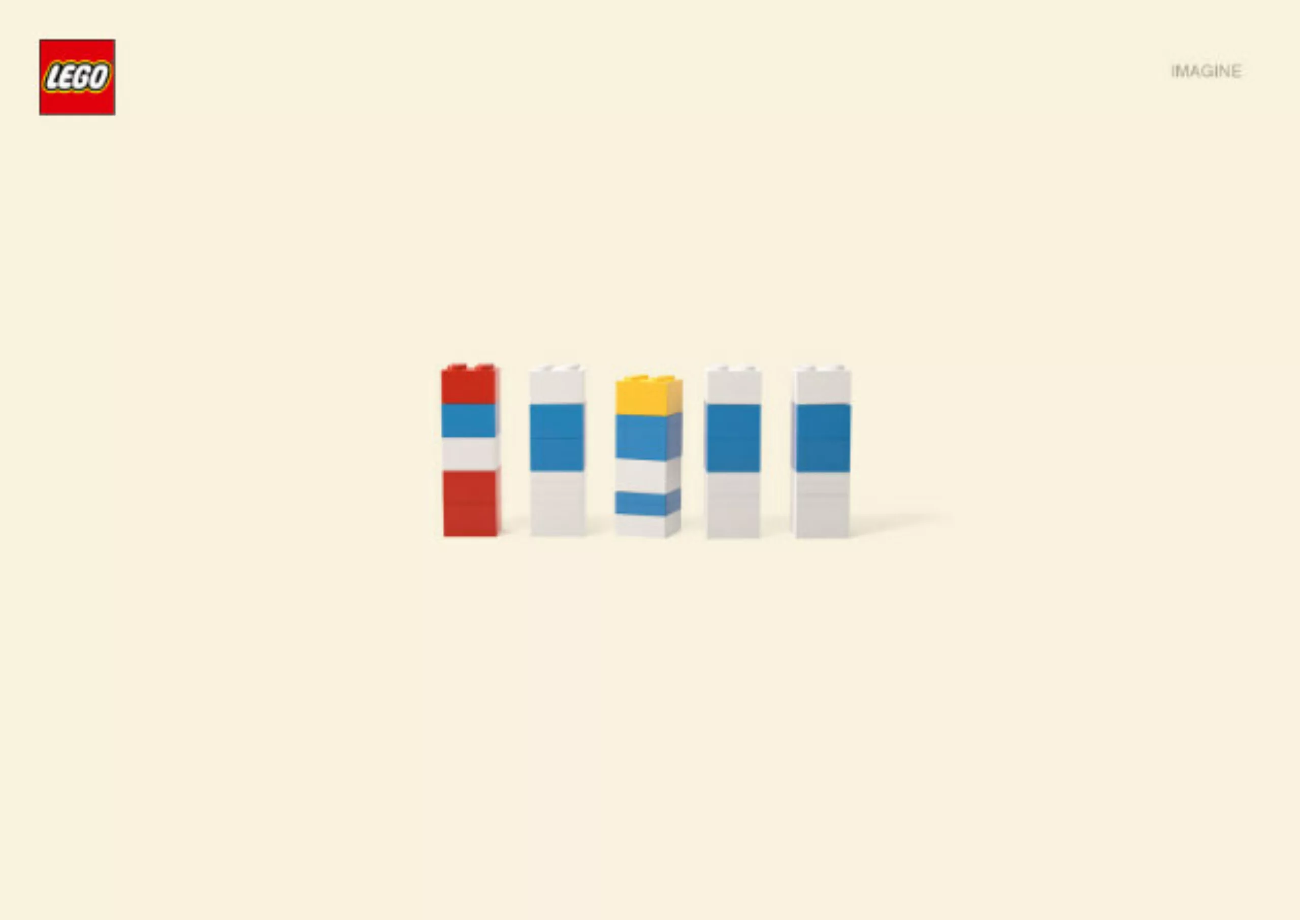 Lego lui-même a surfé intelligemment sur ce phénomène pour produire une série d’affiches vraiment efficaces et très originales. (campagne géniale créée par l’agence de publicité allemande Jung Von Matt) Je vous laisse deviner les personnages cachés derrière ces gammes chromatiques :
