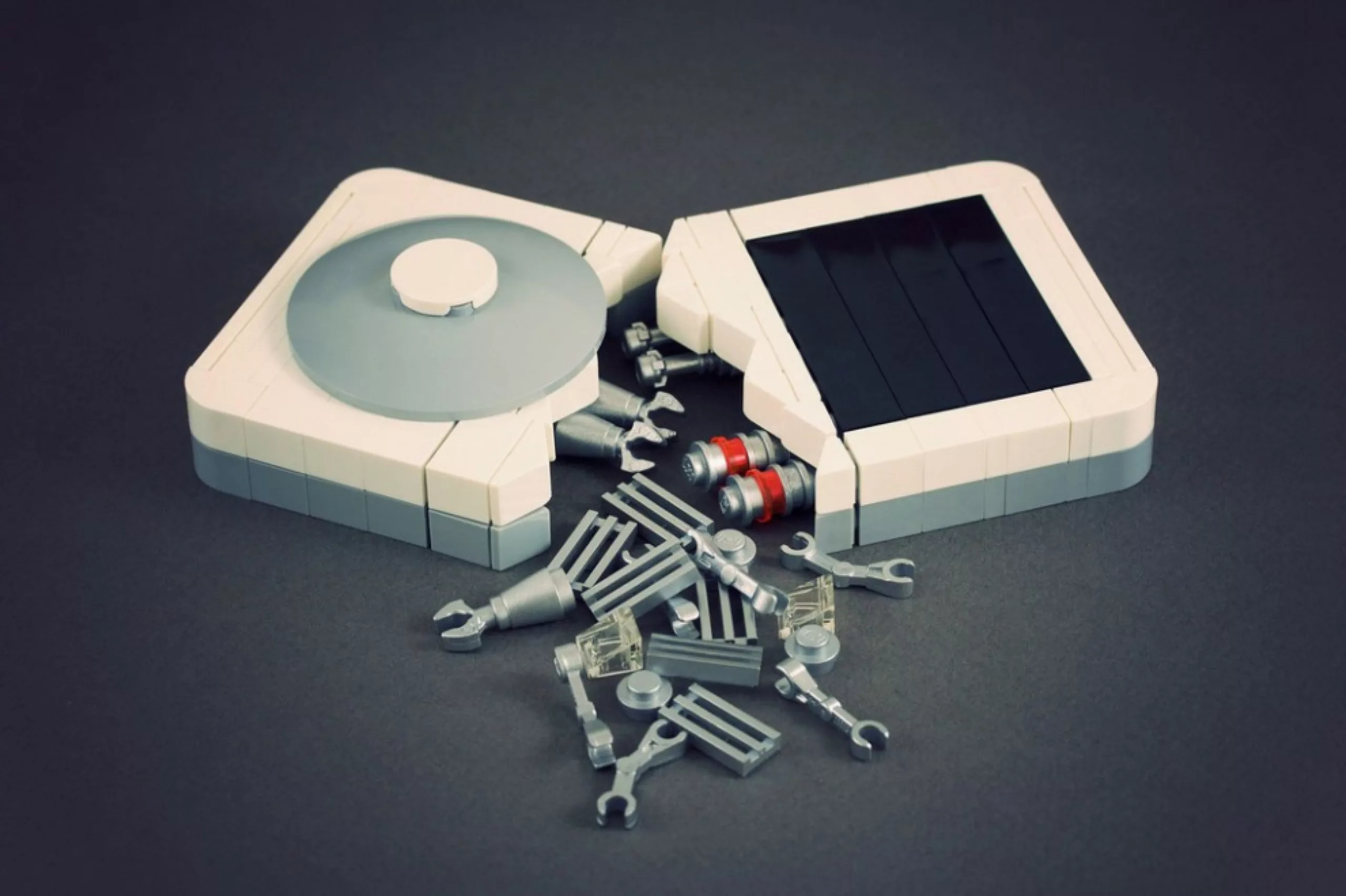 Dans un registre beaucoup beaucoup plus virtuose, j’en profite pour vous faire découvrir les étonnantes photographies “Lego évolution” de Chris McVeigh. Son travail présente l’évolution technologique par une succession de reproductions en briques lego d’appareils informatiques ou numériques.