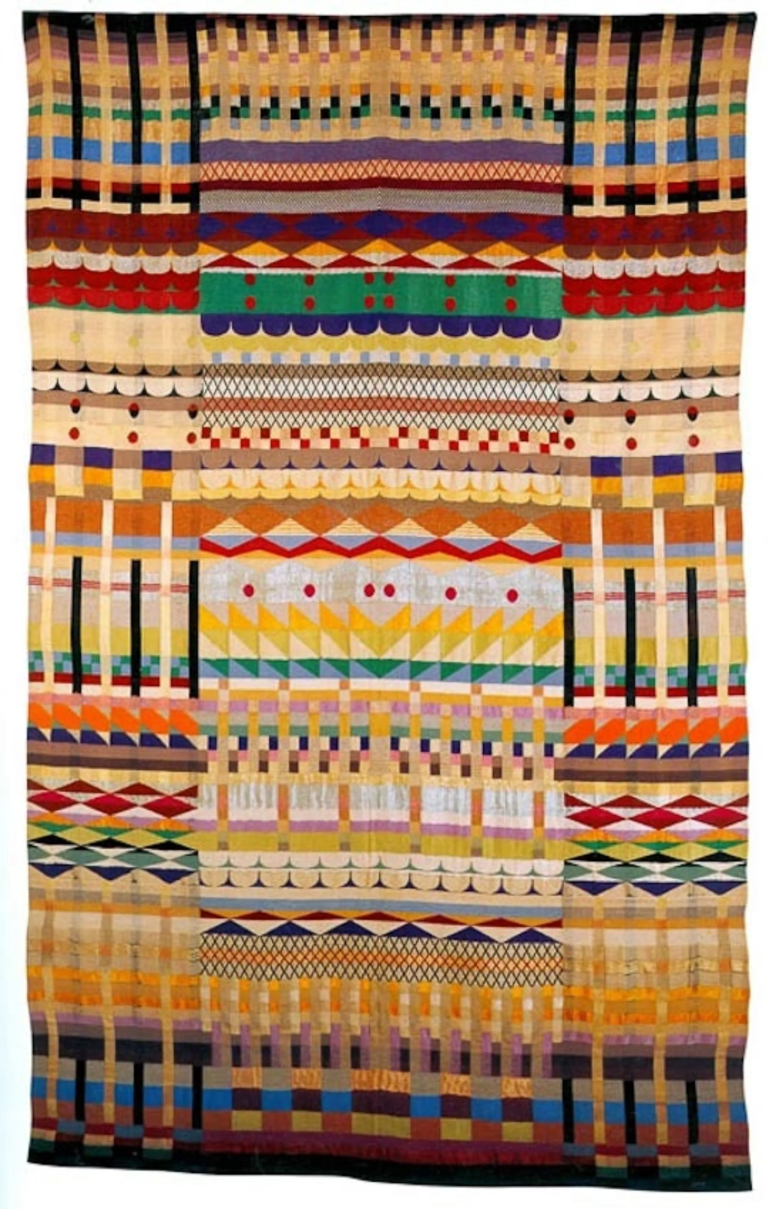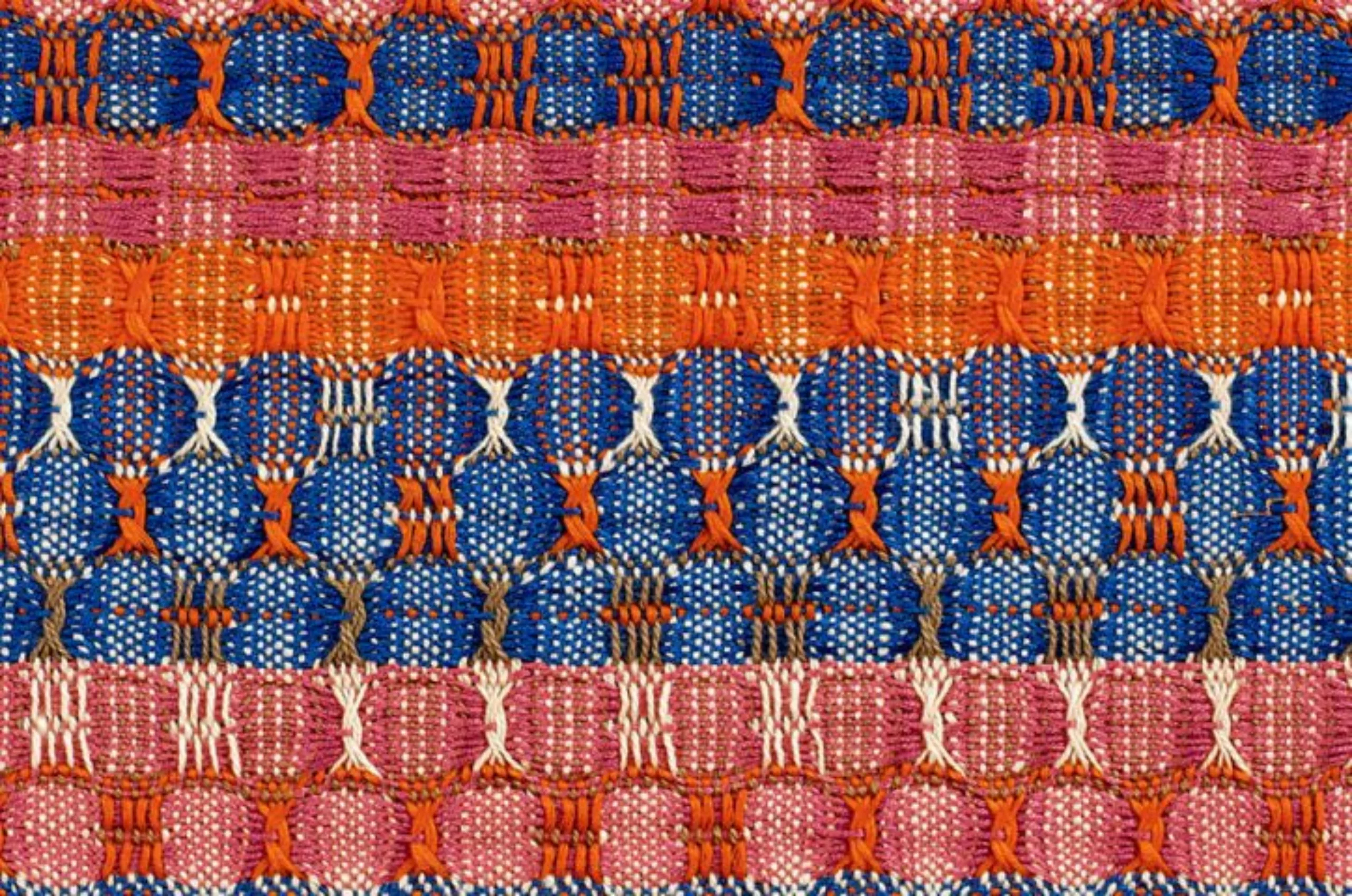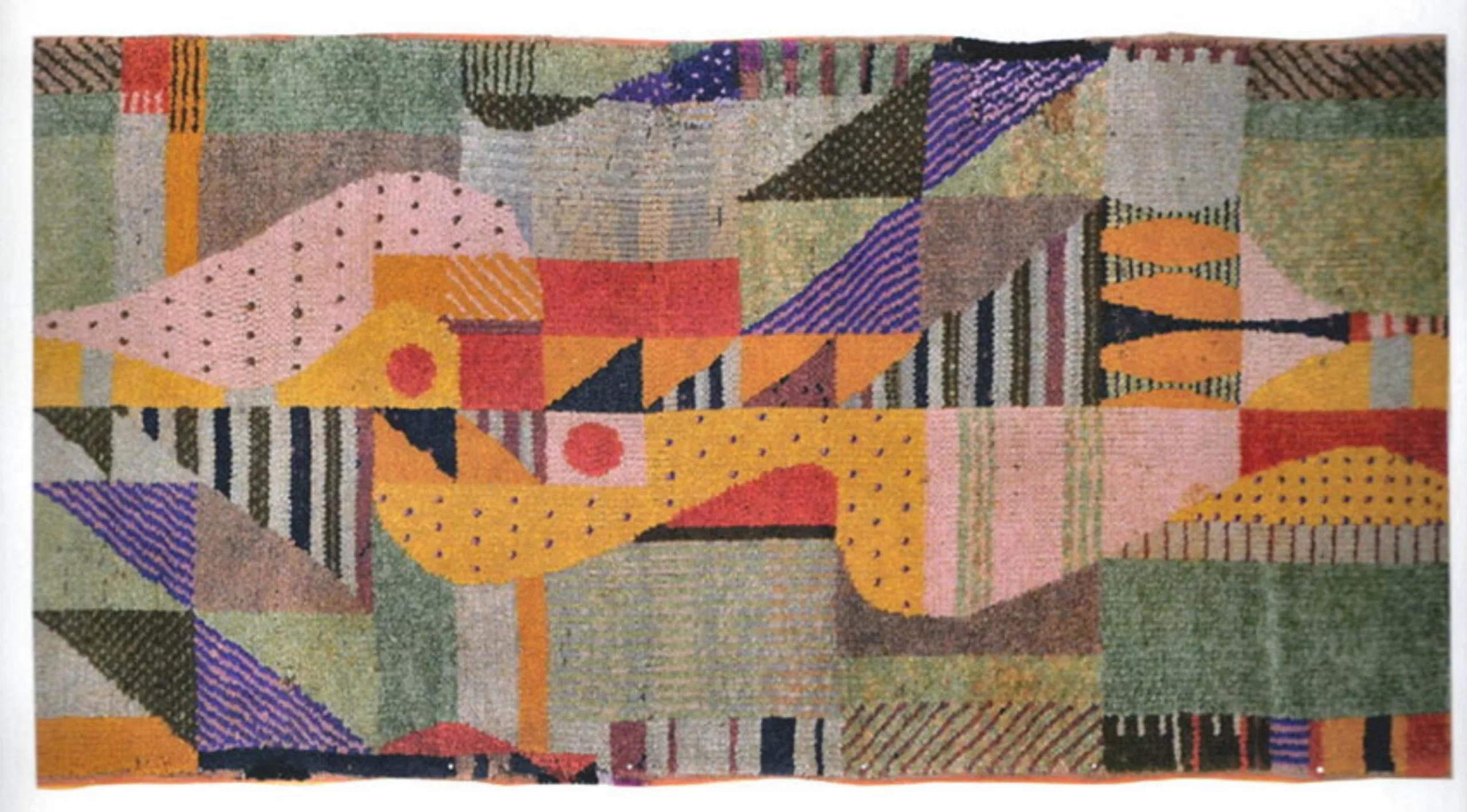 Anneliese Fleischmann intègre l’école du Bauhaus en 1922 à la suite de ses études d’art. À l’époque, les matières sont séparées par genres et elle se voit contrainte de s’inscrire au département de tissage, alors réservé aux femmes. Elle en fait néanmoins rapidement son matériau de prédilection et développe des techniques et des motifs uniques en jouant avec des matériaux comme le papier, le cellophane ou le crin. Elle transforme le textile en un art à part entière. Ses pièces sont avant tout conçues comme des formes abstraites et destinées à être accrochées au mur, comme des tableaux.