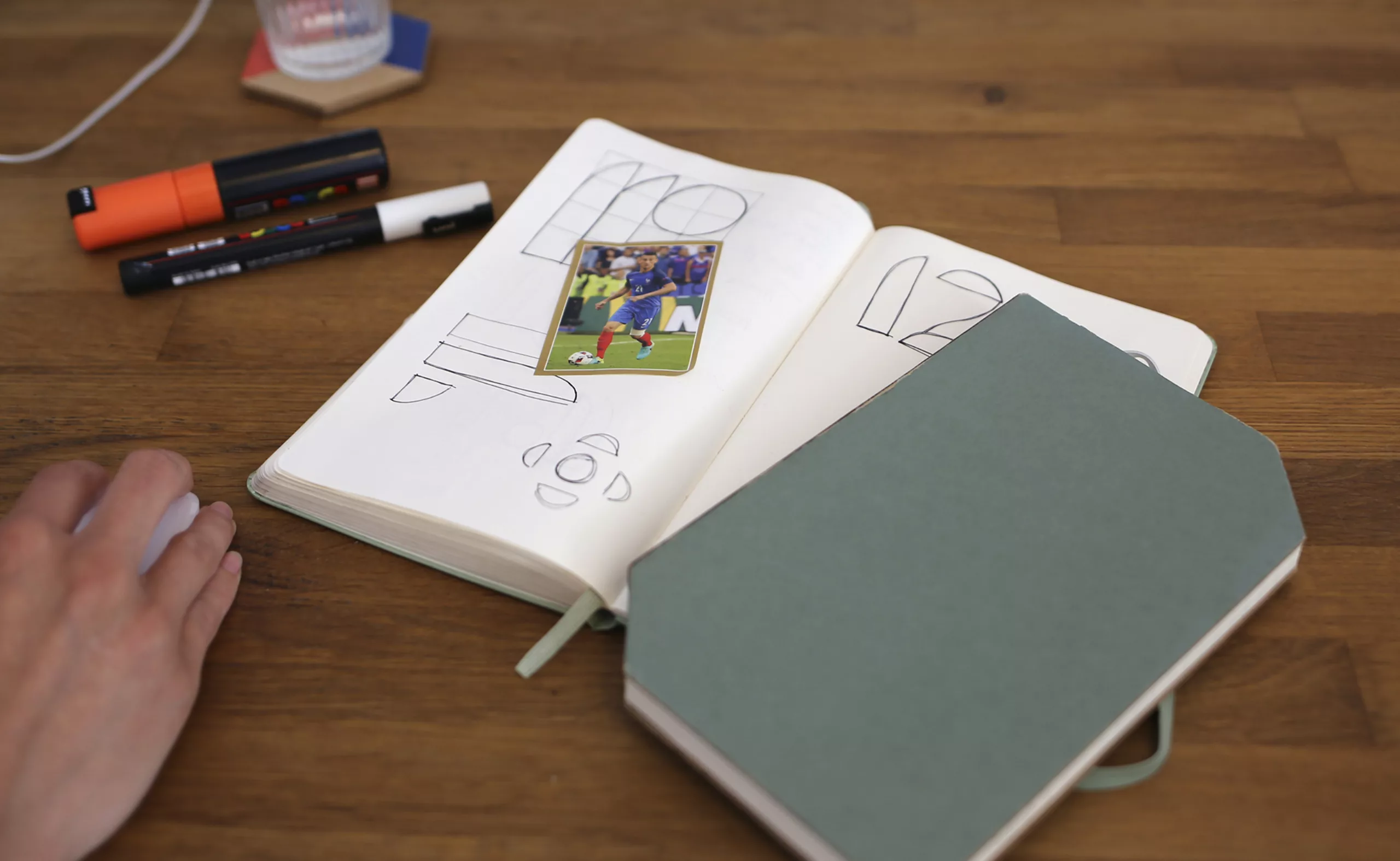 À partir de la Joschmi, nous avons déstructuré les éléments composant cet alphabet pour en extraire les formes brutes, comme dans un jeu de construction. Nous avons ensuite utilisé ces formes pour recomposer des numéros de maillots de football en s’inspirant du style de chaque artiste.