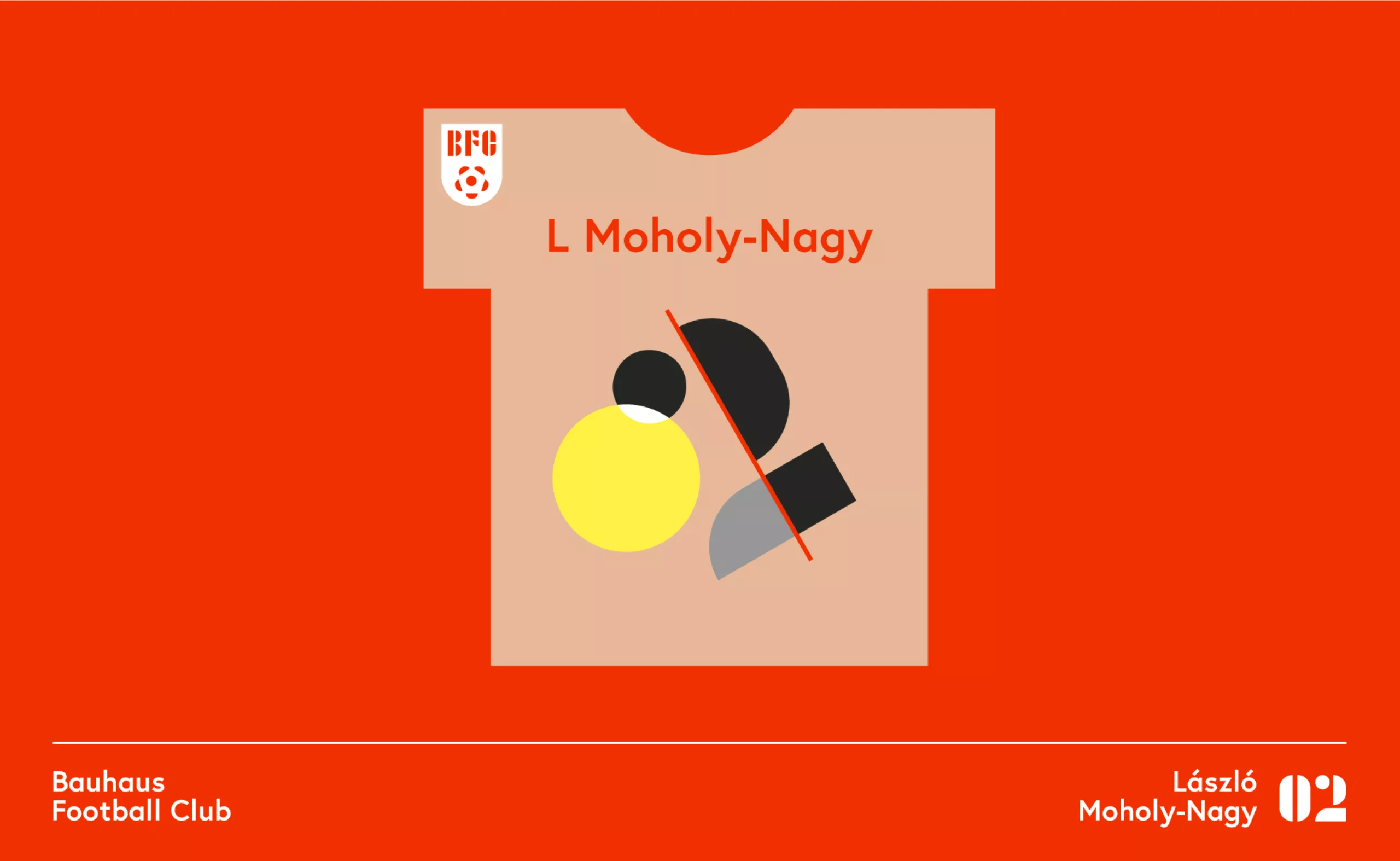 Pour chaque membre de l’équipe du Bauhaus Football Club, nous avons repris les codes couleur et les jeux de composition propre aux designers. Le logo reprend les codes du foot et les couleurs du Bauhaus, pour former un blason avec un ballon recomposé, toujours à partir d’éléments typographiques.