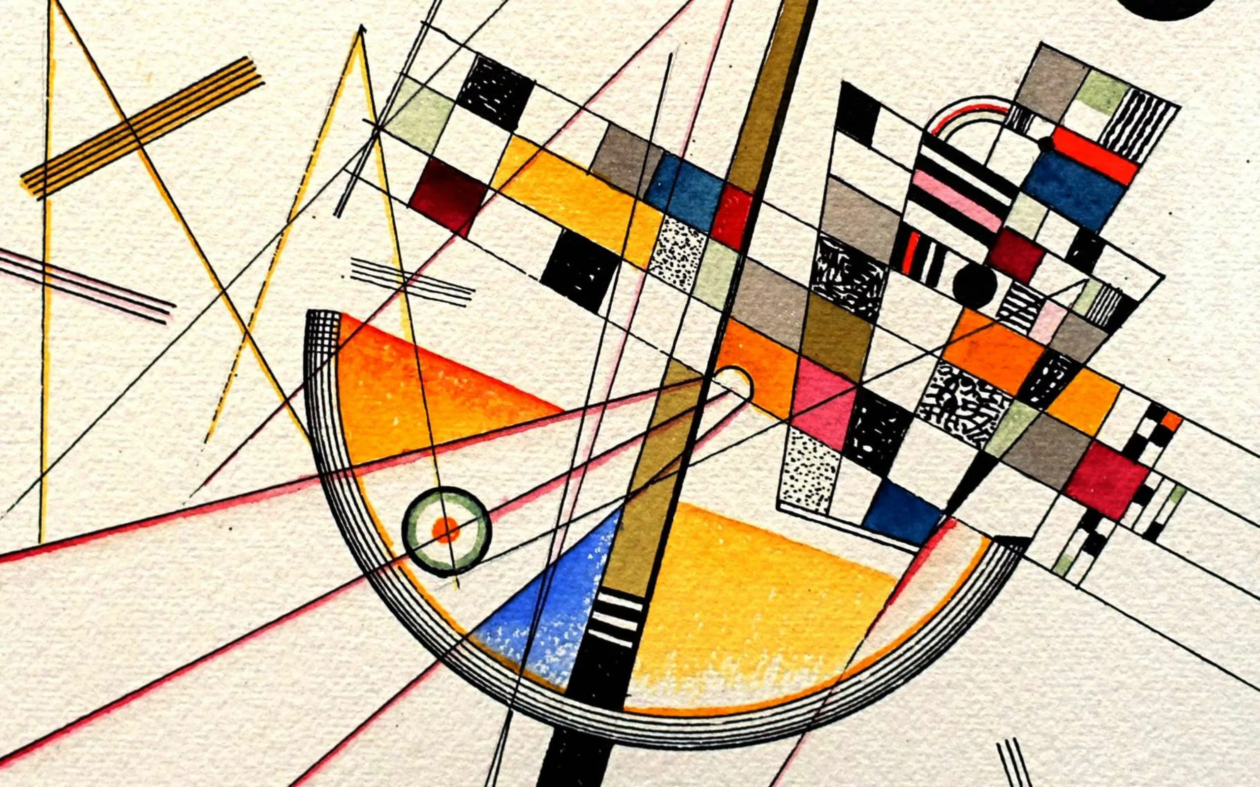 Avant de devenir responsable du département des peintures murales du Bauhaus, Kandinsky était déjà reconnu comme étant l’un des peintres les plus modernes de son temps et l’inventeur de l’art abstrait. Au Bauhaus, il enseignait les formes abstraites et le dessin analytique.