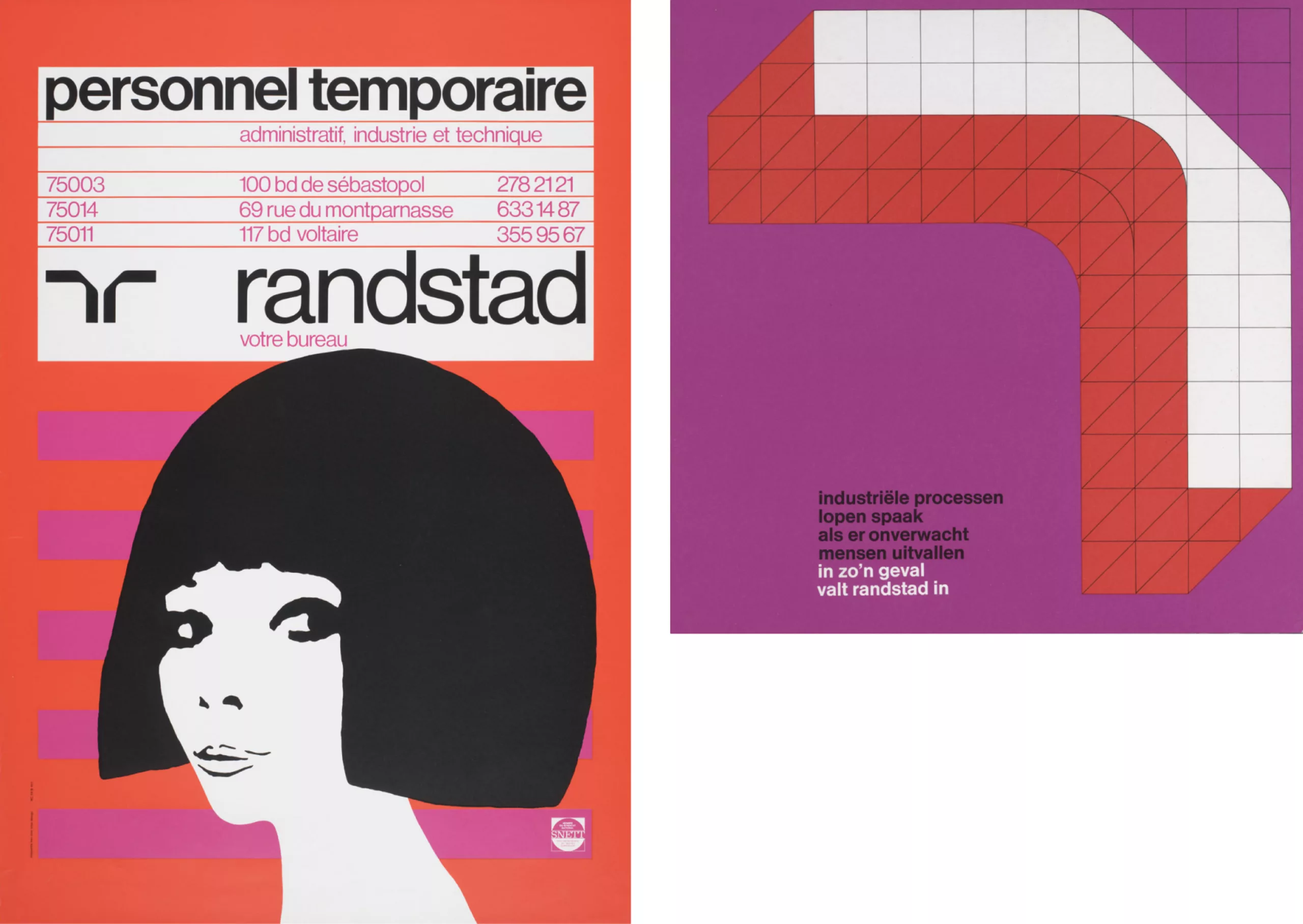 On lui doit également le fameux logo de Randstad, vous savez, ce double R en miroir racontant le lien entre les intérimaires et les entreprises. Cette composition permet d’apporter de l’équilibre et une certaine évidence au logo. Chacun va de son interprétation, certains tendent à penser qu’il s’agirait d’une personne avec les deux bras en l’air, comme un signe de bienvenue.