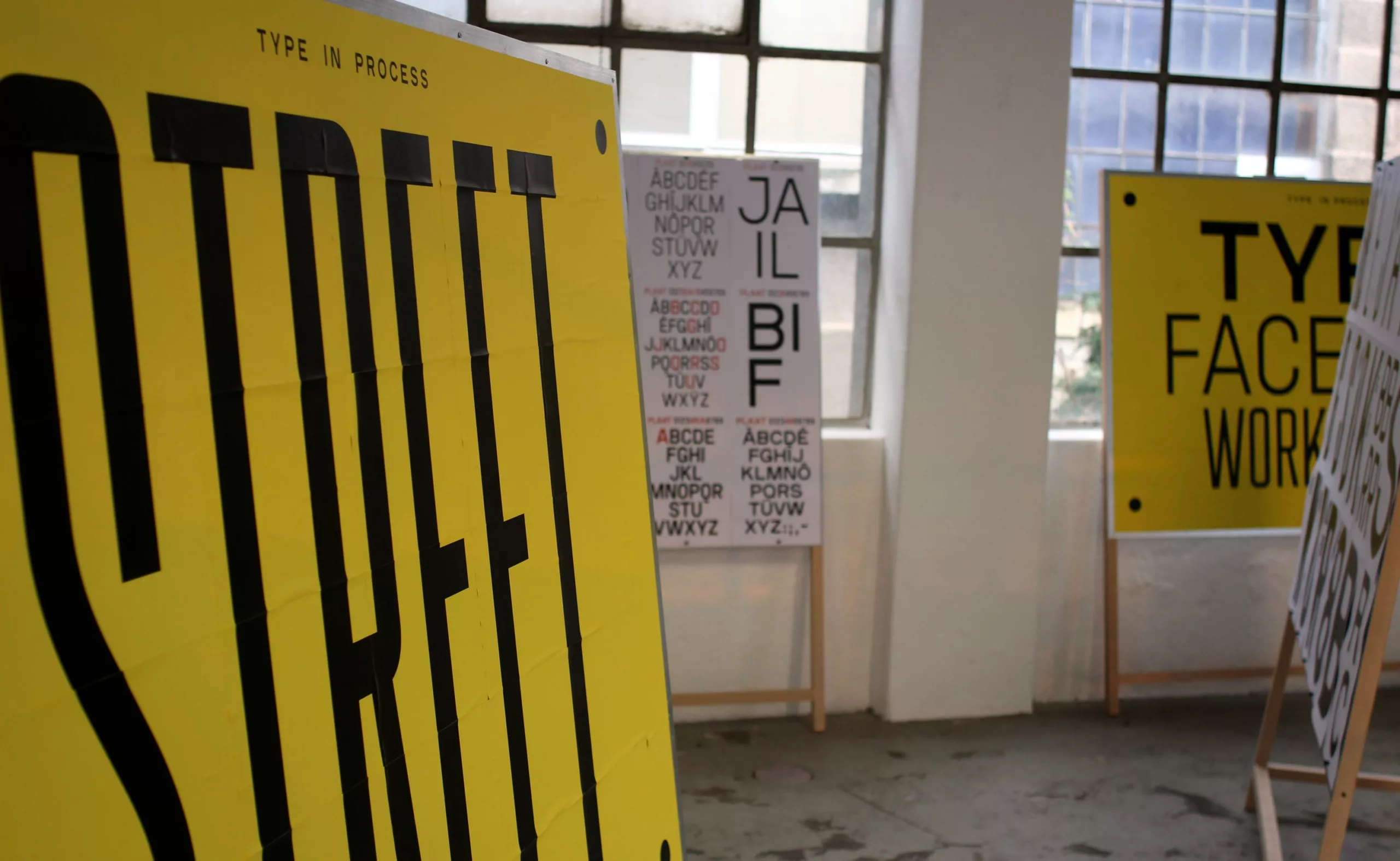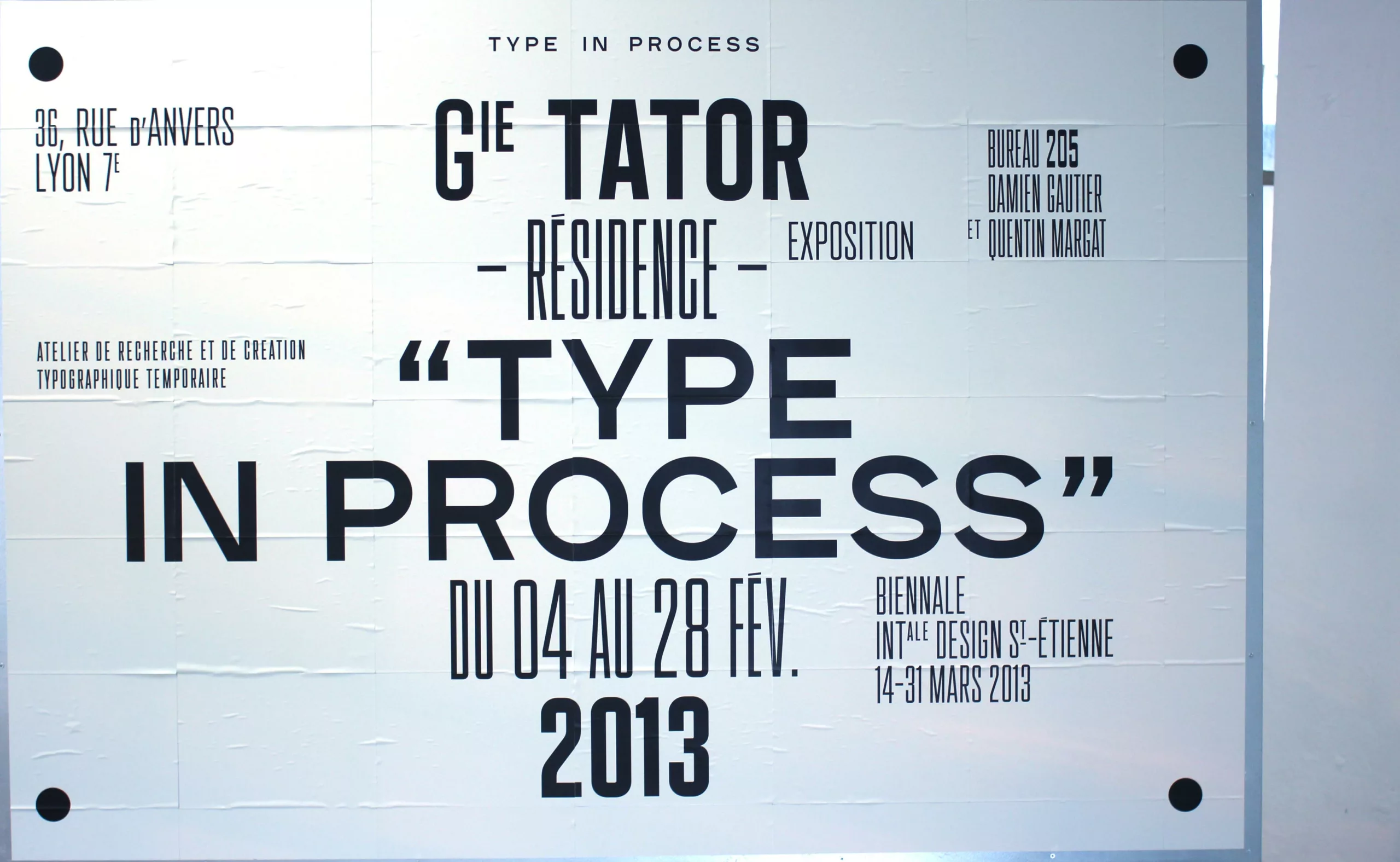 Heureusement, l’exposition “Type in Process” était là pour sauver l’honneur. Cette exposition présente le travail de Damien Gautier et Quentin Margat qui ont développé une police de caractères d’après l’observation des caractères présents sur les plaques de rues françaises. Ces plaques représentent un patrimoine typographique réel qui peut disparaître si l’on s’en tient à ces plaques banalisées installées dans les nouveaux quartiers ou lorsque la rénovation urbaine pense des plaques flambant neuves, à la typographie sans histoire, pourrait judicieuses se substituer aux précédentes.