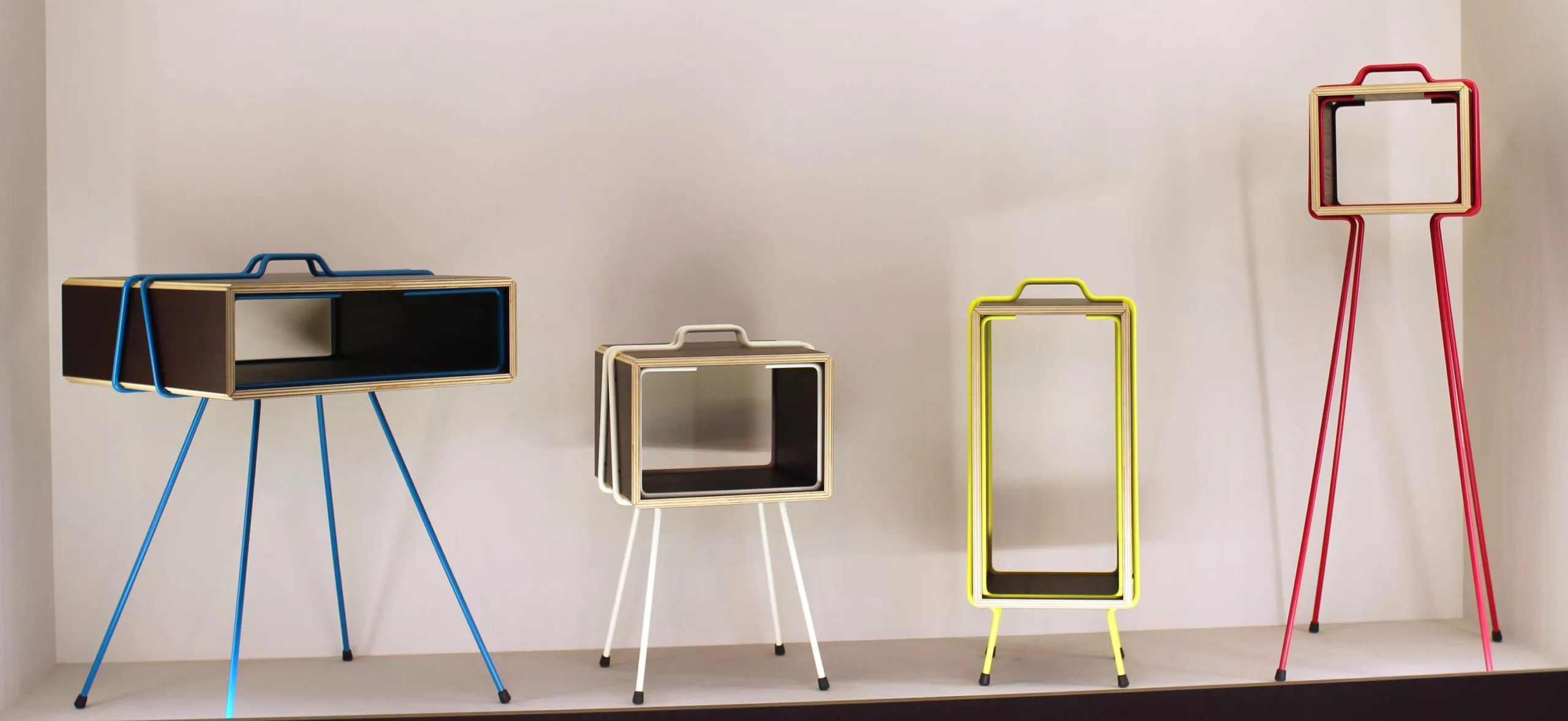 Cette série de meubles s’intitule Les frères Plo. Ils ont été pensés par Gaspard Graulich comme une famille de mobiliers de compagnie. Un système simple d’emboîtement, des couleurs vives et des proportions amicales, pour apporter un peu de légèreté et de personnalité à nos intérieurs.