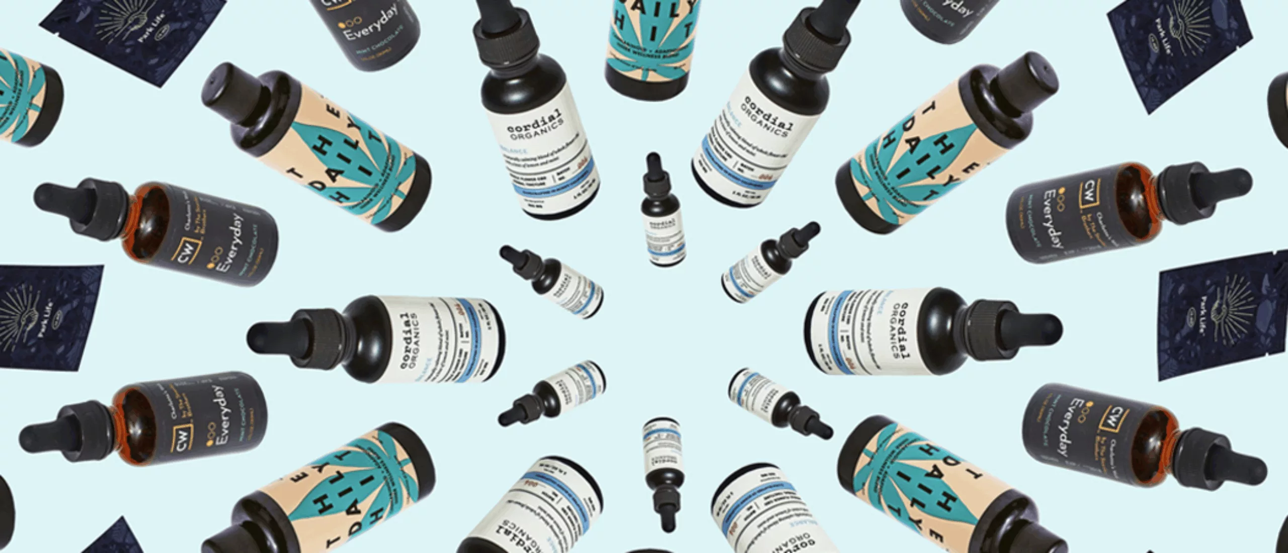 Ce positionnement imagine des produits qui s’inspirent des codes visuels du monde pharmaceutique. La marque Floramedex a par exemple repris le symbole de la croix pharmaceutique en la mêlant avec une feuille de cannabis. Les couleurs sont généralement sobres et sans fioritures, on n’est pas là pour s’amuser mais pour soigner. On pourrait imaginer que ce style de branding se limite aux compléments alimentaires et produits à base de CBD, mais l’on y trouve du cannabis sous toutes ses formes, du chocolat à la teinture en passant par l’herbe à fumer au THC. Les gouttes Ritual utilisent par exemple des fioles comme celles des anciens herboristes. Ce type de produit donne une image rassurante et médicale, sobre et mesurée, à prendre au gramme près.