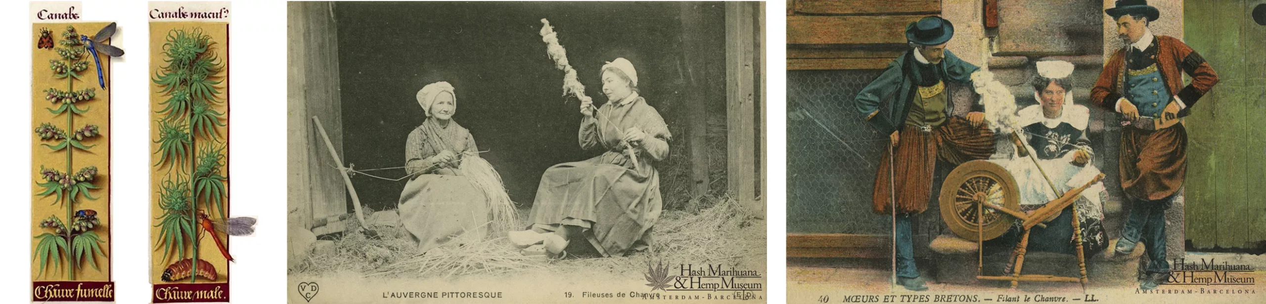 Le chanvre quant à lui connait ses heures de gloire en France au XIXe siècle (comme on le voit sur ces cartes postales) avant de presque disparaître dans les années 60 avec l’arrivée de la pétrochimie, qui avança ses fibres synthétiques comme le nylon, au détriment du chanvre. Aujourd’hui, notre pays demeure tout de même le premier producteur de chanvre en Europe avec plus de la moitié des surfaces (cocorico !).