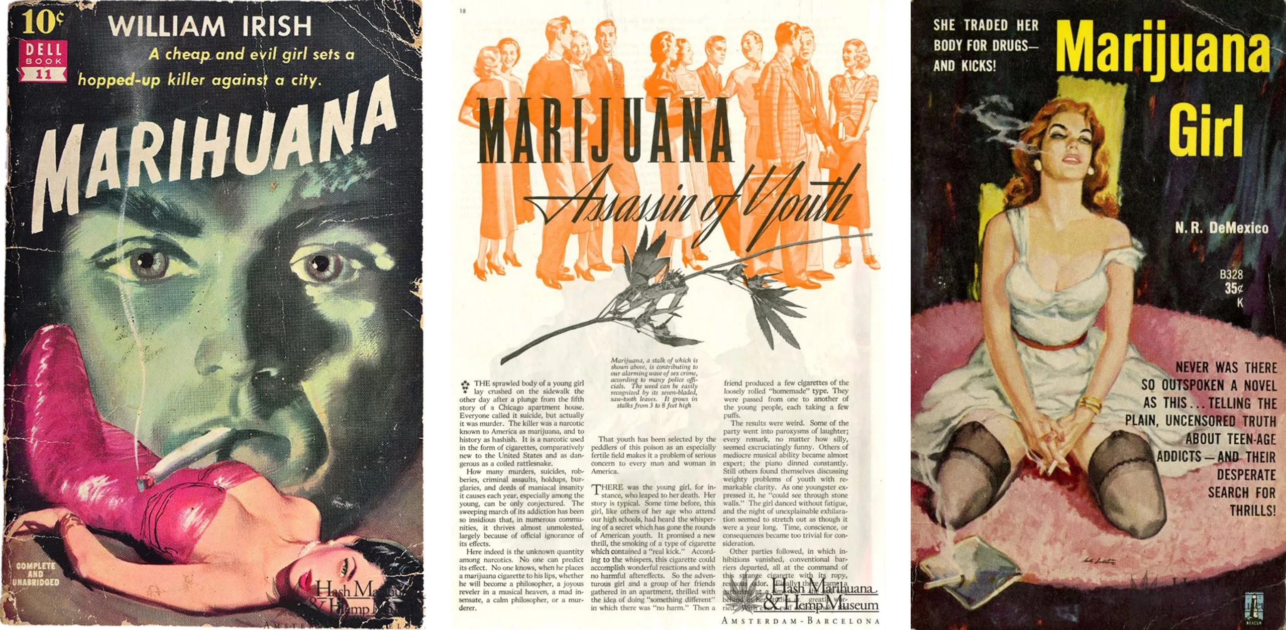 L’usage du cannabis est finalement interdit en 1937 aux USA. On ne l’utilise bien sûr pas seulement en tant que médicament, et les lobbys puritains anti-cannabis entament une propagande soutenue par le gouvernement pour dénoncer ce démon vert, ce “ticket pour l’asile psychiatrique” qui anéantit la jeunesse. Les fibres et les médicaments synthétiques ont besoin d’un tremplin, et il faut d’abord anéantir leur plus gros concurrent.