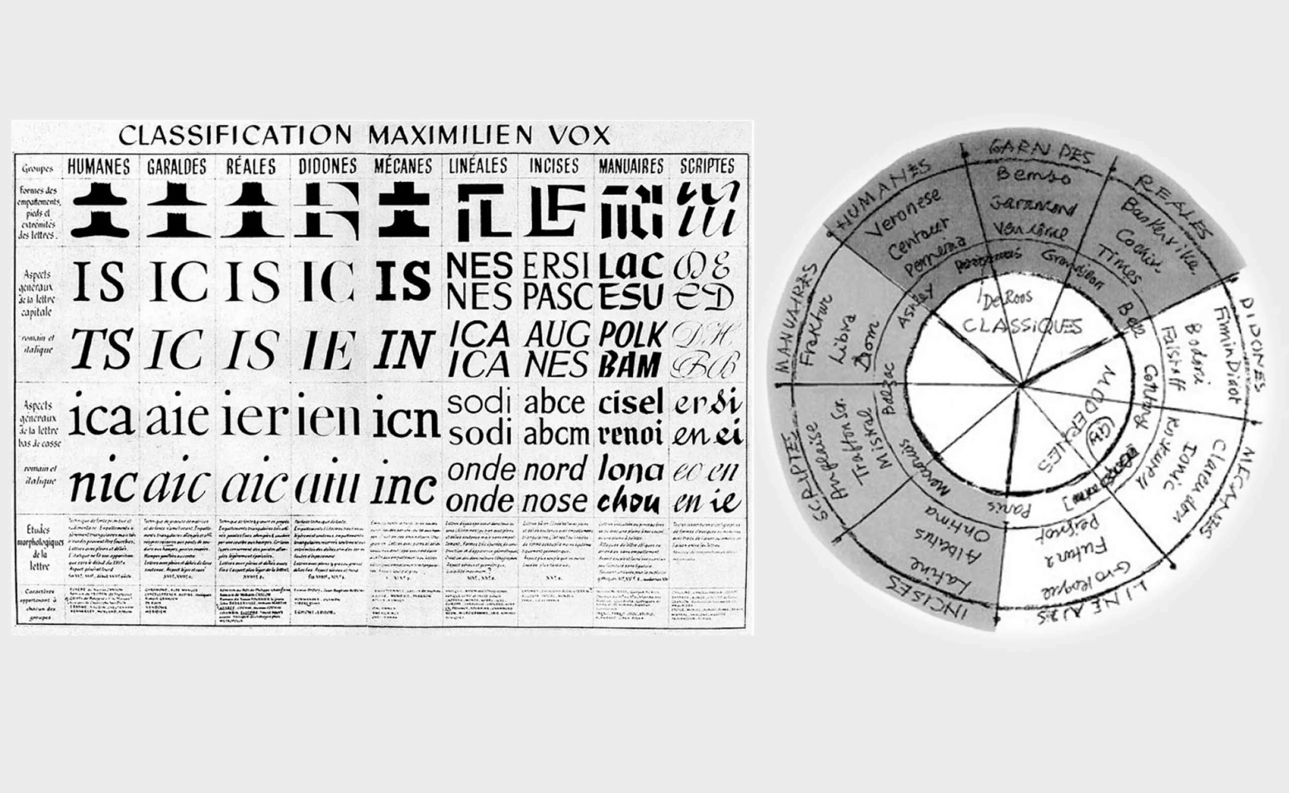 La classification typographique, c’est un peu se plonger dans un labyrinthe de formes, d’empattements et de graisses. De Thibaudeau à Vox et d’un pays à l’autre, en comptant sur plus de 5 siècles de créations typographiques, les frontières entre les caractères sont parfois compliquées à saisir. De nos jours, deux outils s’offrent aux designers et typographes pour reconnaître les typographies, qui s’inspirent des classifications des anciens typographes et le remanient à leur sauce.