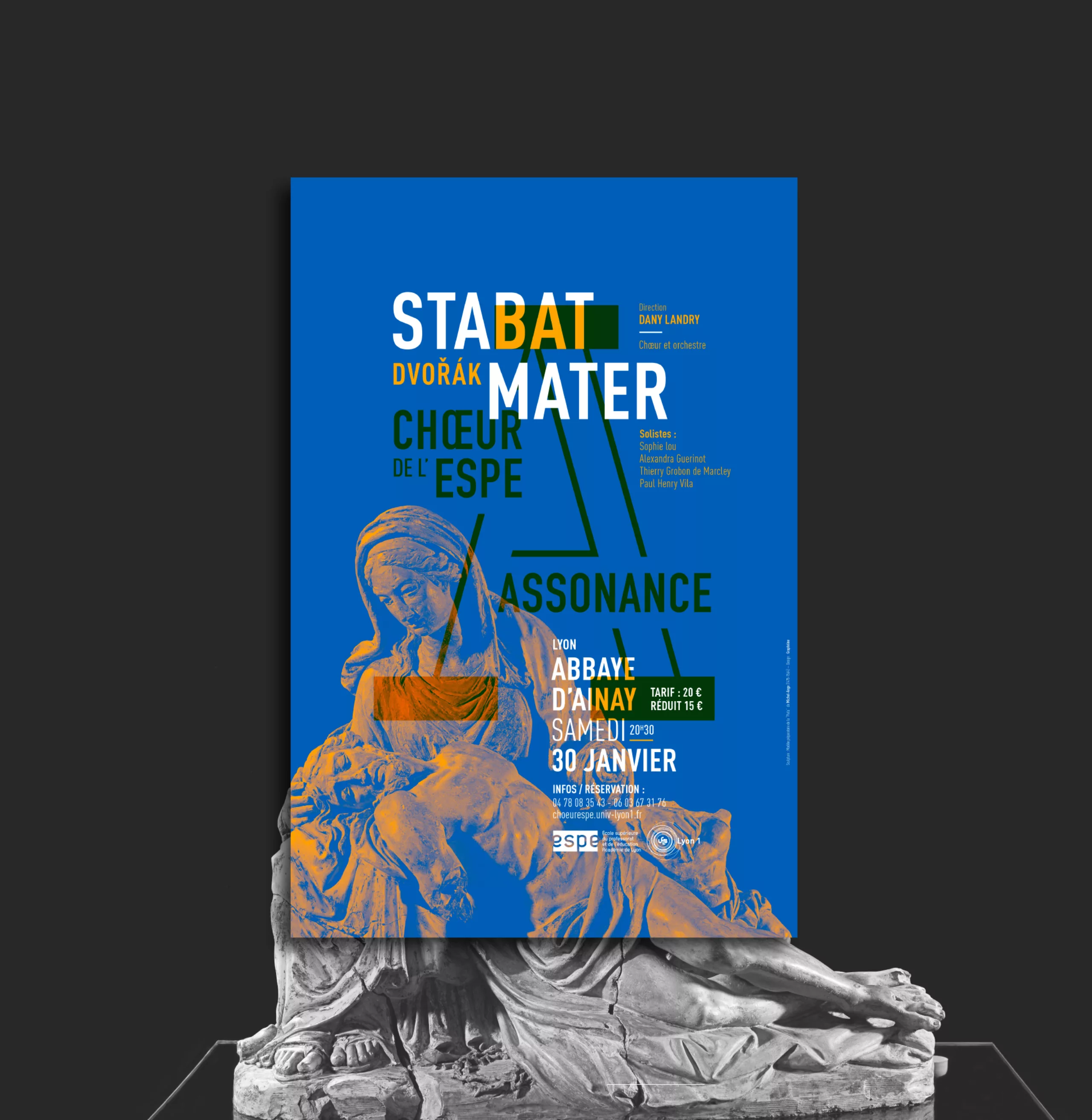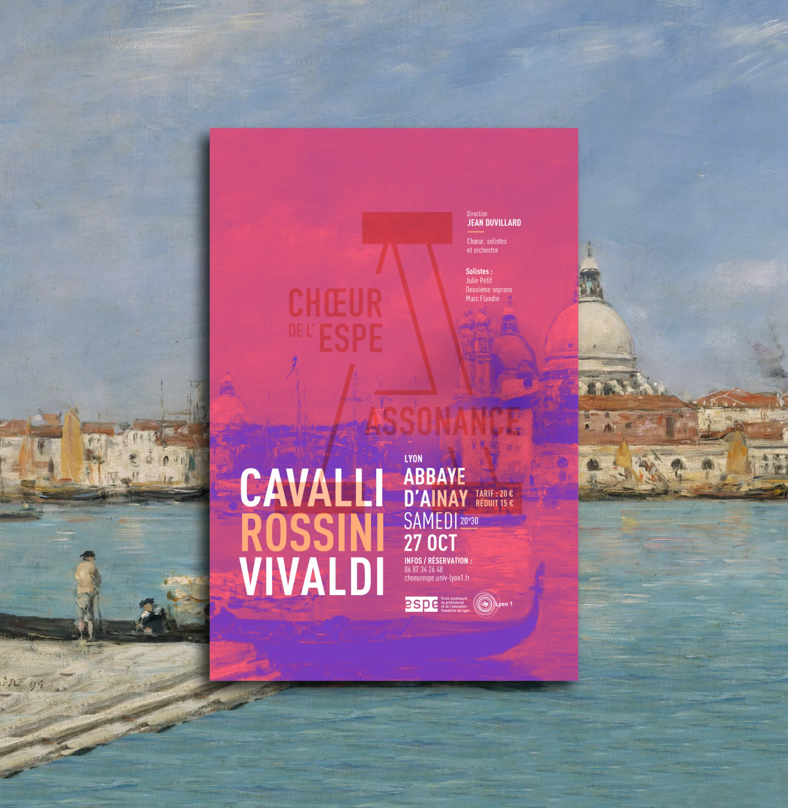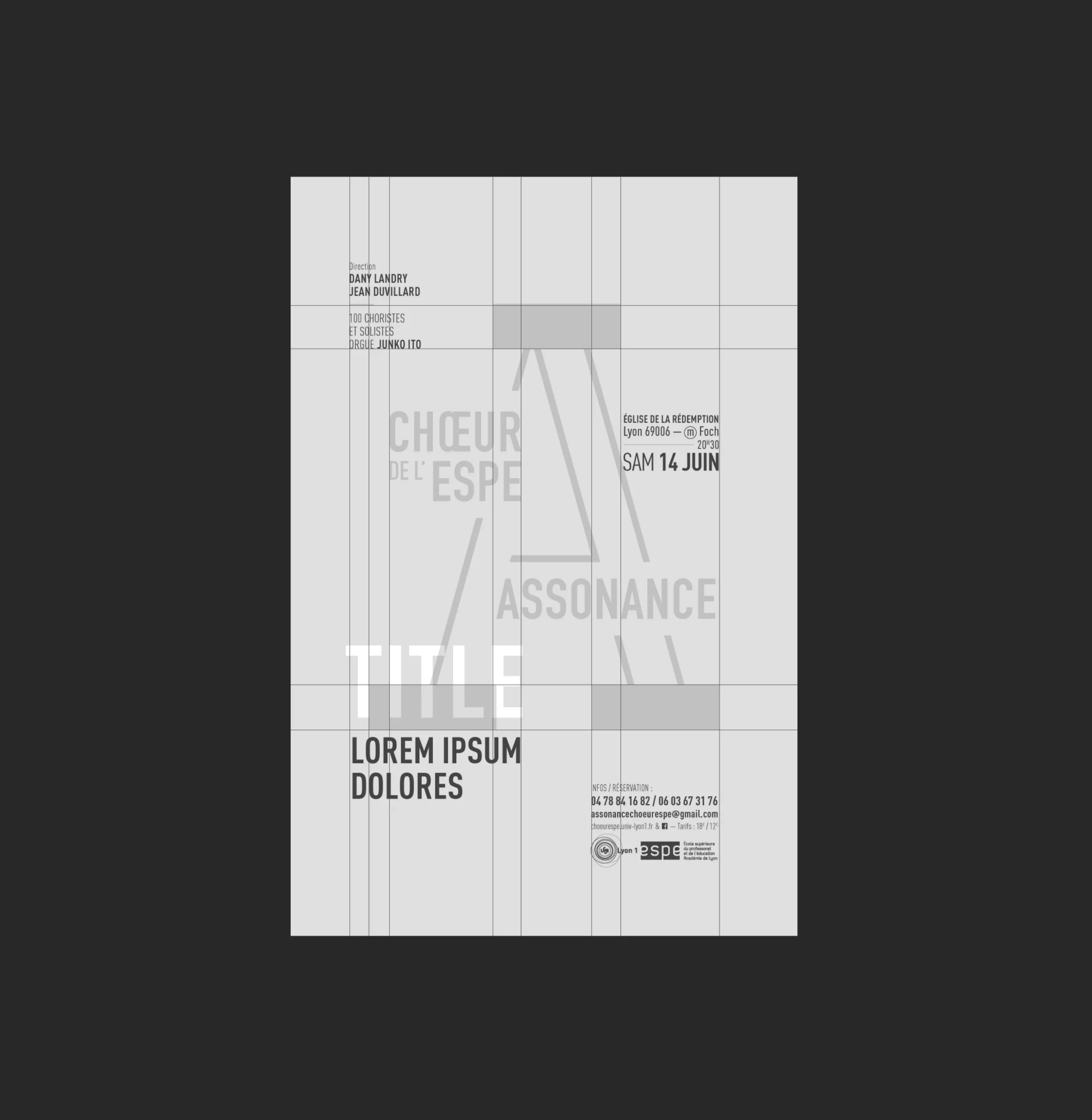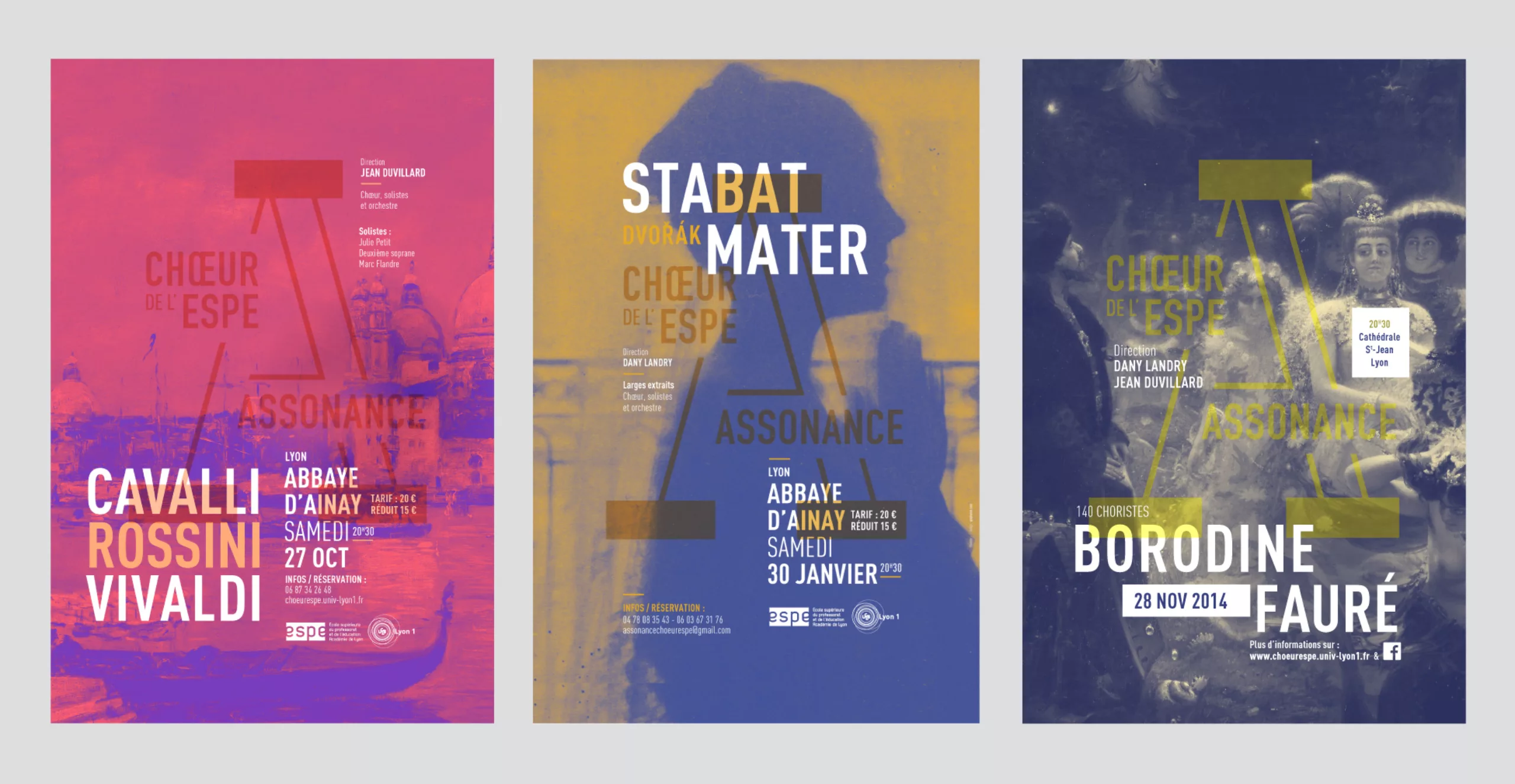 Depuis 3 ans nous accompagnons le Chœur de l’ESPE – Assonance dans la conception de leurs affiches de musique classique. Il s’agit d’un chœur mixte de plus d’une centaine de personnes. Ce chœur s’adresse aux enseignants actifs ou retraités, aux étudiants et stagiaires le l’ESPE (Ex-IUFM). Il est également ouvert à toute autre personne. Il a pour but de faire pratiquer une activité vocale d’ensemble afin de prolonger, au sein de l’ESPE, la formation musicale et pédagogique des étudiants, des stagiaires et des enseignants.