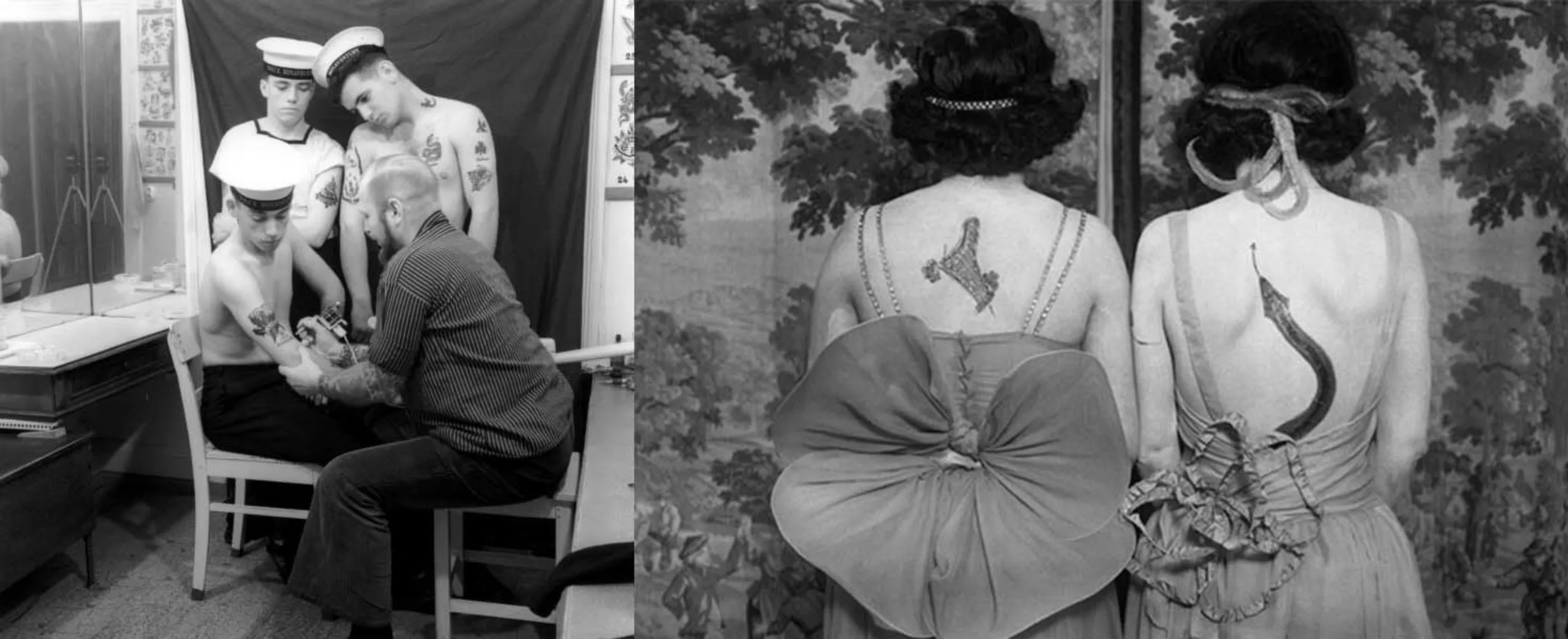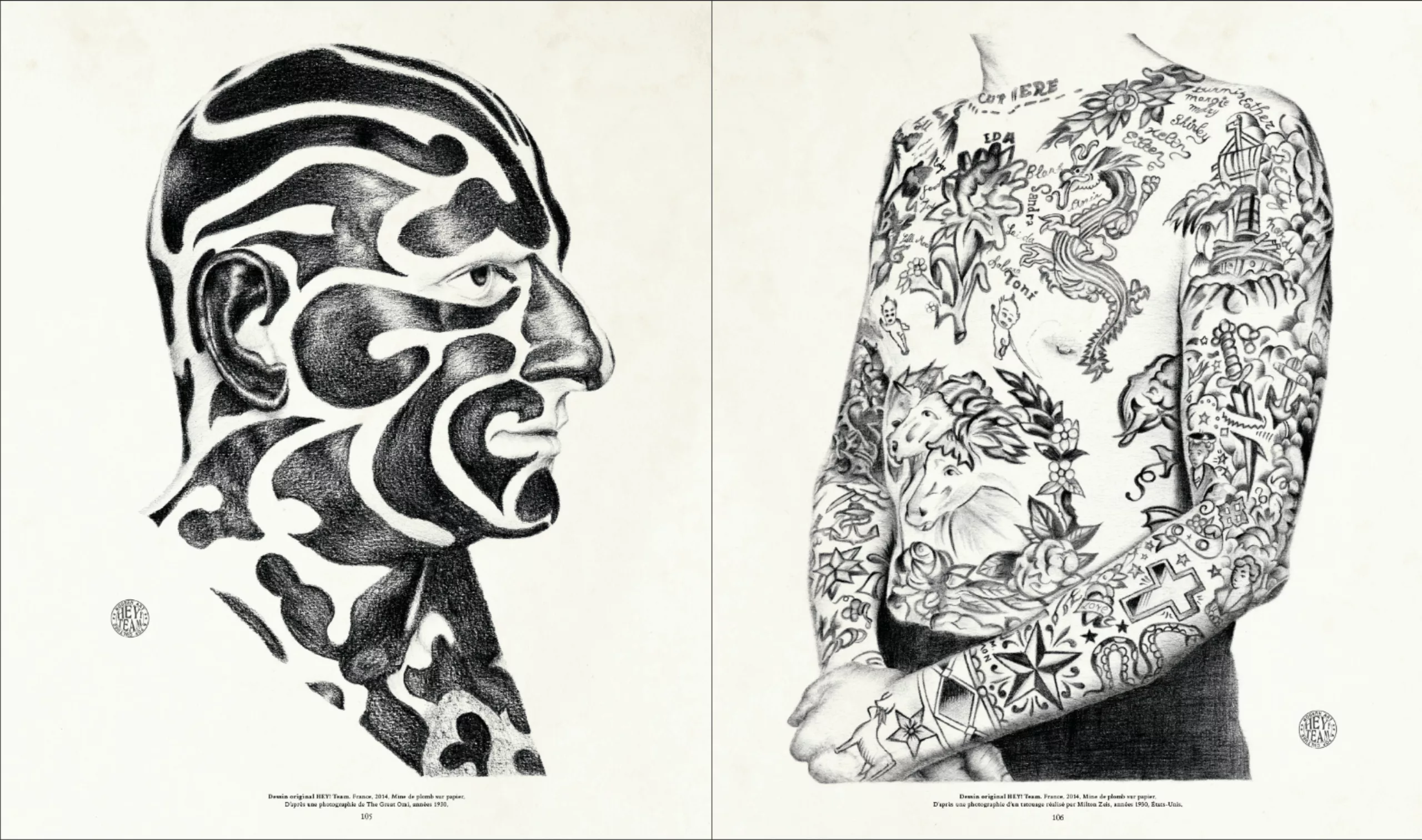 L’exposition “Tatoueurs, tatoués” est une manière pour le duo de rendre hommage à l’art et l’histoire du tatouage. Non pas pour glorifier les maîtres tatoueurs mais plutôt pour éduquer le publique sur les valeurs du tatouage. L’acte de se faire tatouer est basé sur le lien, voire même la fusion, entre deux personnes : le tatouer et le tatoué. Ce lien existe non seulement car il y a un contact physique lors de la création d’un tatouage (le tatouage est tout d’abord l’acte d’insérer de l’encre sous la peau), mais aussi car cette communauté (autrefois) marginale a toujours été basée sur le partage. Partage de recettes d’encres dont les composants changent de pays en pays, partage de techniques et partage d’histoires !