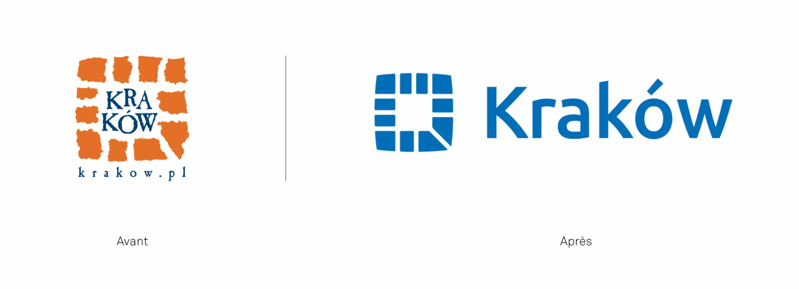 Cette semaine on voyage en Pologne avec la ville de Cracovie (Krakow pour les intimes) qui a décidé de moderniser son logo vieux de 20 ans en faisant appel à sa créatrice originale, Dorota Kozak. L’ancien logo commençait en effet à vieillir et n’était plus au goût du jour, particulièrement sur les écrans mobiles et les publications numériques. Alors certes c’est une ville vieille de plus de 1400 ans, mais ce n’est pas une raison pour laisser son logo se craqueler de la sorte.