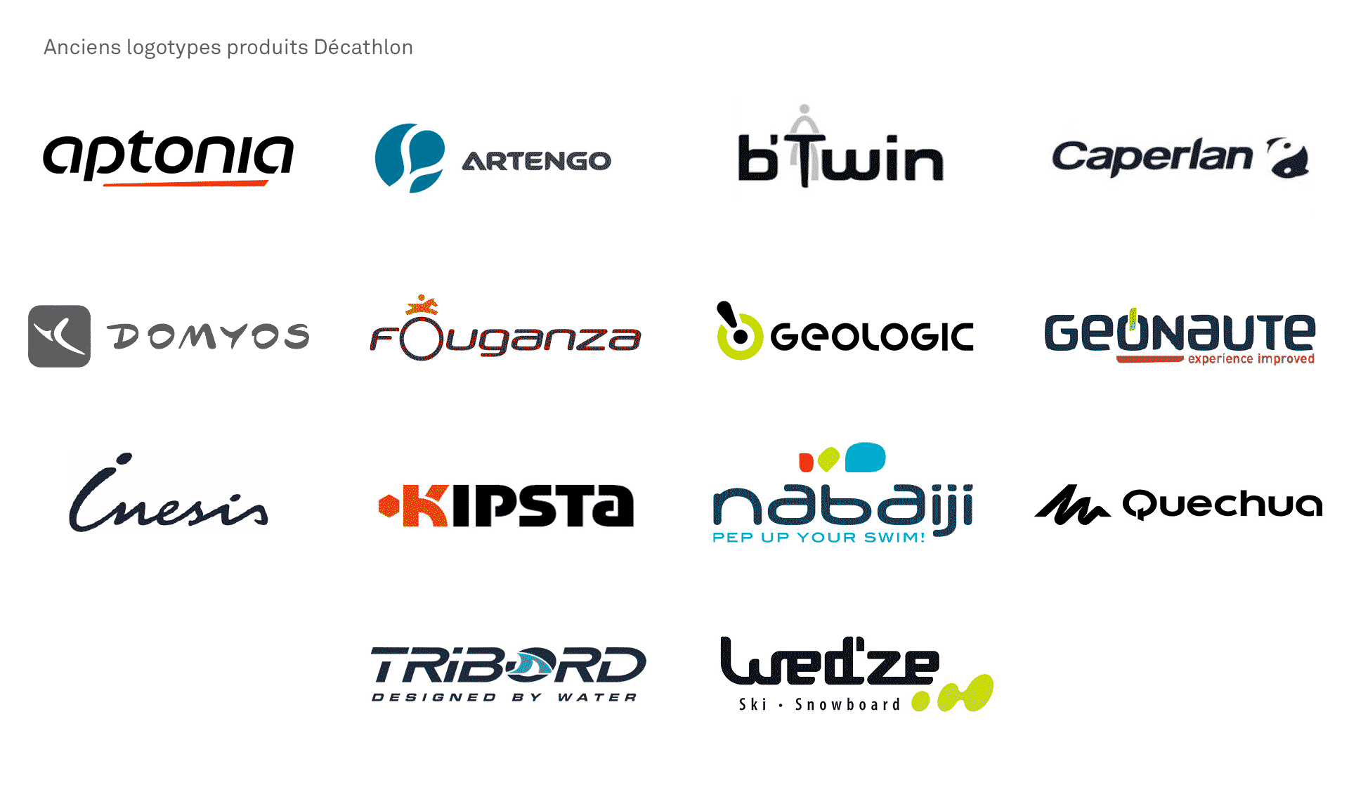 Regardons cela de plus près en effectuant une archéologie visuelle des marques Décathlon.