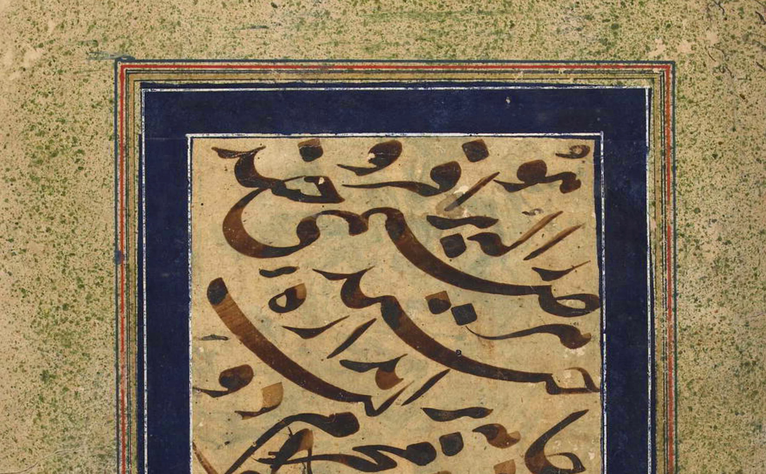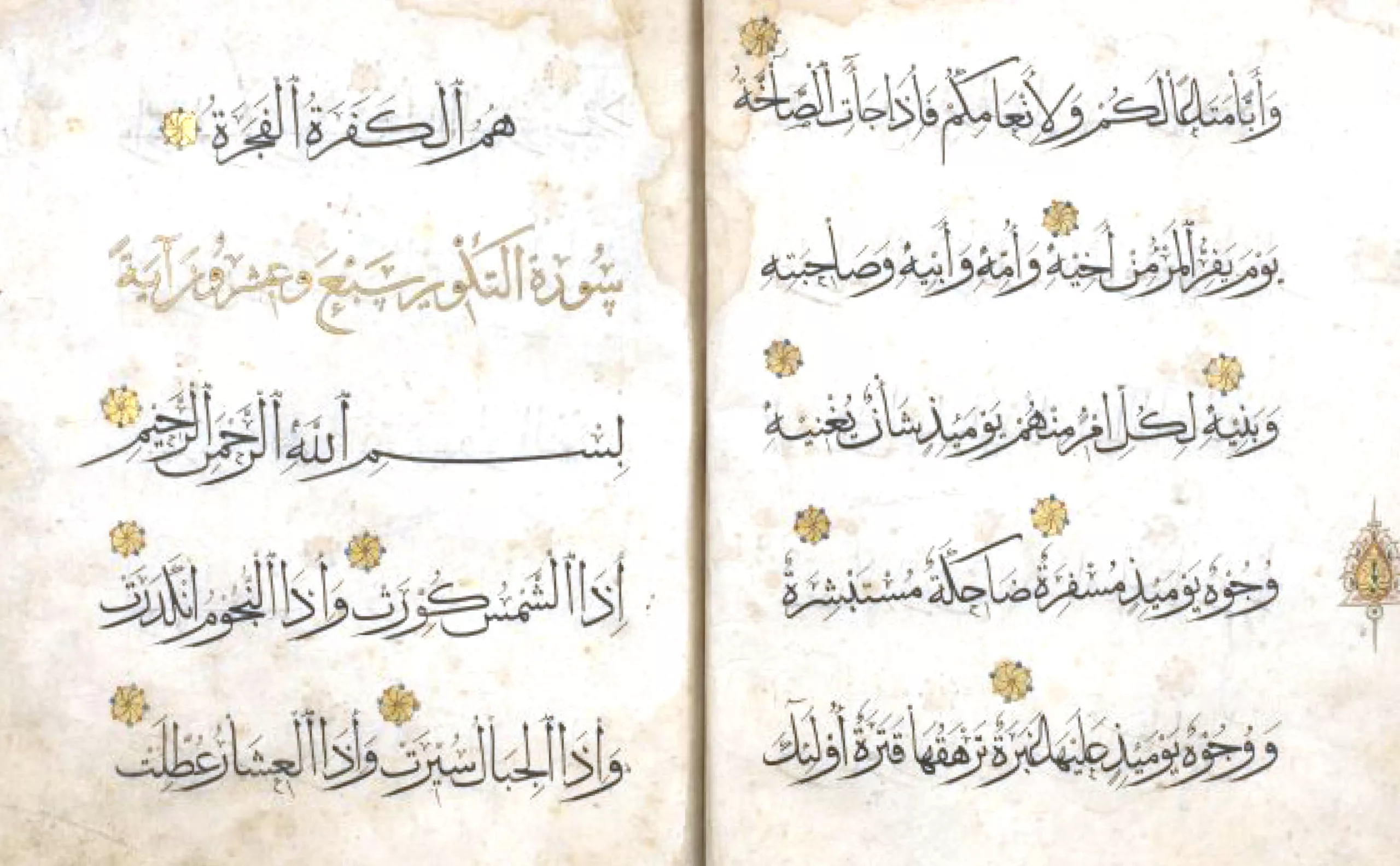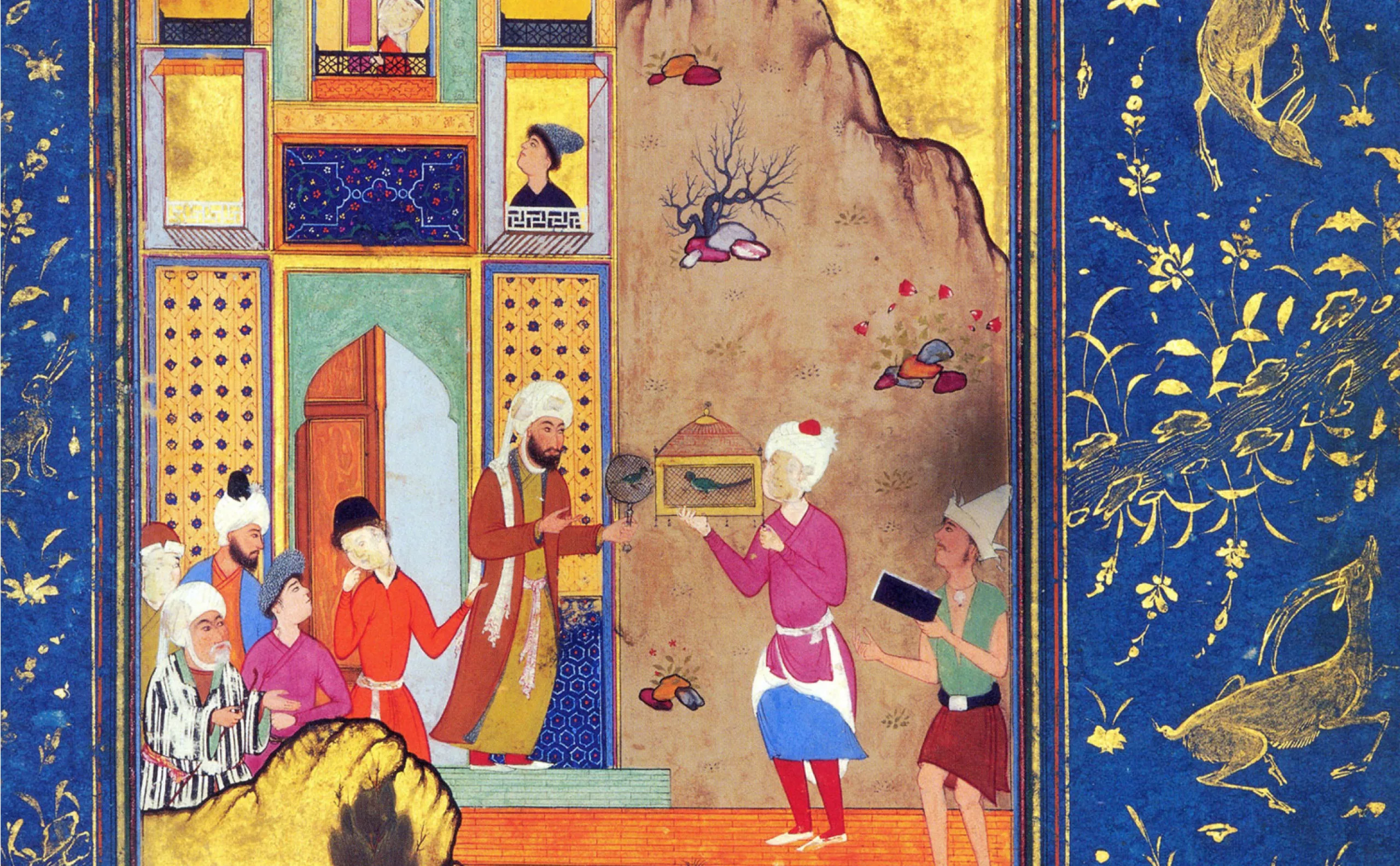 Basée sur le Coran, la religion musulmane produit un grand nombre de miniatures représentant des personnages. Peu à peu, les représentations de visages dans les textes pieux disparaissent et sont laissés vides. Les mots du Coran sont alors prétextes à des ornements particulièrement dévoués. Les enluminures et la calligraphie subliment ainsi les mots sacrés dans les premiers livres, avec de l’or, des jeux d’encres et de papiers. À tel point que l’art calligraphique est encore considéré comme le plus abouti des arts appliqués de l’Islam, et très utilisé dans le graphisme iranien.