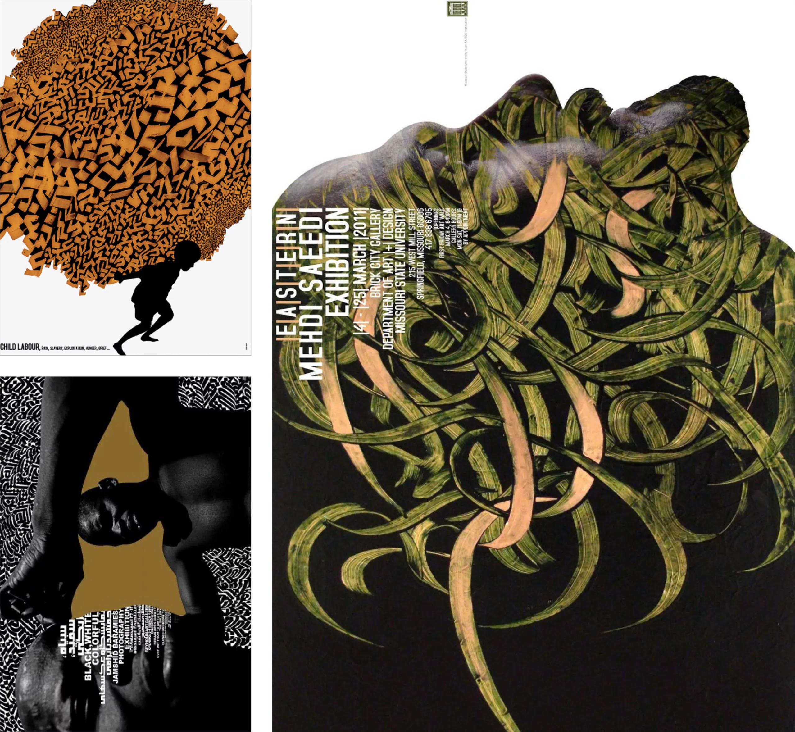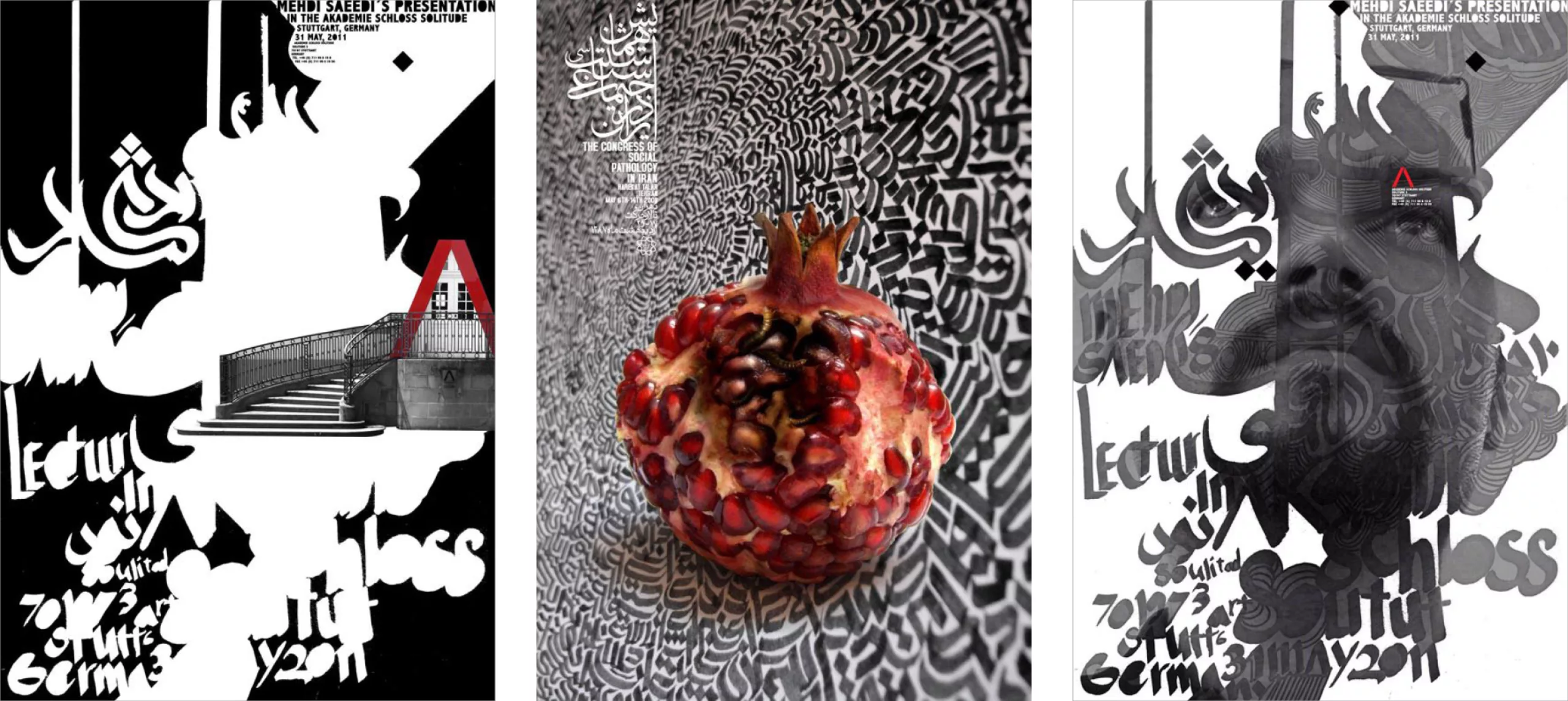 Mehdi Saeedi fait également partie de cette nouvelle génération de designers iraniens remarqués, bien qu’il travaille aujourd’hui aux États-Unis. Il a contribué à développer les principes de la calligraphie appliqués à la typographie, et travaille sur le zoomorphisme avec des caractères perses. Il a, dans ce sens, développé un cours intitulé “la mélodie des lettres”.