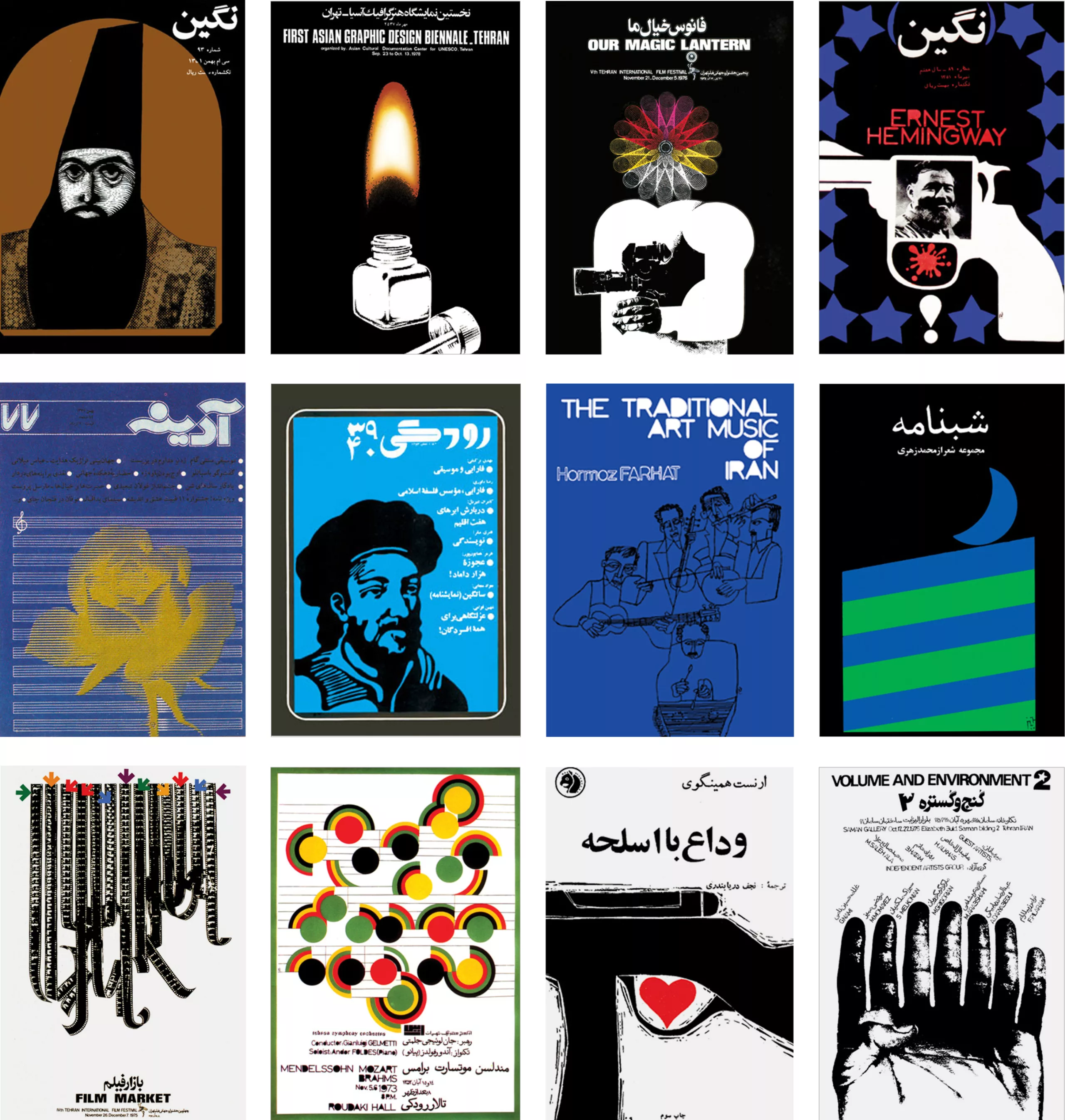 À l’époque, ces designers sont de véritables pionniers. Avec un style propre à chacun, ils tentent de faire comprendre que le design, même s’il est représentation, ne dissimule pas l’essence des choses. Par chance, les iraniens, et donc nombreux de leurs clients, sont éduqués et sensibles à l’art, et le design graphique y est considéré comme un art à part entière. La première exposition graphique de Téhéran a lieu en 1964, et la première Biennale d’Art Asiatique s’installe dans la capitale iranienne en 1978.