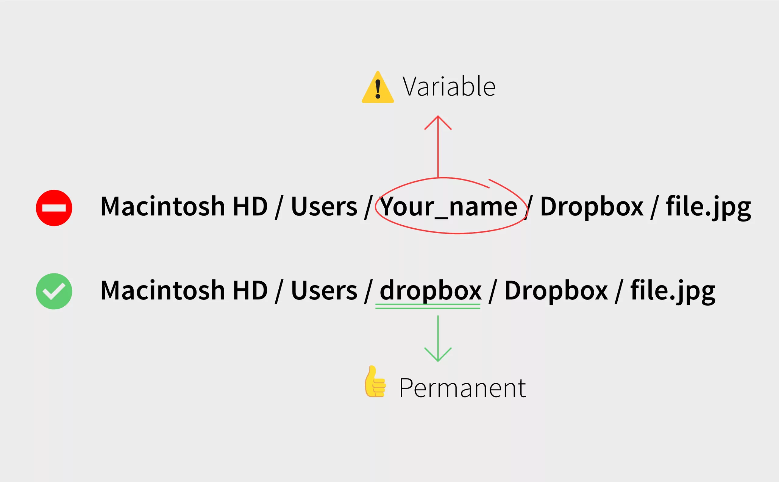 Cette problématique de liens rompus vient simplement du fait que le chemin d’accès au fichier est différent sur chaque ordinateur. En effet, de base, le répertoire Dropbox (ou Google Drive) est créé dans le répertoire de l’utilisateur de l’ordinateur. Sur Mac, le nom de ce repertoire dépendra du nom que vous aurez choisi à l’installation de votre machine. Autant dire, chaque ordinateur aura un nom différent. Dès lors, les chemins des fichiers de “Macintosh HD / Users / Mister_A” seront différents de “Macintosh HD / Users / Missie_B” et indesign perd les pédales !