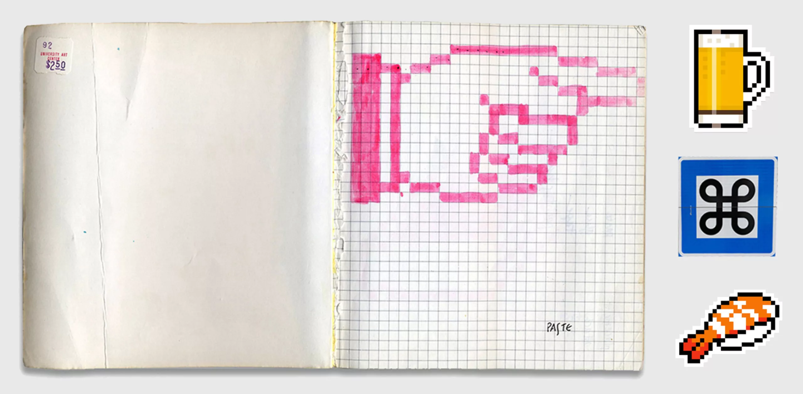 Elles deviendront des icônes (au sens large du thème) dans le monde du numérique, reprises dans les jeux vidéos (la Bombe dans Mario Kart ou les cœurs de niveau de vie) et même en dehors des écrans. Pour développer ces icônes, Susan raconte qu’elle s’est inspirée des hiéroglyphes, des statues monumentales du sculpteur Claes Oldenburg, ou d’une encyclopédie des symboles. Le pictogramme de la touche command est par exemple tiré d’un glyphe suédois utilisé pour représenter le patrimoine (ci-dessous, le panneau bleu), donc symbolise par association d’idées le château, lieu de pouvoir où l’on commande. CQFD.