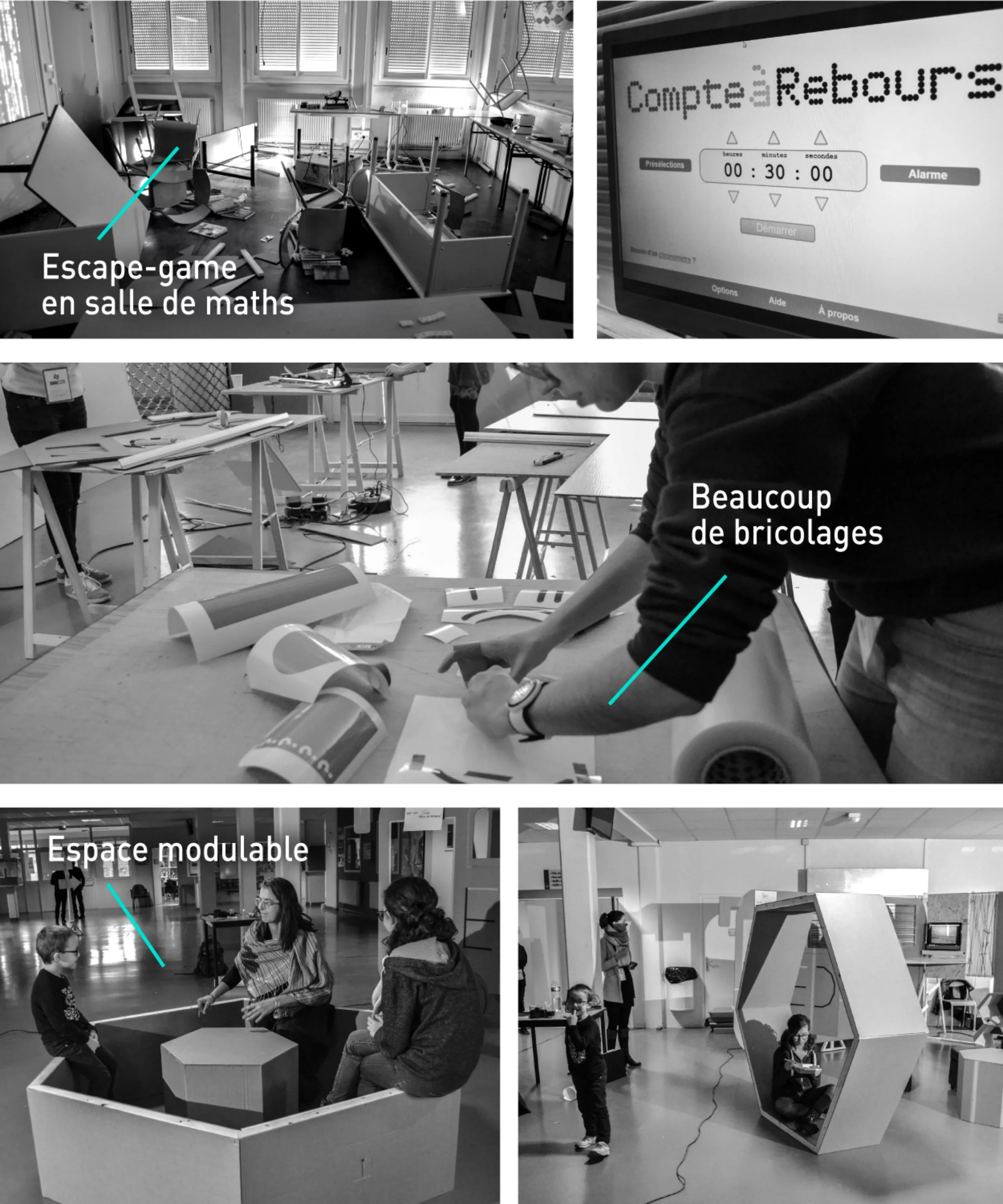 Pendant ce temps-là, 10 autres équipes planchaient sur des sujets divers et variés. Difficile de tous vous les présenter ici, mais notons “un escape game en salle de maths” pour explorer de nouveaux usages pédagogiques des salles de cours, un mobilier modulable, ou encore d’une valise d’exploration…
