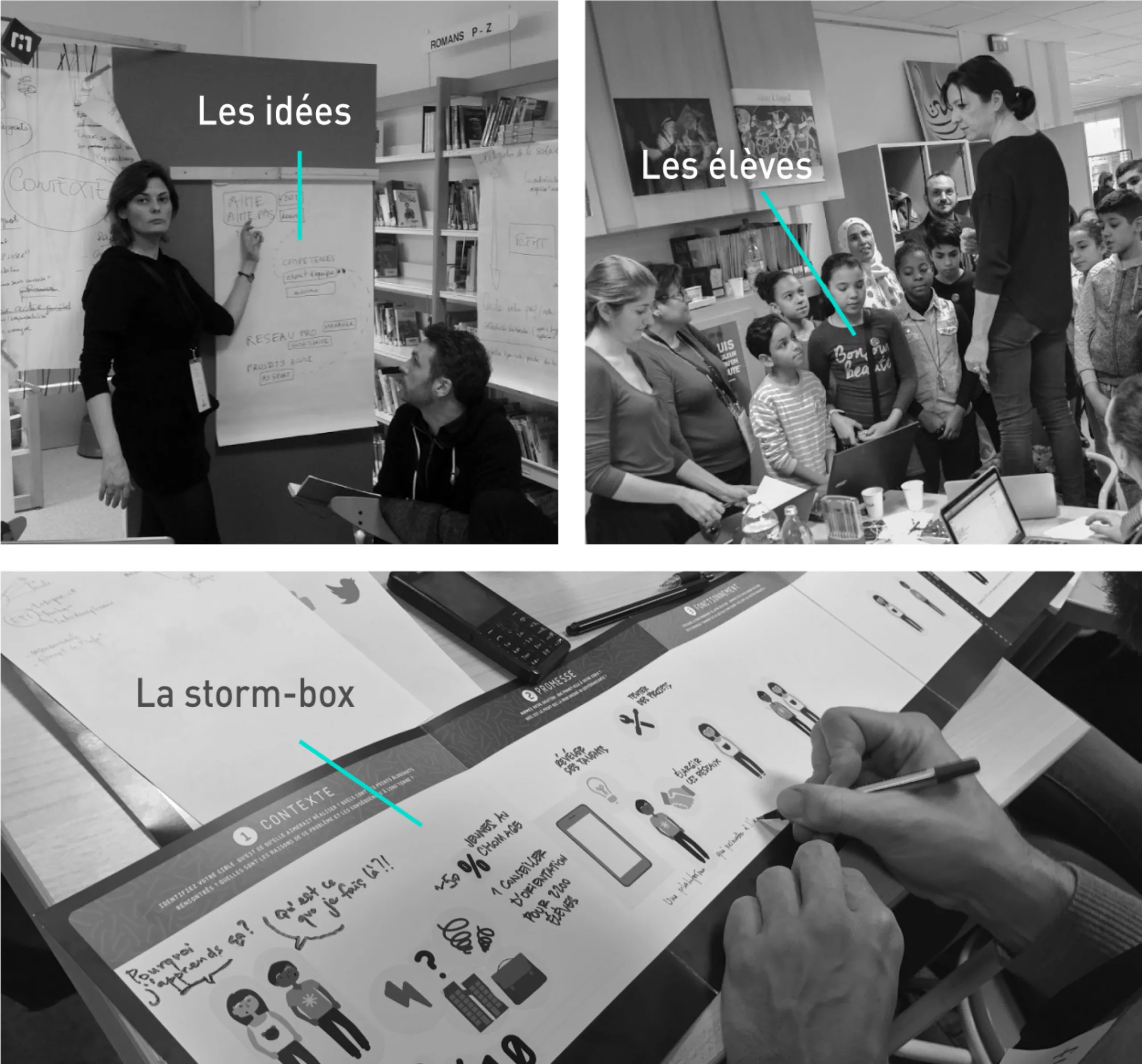 L’outil est super bien fait, il s’accompagne d’une multitude de stickers, et surtout de fiches “remarques” permettant ensuite aux visiteurs de noter leurs commentaires et questions, puis de les glisser dans la boite.