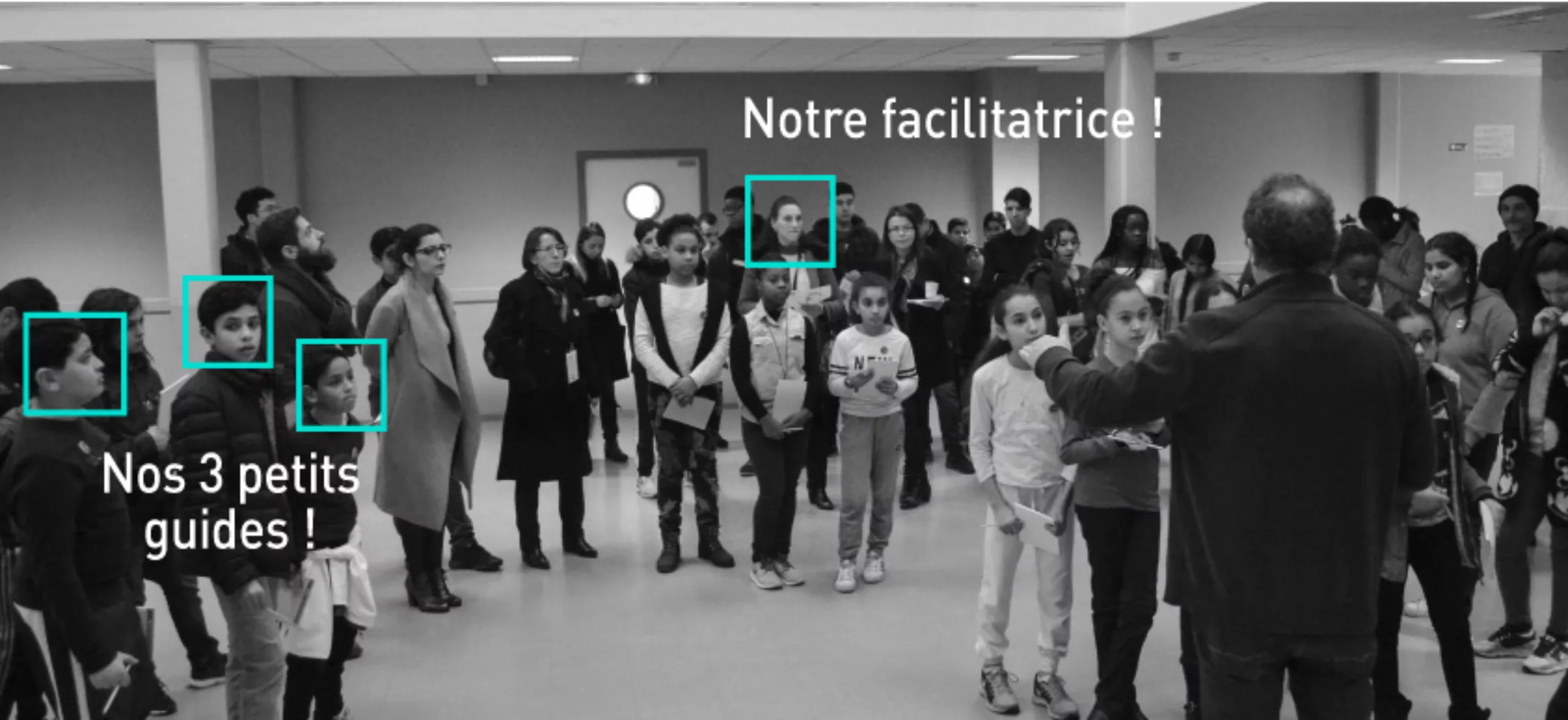 Voyons concrètement comment ça se passe. Vendredi matin, nous sommes accueillis par les collégiens qui nous font la visite de leur établissement. Une dizaine d’espaces sont identifiés et associés aux différents défis. Nous visitons également les espaces ateliers, fab lab, tech-shop, mis à notre disposition. Nos trois petits guides participent aux échanges, nous font part de leurs expériences, de leurs points de vue sur la vie scolaire, leur quartier, leur quotidien et leurs attentes. Passé les premières minutes intimidantes, nous avons 3 petits débrouillards malins, pertinents et pleins d’humour !