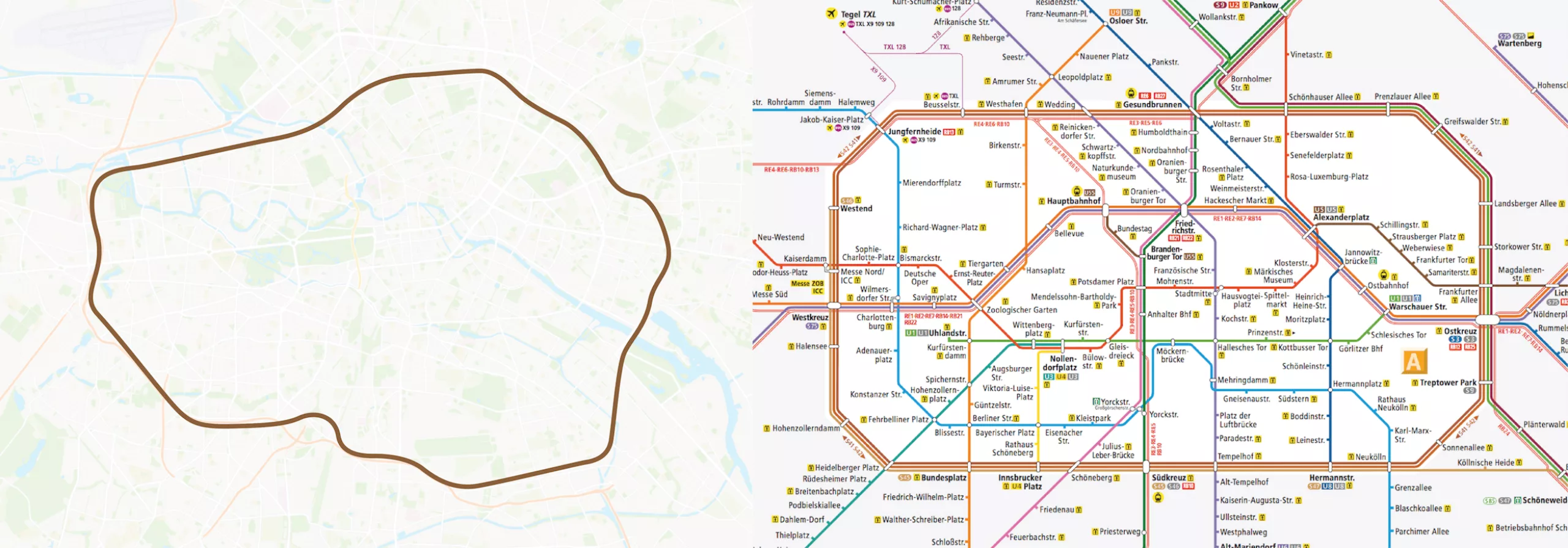 En se basant sur la géographie de plusieurs villes dans le monde, il remarque que les plans suivent généralement une forme simplifiée de la forme de la ville. Bouteille pour Londres, rectangle aux coins arrondis pour Berlin, et rond pour Paris.