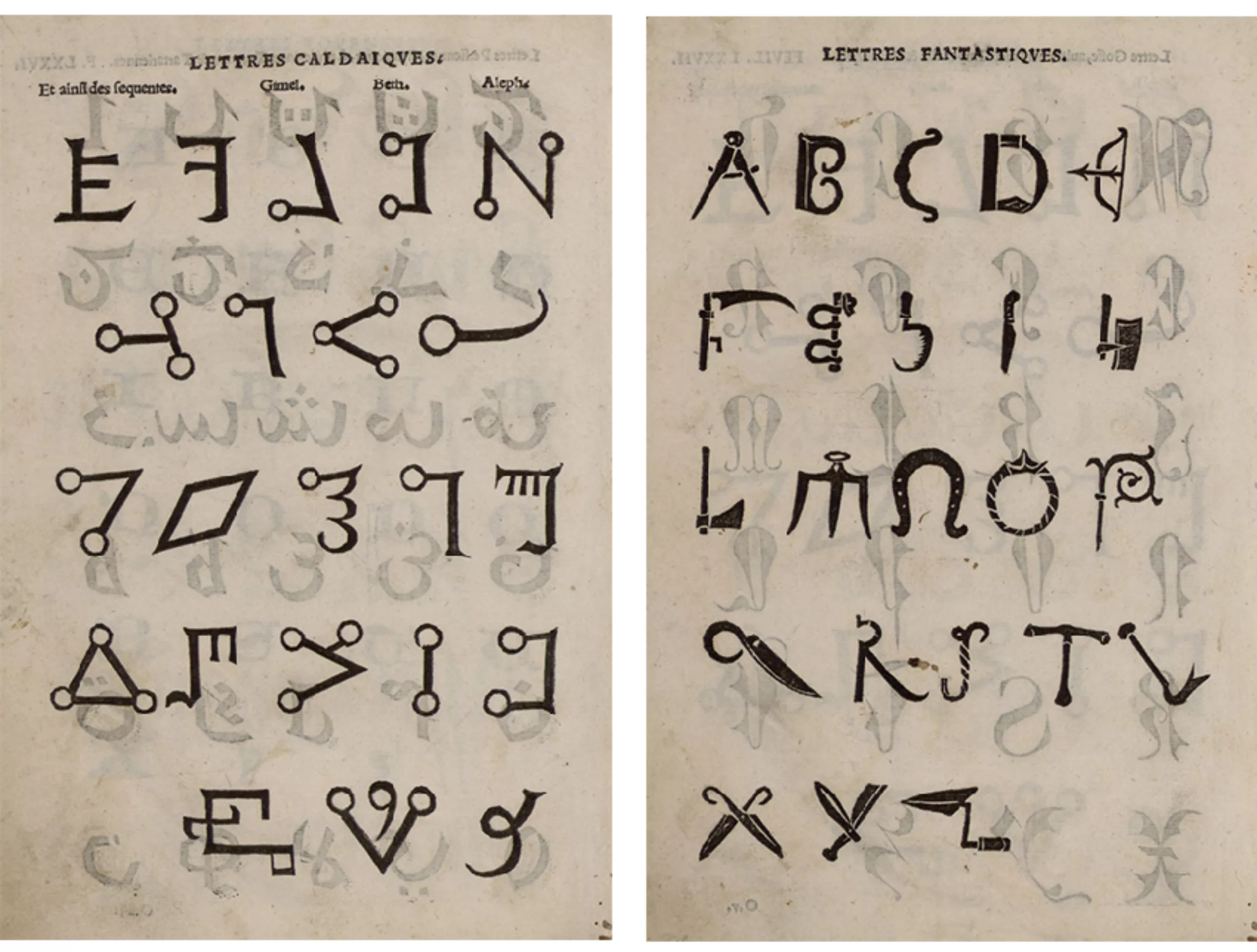 Inspiré de ses contemporains Dürer ou Léonard de Vinci à qui l’on doit de nombreuses recherches sur le corps humain, il développe des alphabets idéaux inspirés des proportions de la Nature, qu’il réunit dans son étude Champ Fleury (pages illustrées ci-dessous). Chaque lettre s’inscrit dans des proportions harmonieuses tirées du corps humain ou du vivant, comme les lettres O et A, qui rappellent bien sûr l’homme Vitruvien de De Vinci.