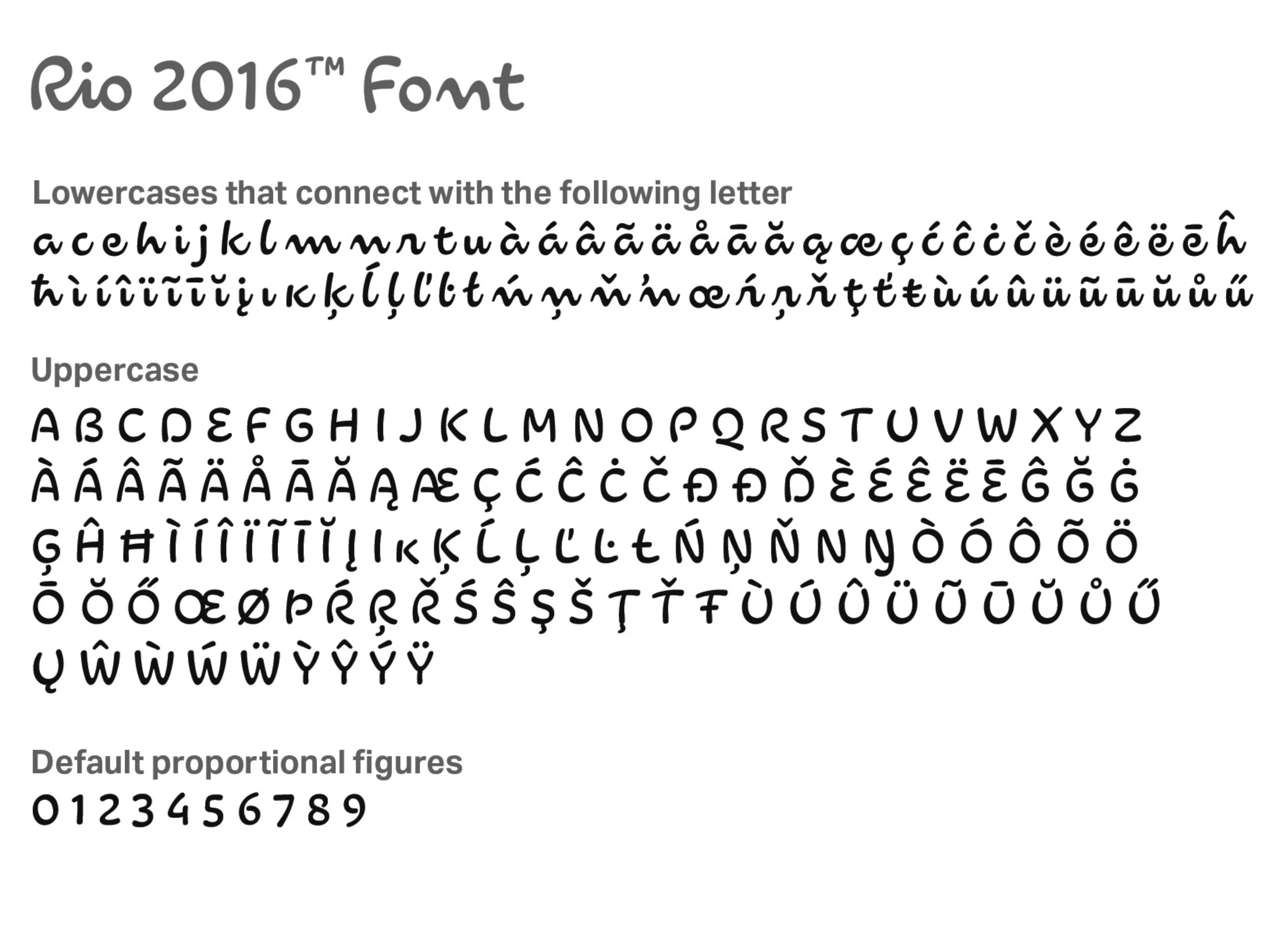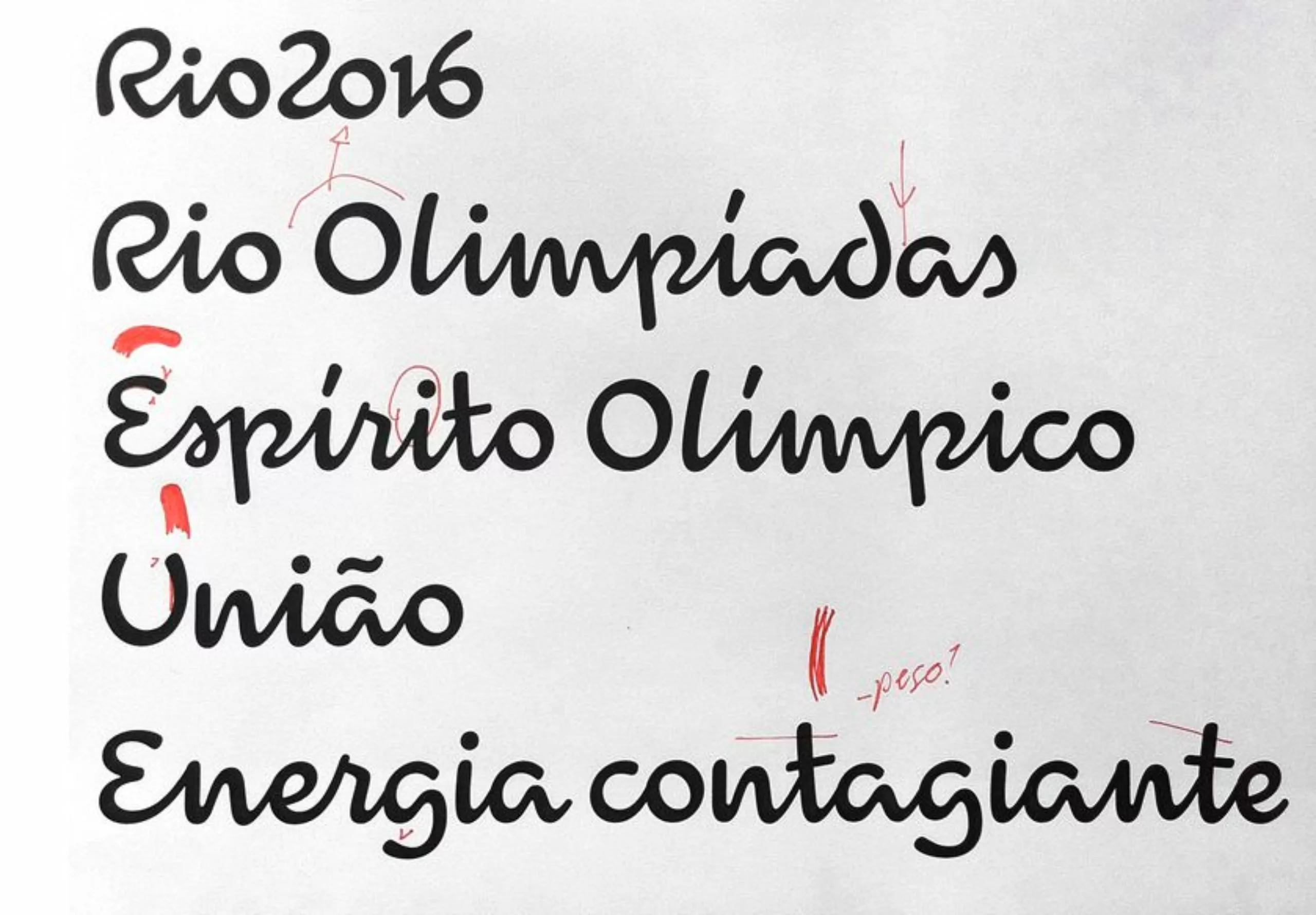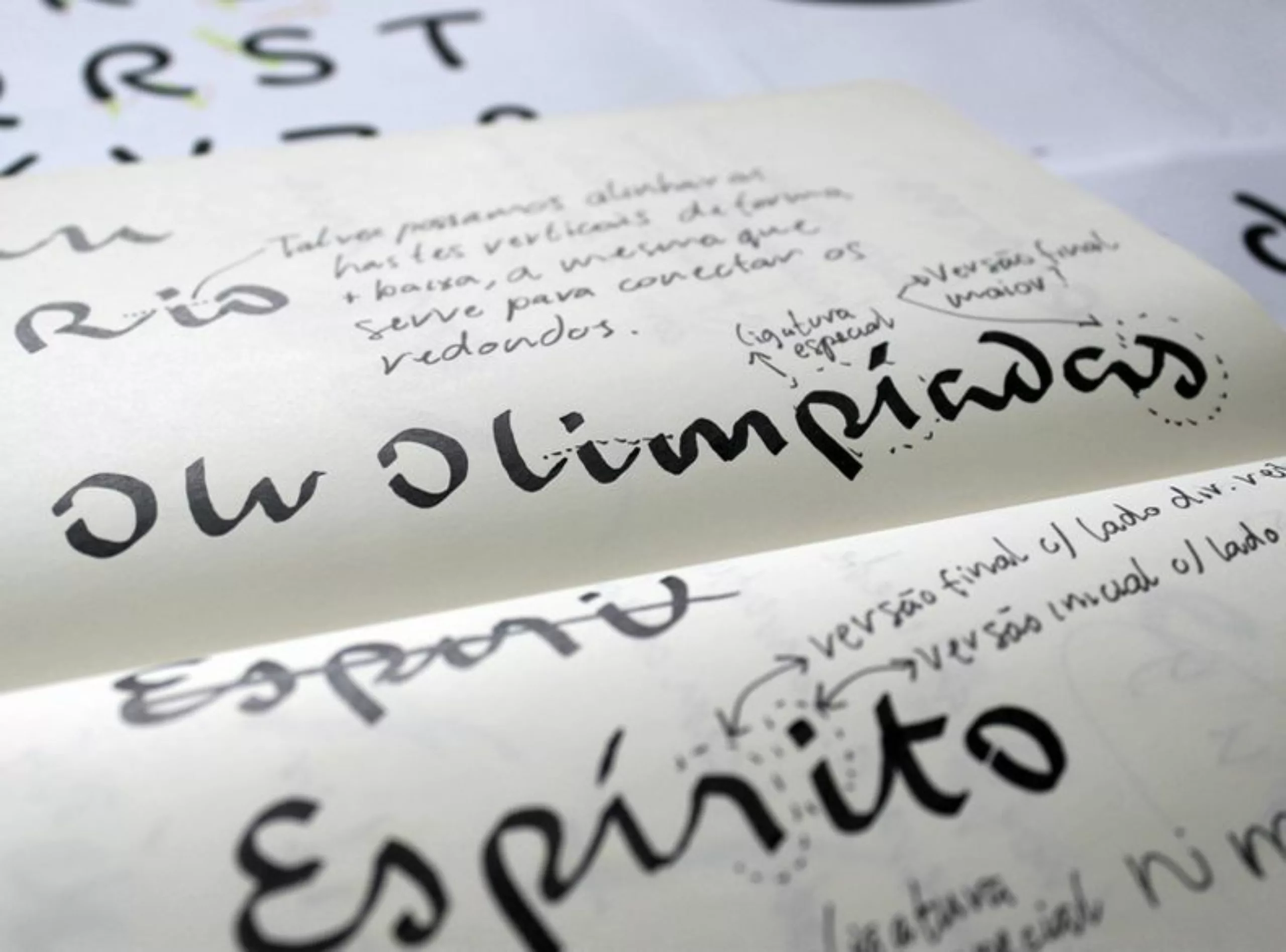 Initialement le projet avait été présenté avec une typographie relativement classique. Chose surprenante, c’est le jury du CIO qui les a invités à revoir leur copie au sujet de la typographie. L’enjeu était donc de trouver un caractère capable de prolonger l’esprit du logo en seulement trois lettres !