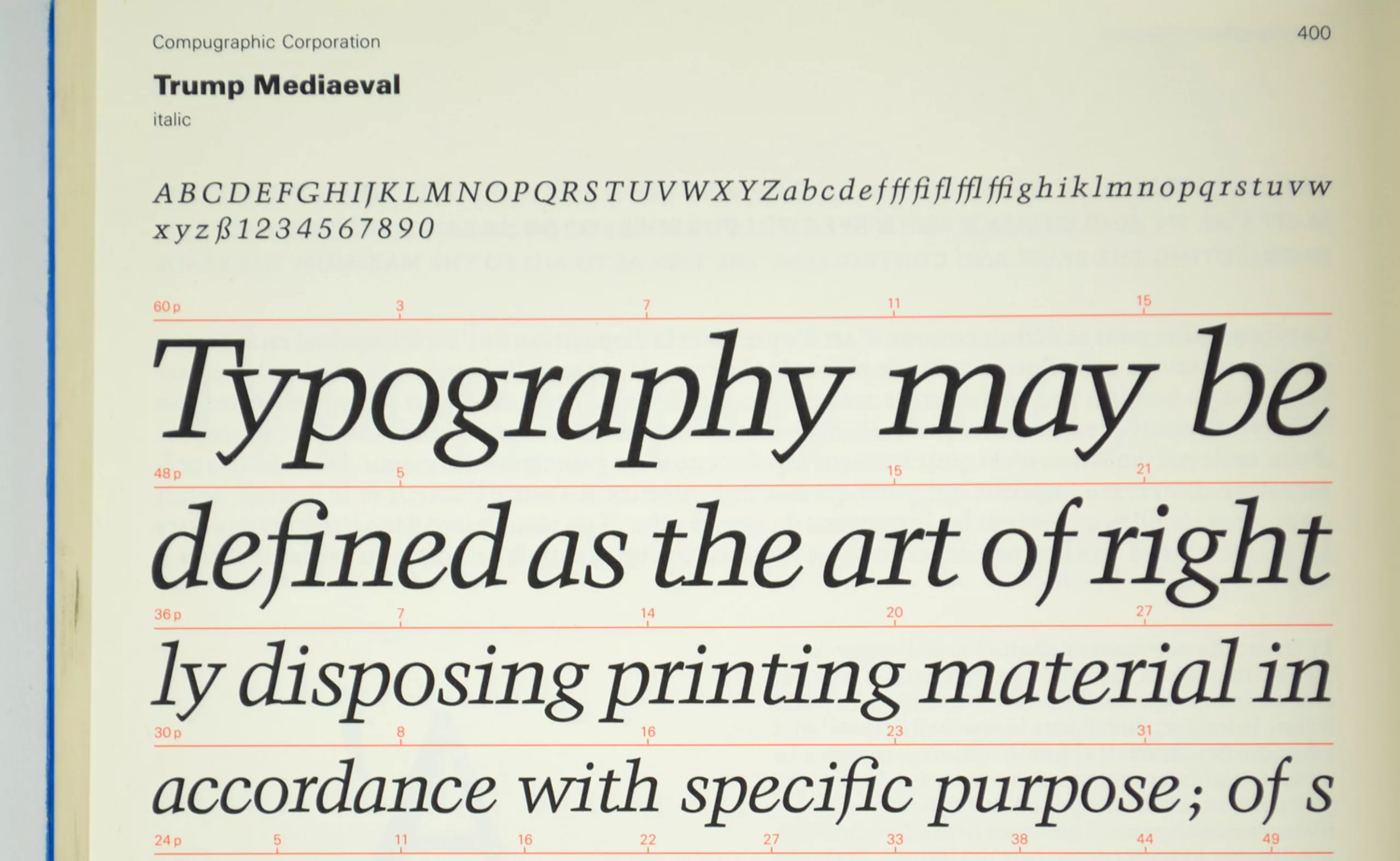 Dès 1947, Trump dessine les prémices de la typo Mediaeval, qu’il souhaite affirmer comme une New Roman au style médiéval, “contemporaine et respectable”. Il souhaite en faire une typographie de livre, à la manière d’une Walbaum, Garamond ou Janson. À l’époque, ce design est ultra-moderne, puisqu’il est bien en avance sur ce qui deviendra ensuite une mode. C’est donc plus tard en 1951 que les New Roman ont désormais le vent en poupe. La fonderie Weber cartonne avec la typo Drupa, une autre Roman imaginée plus tôt par Trump et que celui-ci fera évoluer plus tard en Mediaeval.