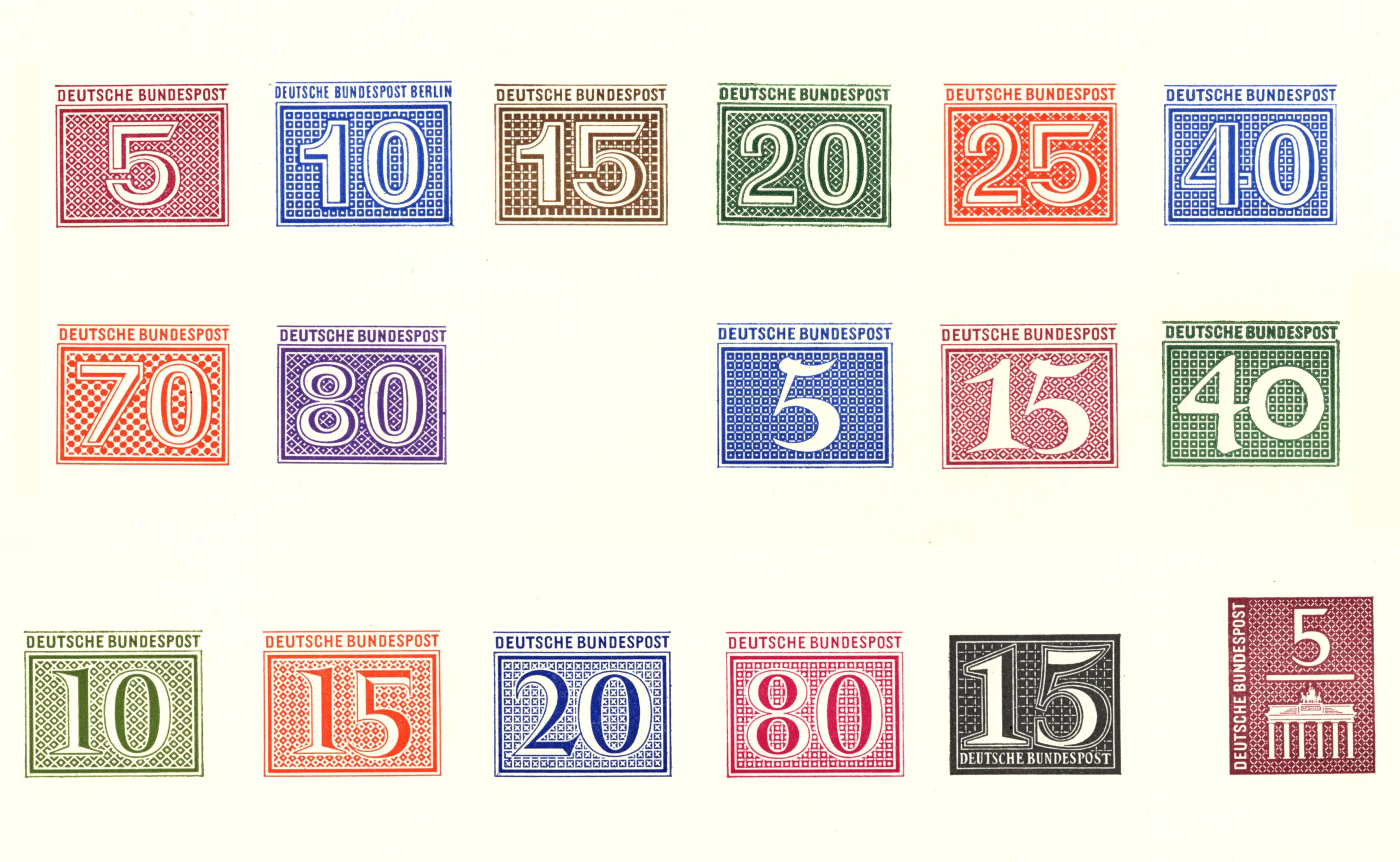 Il existe peu d’exemples de son travail de graphiste. Ci-dessous, on peut constater la modernité des timbres allemands qu’il avait conçu dans les années 50.