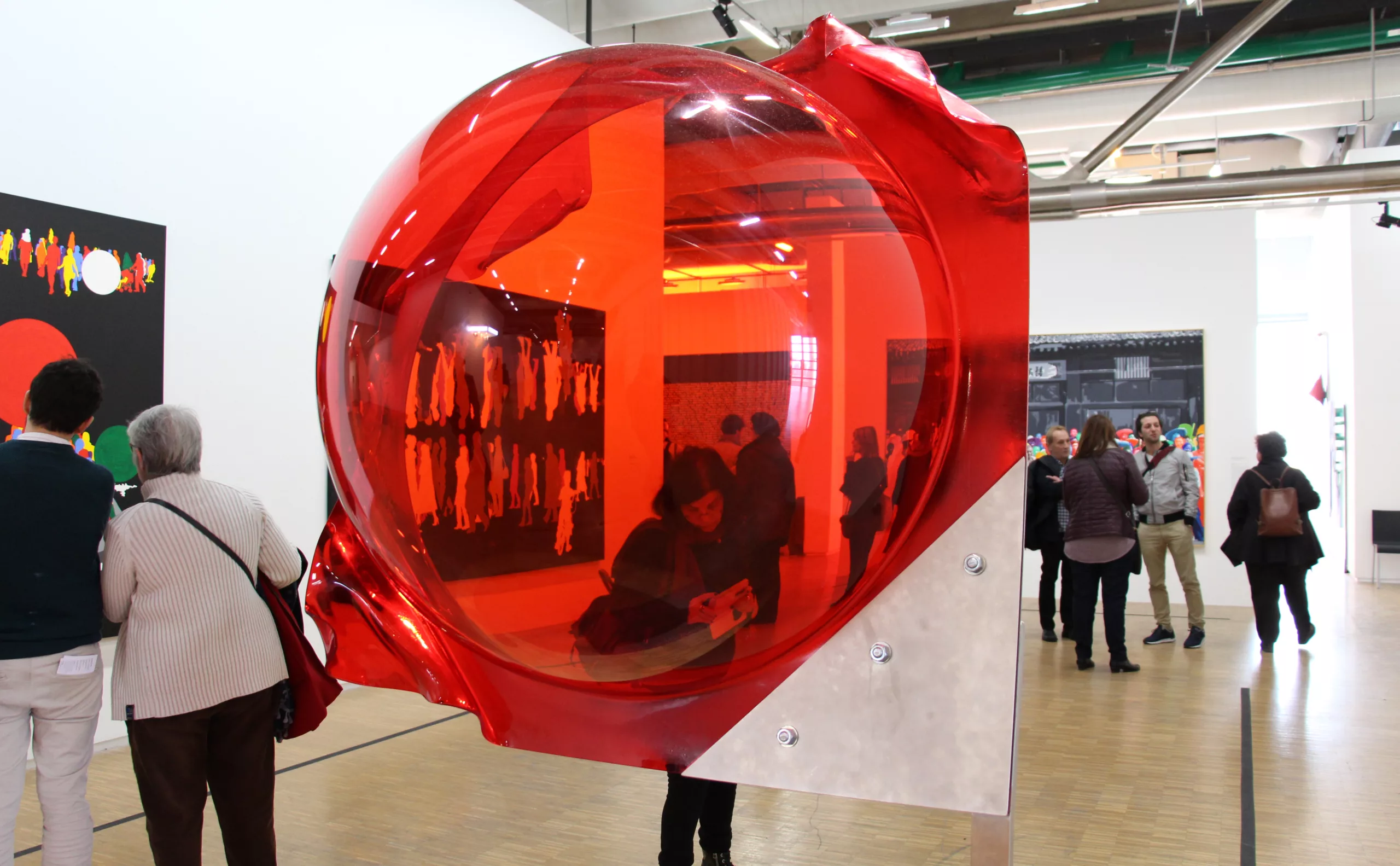 Une demi-sphère rouge permettait de regarder son travail avec un filtre espiègle, comme pour faire disparaitre d’un coup de baguette magique ses fameuses silhouettes rouges.