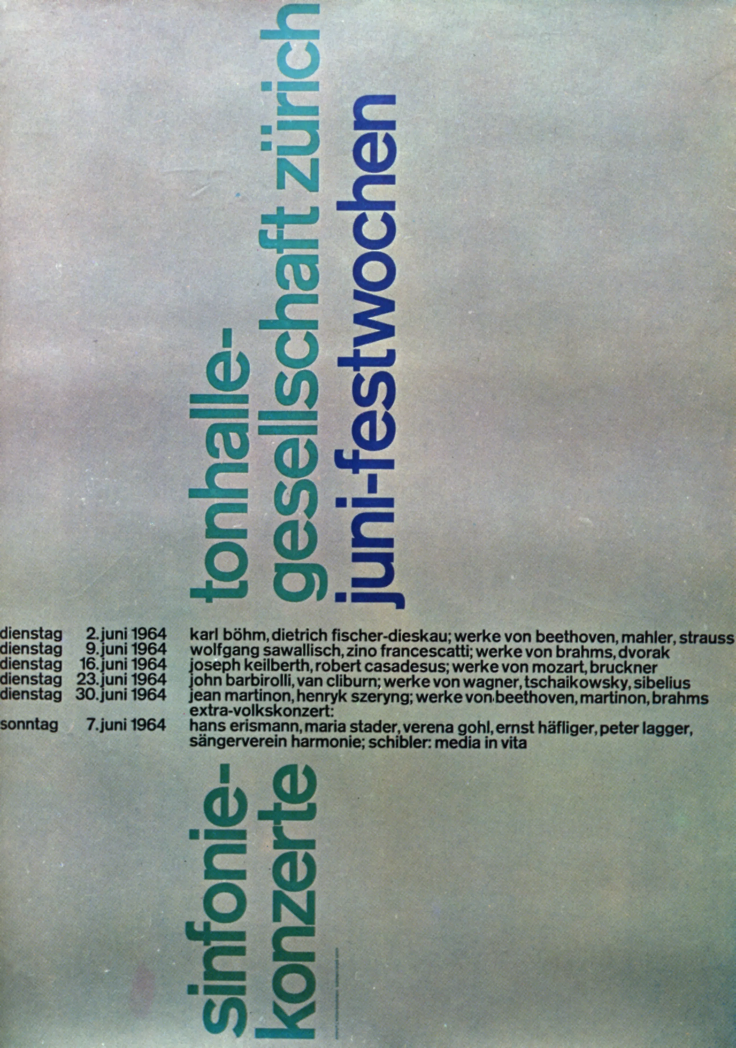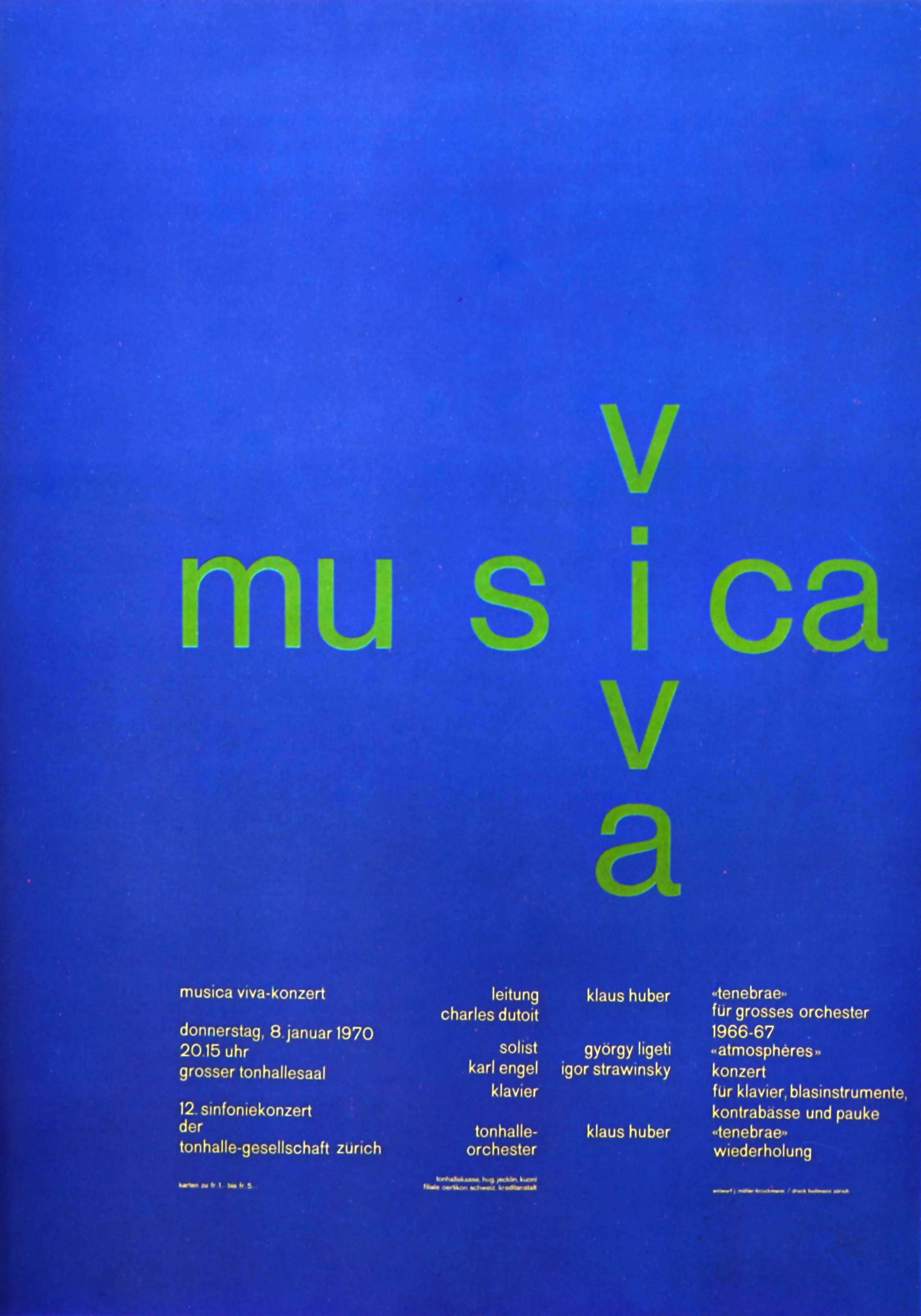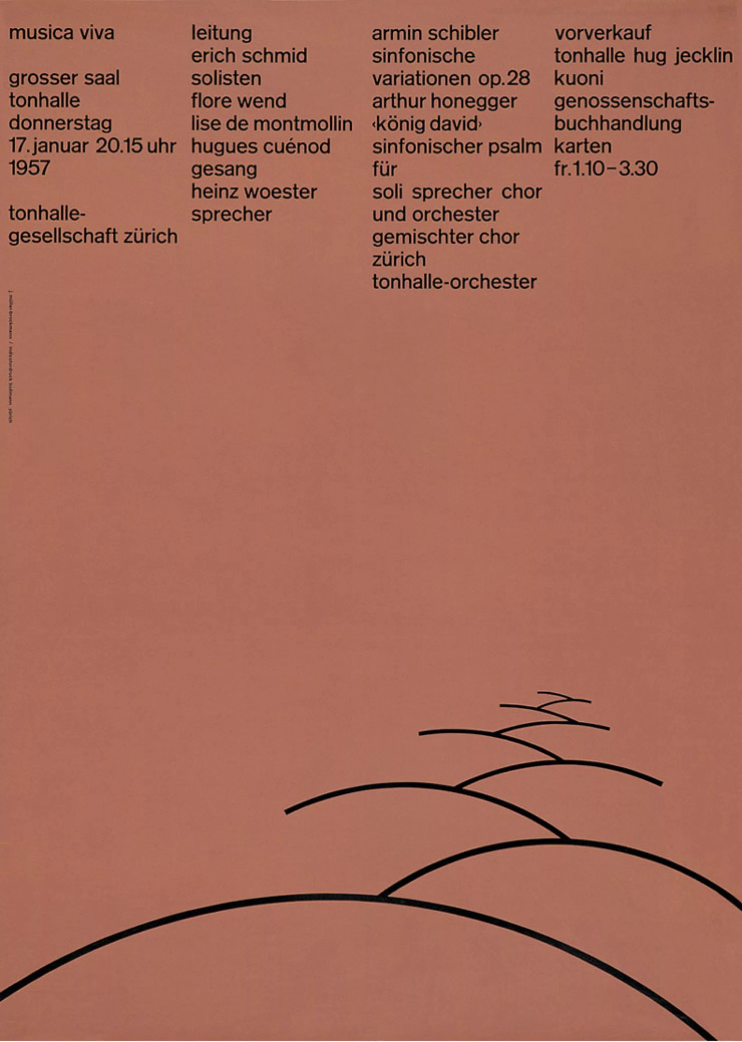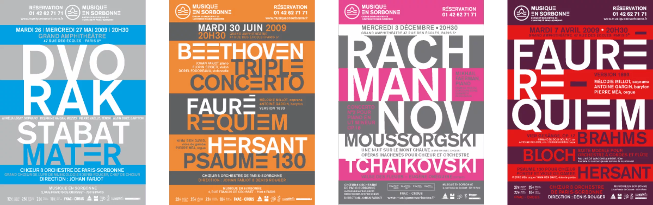 Nous-mêmes chez Graphéine, nous ne pouvons nier son influence. Les affiches que nous avons réalisées pour le Chœur et Orchestre de l’Université Paris-Sorbonne en sont un bon exemple ! D’ailleurs elles sont composées en Akzidenz Grotesk, la typographie de prédilection de Brockmann !