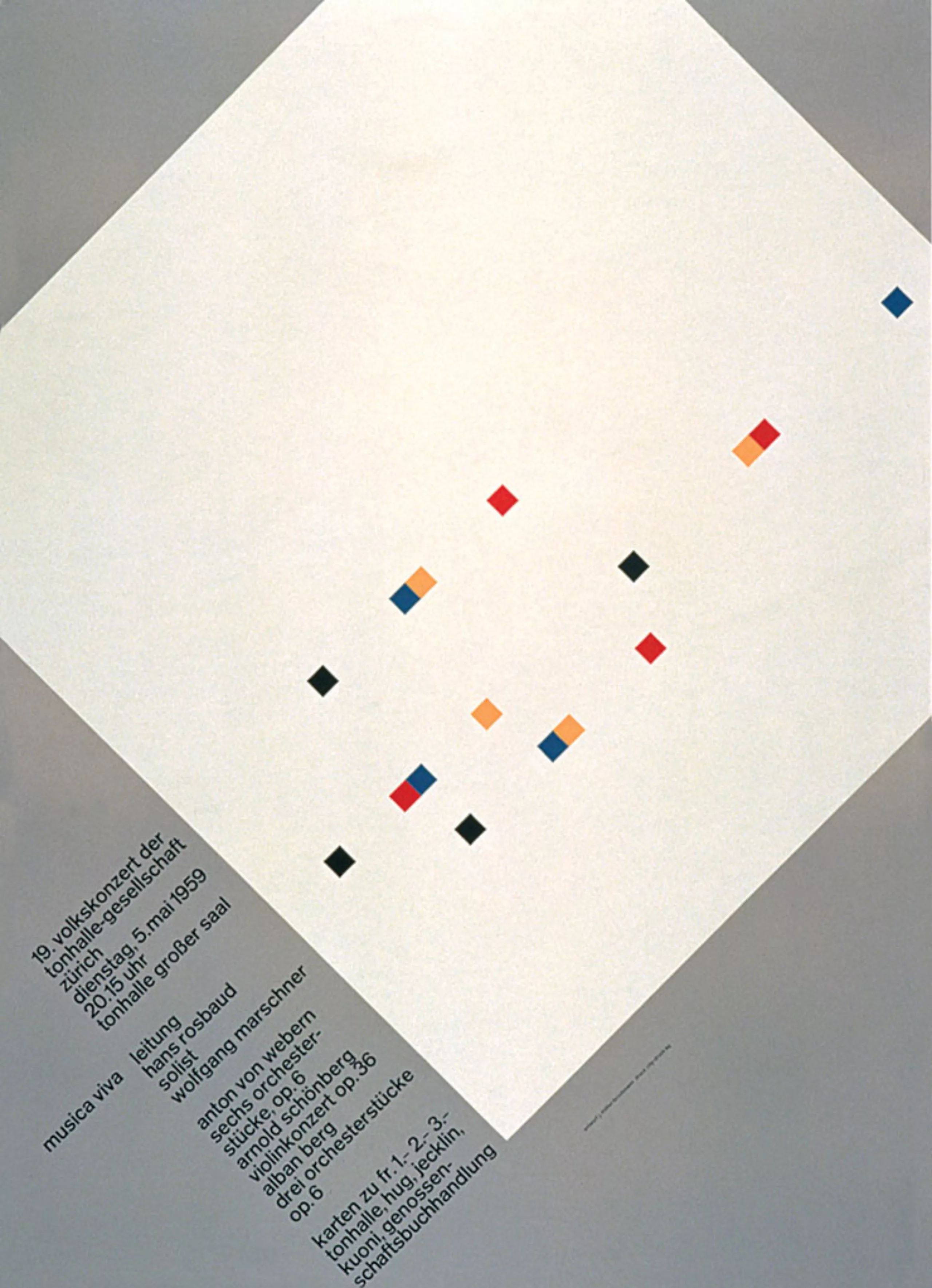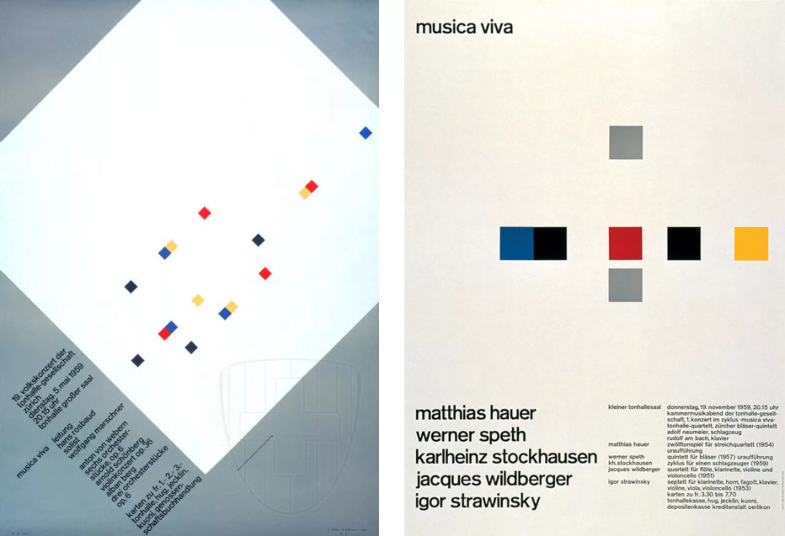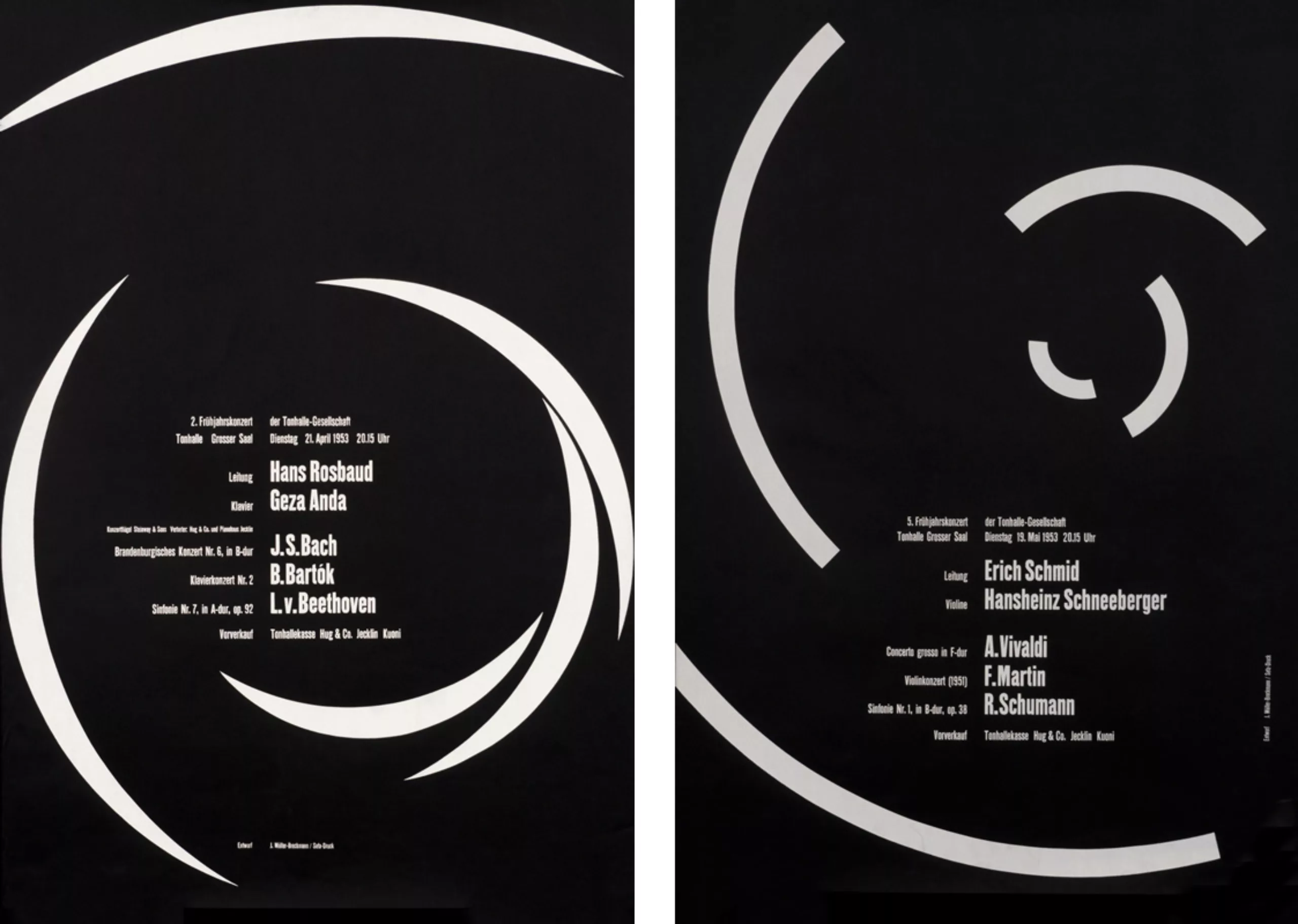 Après 1945, Müller-Brockmann concentre son travail sur l’illustration et le design d’expositions. En 1950, il conçoit sa première affiche pour la Tonhalle de Zurich. C’est à cette époque qu’il développe son approche constructiviste du graphisme. Petit à petit le graphisme occupe tout son temps. Son affiche “protégez l’enfant” pour l’Automobile club de Suisse et ses nombreuses affiches pour la Tonhalle de Zurich lui apporte une grande notoriété.