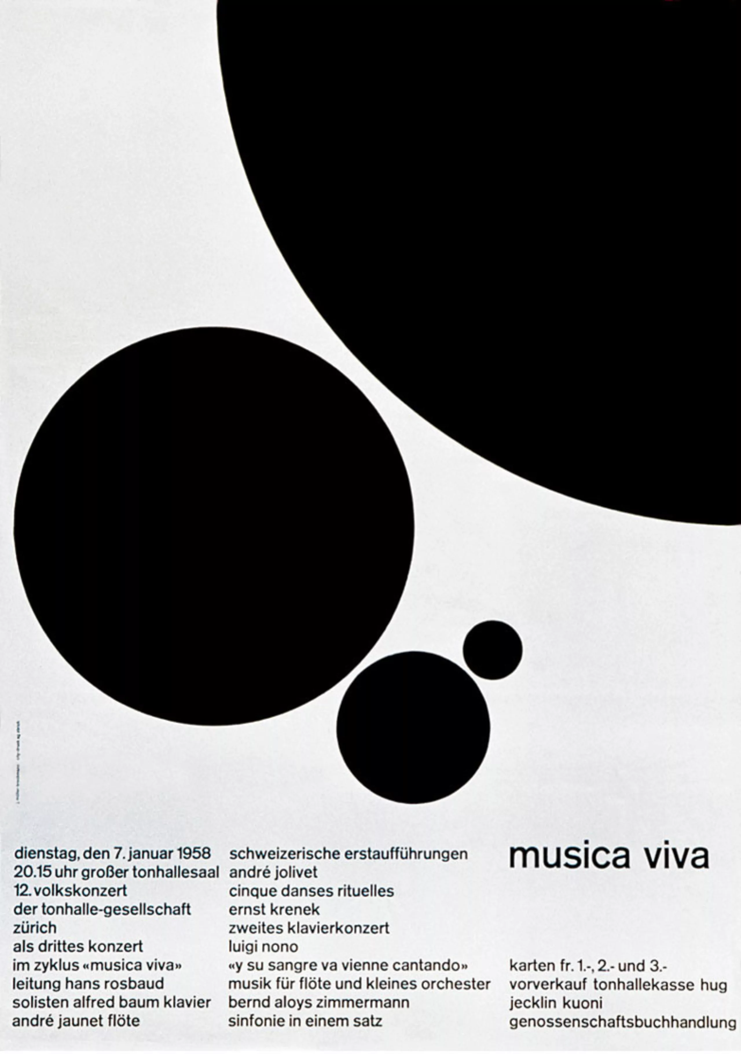 On ne connait pas beaucoup de choses sur Müller-Brockmann. L’éditeur Lars Müller a publié la seule monographie complète peu de temps avant sa mort. Ce livre est introduit par Paul Rand “himself” (la classe !). Lars Müller tente d’expliquer ce qui a provoqué le brusque changement dans la carrière Brockmann, quand il est passé de l’illustration au graphisme “constructiviste”.