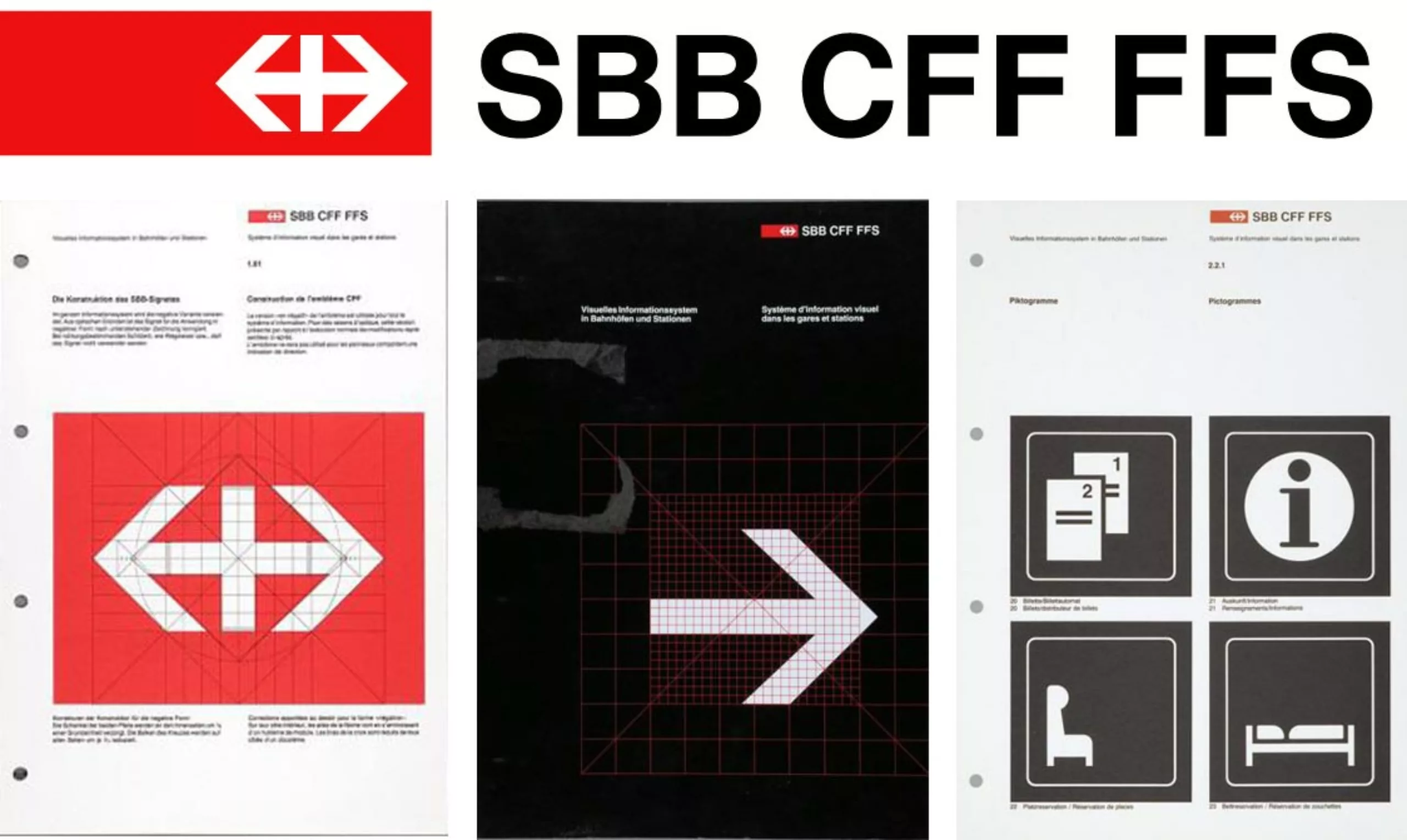 Brockman a travaillé sur de nombreuses identités visuelles. Celle des chemins de fer suisses nous semble exemplaire. Ce logo a fêté en 2012 ses trente ans ! Il symbolise tout simplement la croix suisse et le transport d’un point A à un point B. Il a également dessiné la typographie qui est utilisée pour la signalétique des gares.