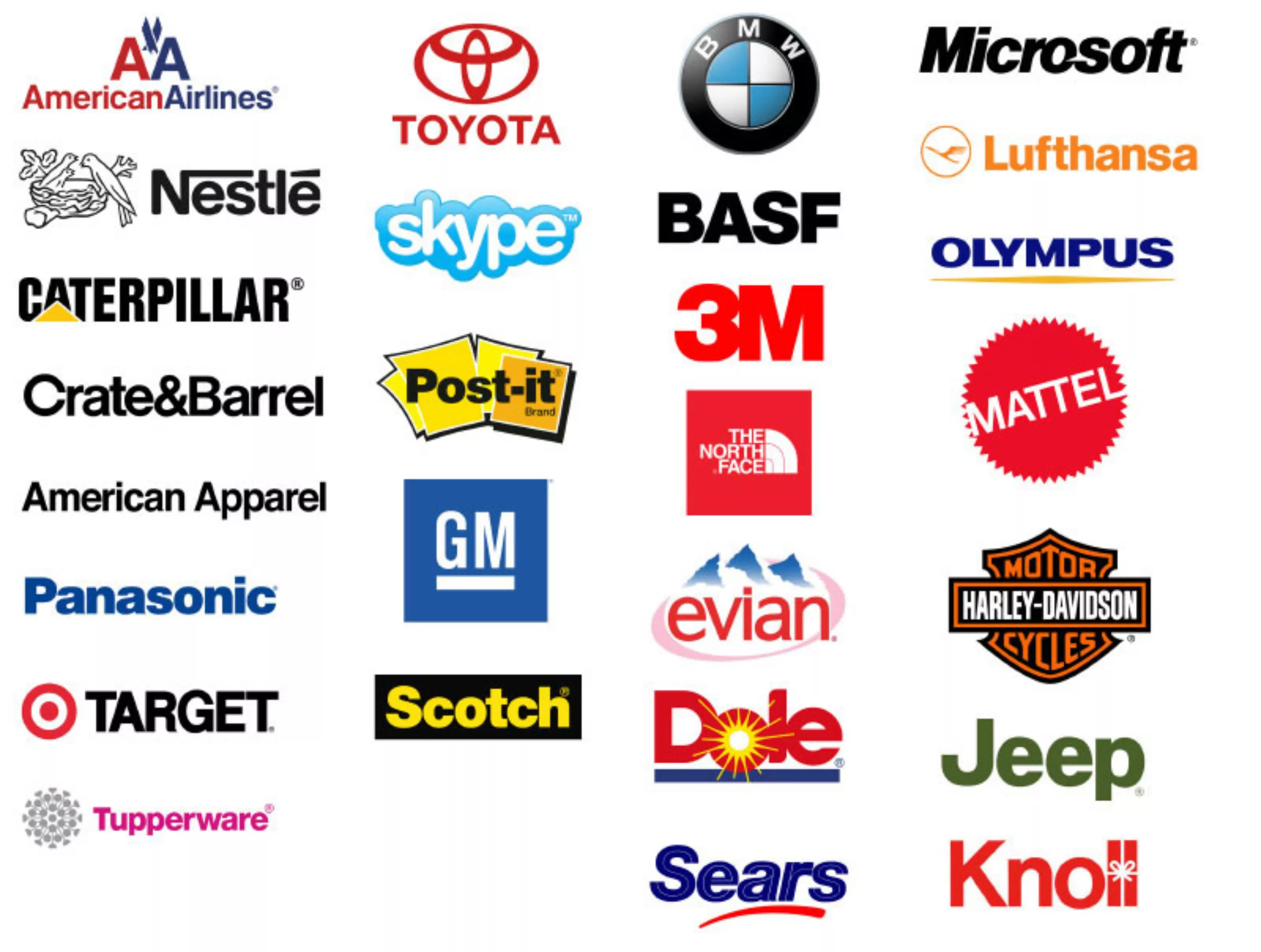 Le succès mondial de l’Helvetica est resté inchangé à ce jour. Elle est de loin la police la mieux commercialisée et est disponible aujourd’hui en 110 versions différentes. Évidemment, on la retrouve sur des milliers de logos à travers le monde… en voici quelques exemples parmi les plus connus :