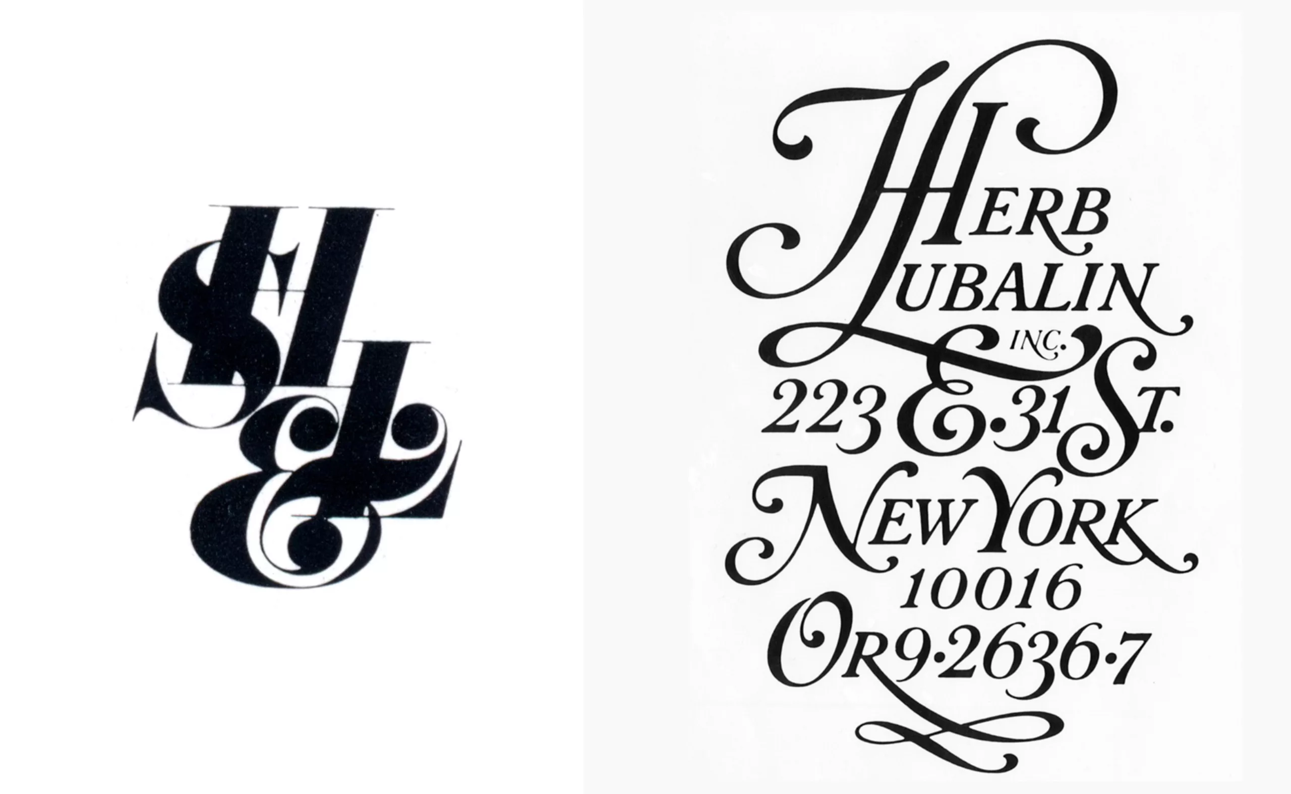 Au fil de sa carrière et des venues et départs de ses associés, il recomposera le logo de son studio de création graphique. Ci-dessous en couleur et à gauche, SH&L (Sudler, Henessey & Lubalin), utilisé de 1955 à 1964, et à droite entre 1964-1967.