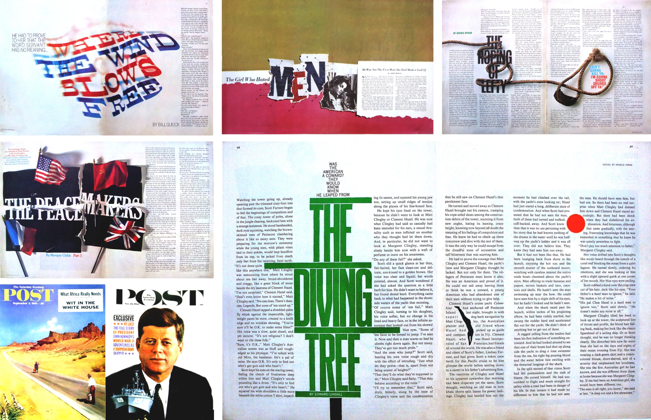 Lorsqu’on lui donne la maquette du Saturday Evening Post en 1961, Lubalin grossit le mot POST en inscrivant The Saturday Evening à l’intérieur du O. Il remplace également les illustrations par des photographies, ce qui n’est pas sans déplaire aux lecteurs, et annonce son style graphique osé et affirmé. La revue, au style plus moderne et au titre plus visible, reprend néanmoins son ancien logo un an plus tard…