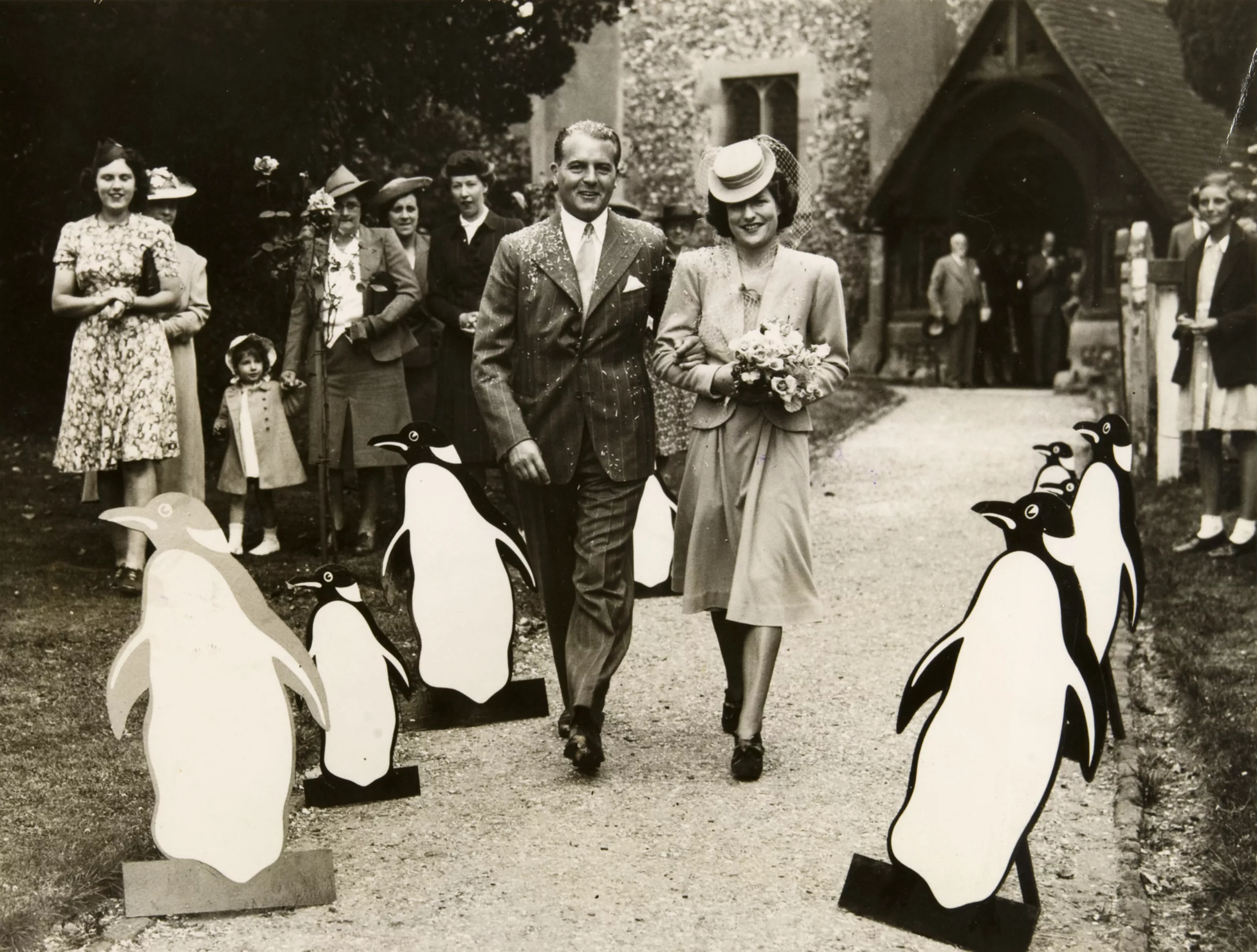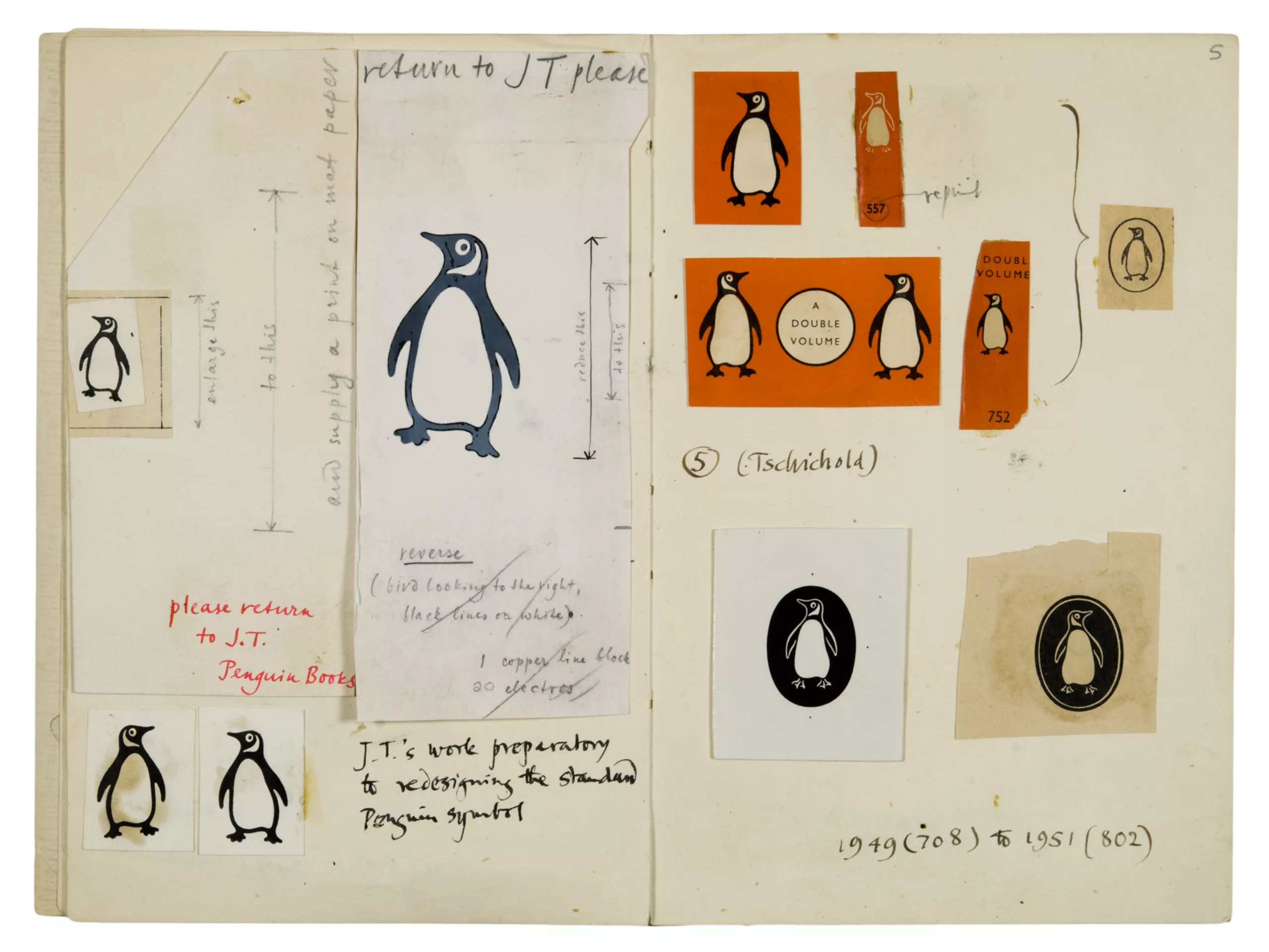 Mais Allen poursuit son idée. Il fait designer le logo par Edward Young – éditeur junior au Bodley Head -, qui part au zoo observer les pingouins. Ce dernier revient avec une belle série de croquis et une remarque : “bon dieu qu’est ce qu’ils puent ces oiseaux !”.