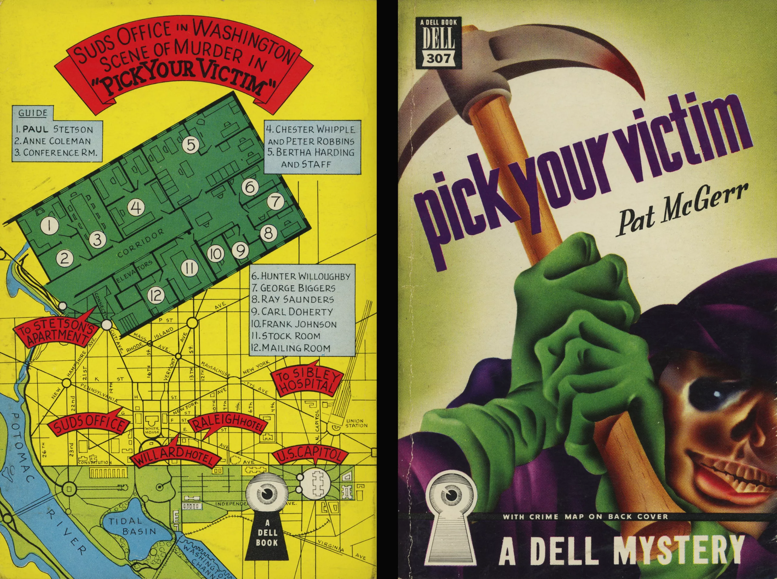 En 1942 aux État-Unis Dell Publishing lance sa collection papier petit format pour faire de la concurrence aux Pocket Books créés 3 ans plus tôt. Pour sortir du lot, Dell invente un système de carte en 4e de couverture qui reprend les lieux et personnages du livre. Ces cartes deviennent vite populaires et se font appeler “mapback” (carte de dos).